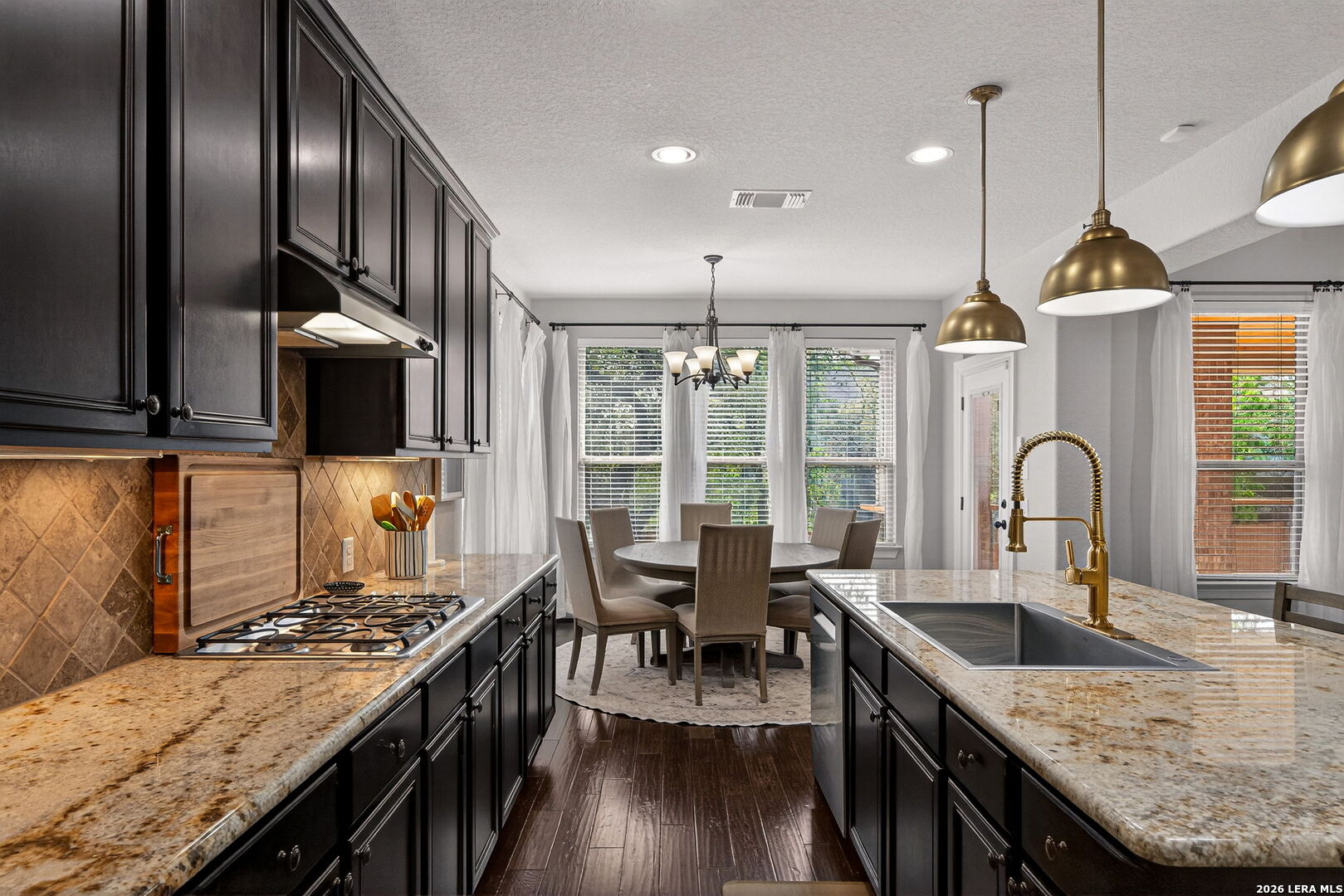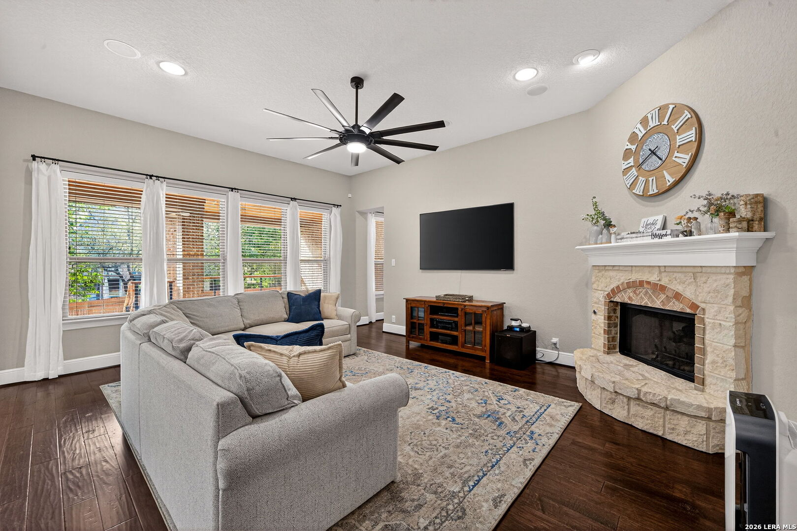 Beautifully maintained Highland Home located in the highly sought-after River Rock Ranch neighborhood, featuring mature oak trees in the front yard and offering 5 bedrooms, 4 bathrooms, a private office, game room, and media room. An inviting front porch sets the tone and leads into a spacious, light-filled interior designed for both everyday living and entertaining. The kitchen island features granite countertops, gas cooking, stainless steel appliances, and abundant cabinetry, seamlessly opening to the main living area with a cozy gas fireplace. Private owner's suite includes a garden tub, separate vanities, walk-in shower, and large closet with direct access to the laundry room. A secondary bedroom with a full bath is located downstairs, ideal for guests or multi-generational living. Upstairs offers even more space with an additional living area, oversized game room, and dedicated media room, perfect for movie nights, entertaining, or relaxing. Generously sized secondary bedrooms feature ample closet space. Enjoy outdoor living on the covered patio and deck, perfect for relaxing or hosting. Additional highlights include a dedicated office, 3-car garage, and major system upgrades including new A/C units (2024) and water softener (2025). Located within River Rock Ranch, this home offers the perfect balance of privacy and convenience just outside the city yet close to La Cantera, The Rim, and the Dominion. Residents enjoy premier community amenities including a resort-style pool, clubhouse, playground, and controlled access, making this one of the area's most desirable places to live.