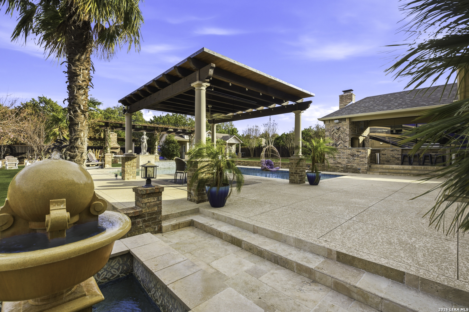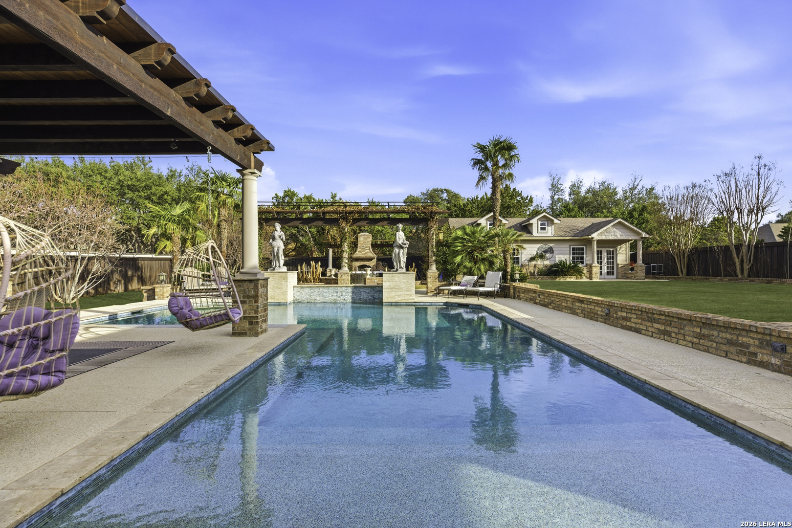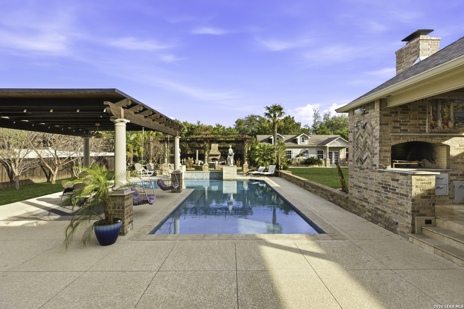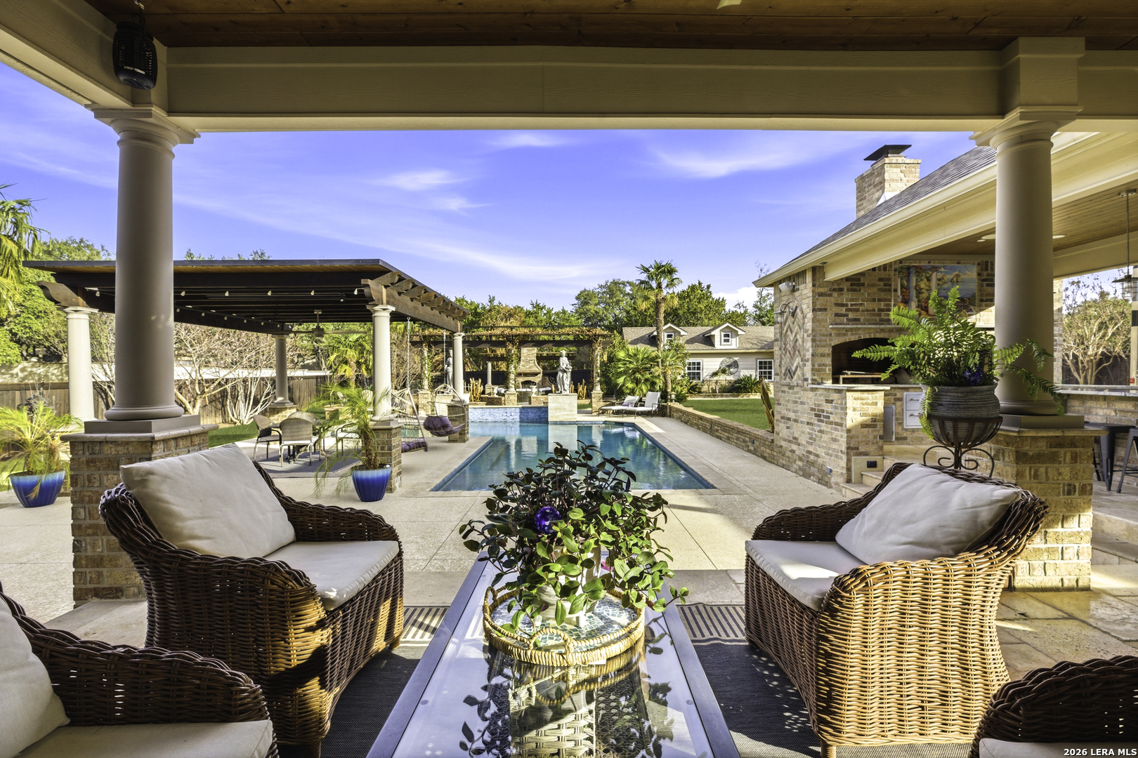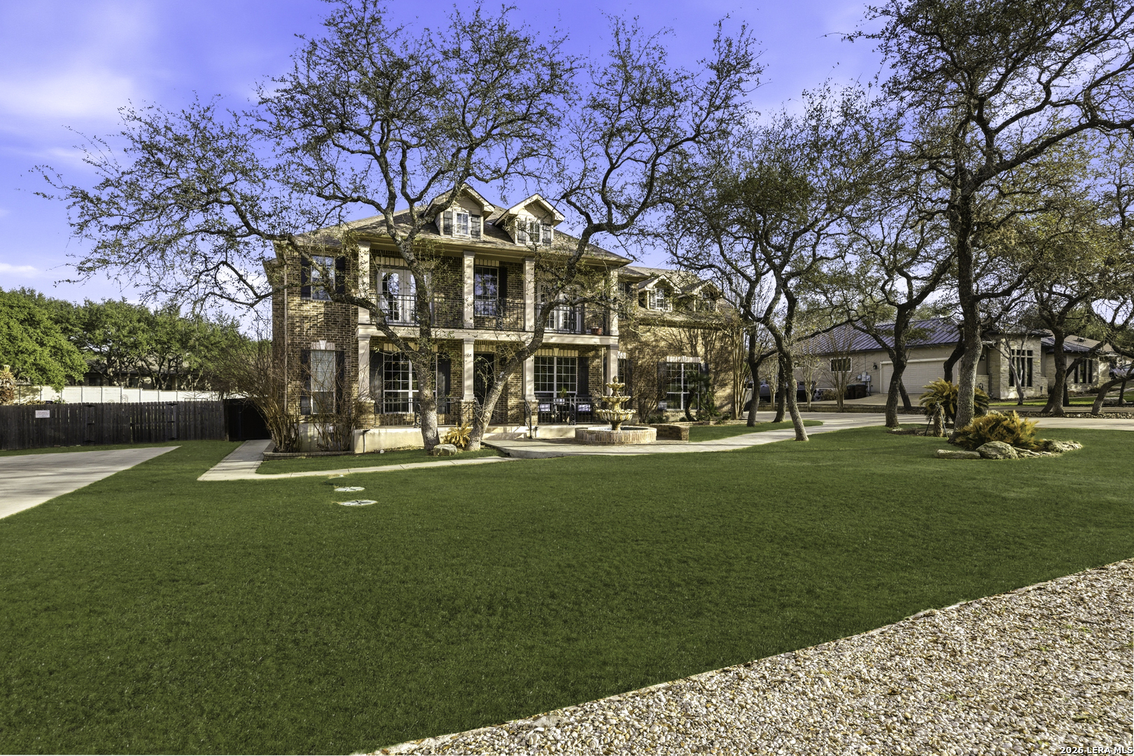 Welcome to an extraordinary private estate in the highly sought-after community of Timberwood Park, where luxury living meets unmatched versatility on a sprawling half-acre lot. Designed for multigenerational living, entertaining, and everyday comfort, this exceptional property offers a rare combination of elegance, functionality, and resort-style amenities. The beautifully remodeled main residence showcases sophisticated finishes, expansive living spaces, designer lighting, porcelain flooring, and a stunning chef's kitchen featuring premium Viking appliances, a pot filler, and generous prep space ideal for entertaining. Thoughtfully designed upgrades between 2020 and 2022 elevate every corner of the home, blending modern style with timeless comfort. This remarkable compound includes a private upstairs apartment with its own entrance, full kitchen, living and dining areas, and balcony - perfect for guests, extended family, or potential income opportunities. Two detached office suites with a full bathroom provide an ideal work-from-home environment or the flexibility to convert into a guest casita or creative studio. Step outside into your personal resort oasis featuring an expansive swimming pool, outdoor shower, full outdoor kitchen with Argentine-style barbecue, pizza oven, gas grill, griddle, refrigerator, and island seating, plus a fireplace lounge and covered pavilion designed for unforgettable gatherings. The lush grounds include mature palm trees, fruit trees, a vegetable garden, and ample space for recreation. Additional highlights include a whole-house Generac generator, RV parking with full hookups, a three-car garage, a gym with sauna conversion, and extensive energy-efficient upgrades throughout. Residents of Timberwood Park enjoy exceptional neighborhood amenities, including multiple sports courts, swimming pools, a clubhouse, fitness center, a six-hole putting green, scenic park spaces, and vibrant community events year-round - all while being conveniently located near top-rated schools with easy access to Highway 281 and Loop 1604. This is more than a home; it is a private retreat designed for luxurious everyday living, unforgettable entertaining, and limitless possibilities.