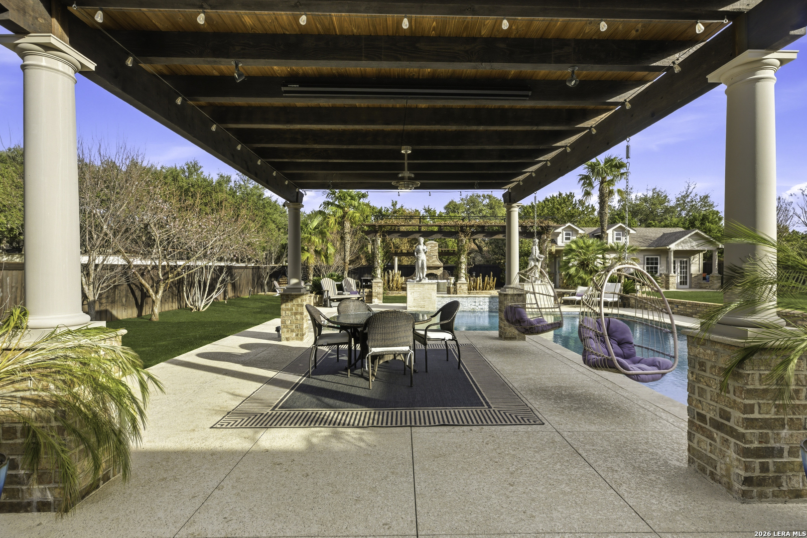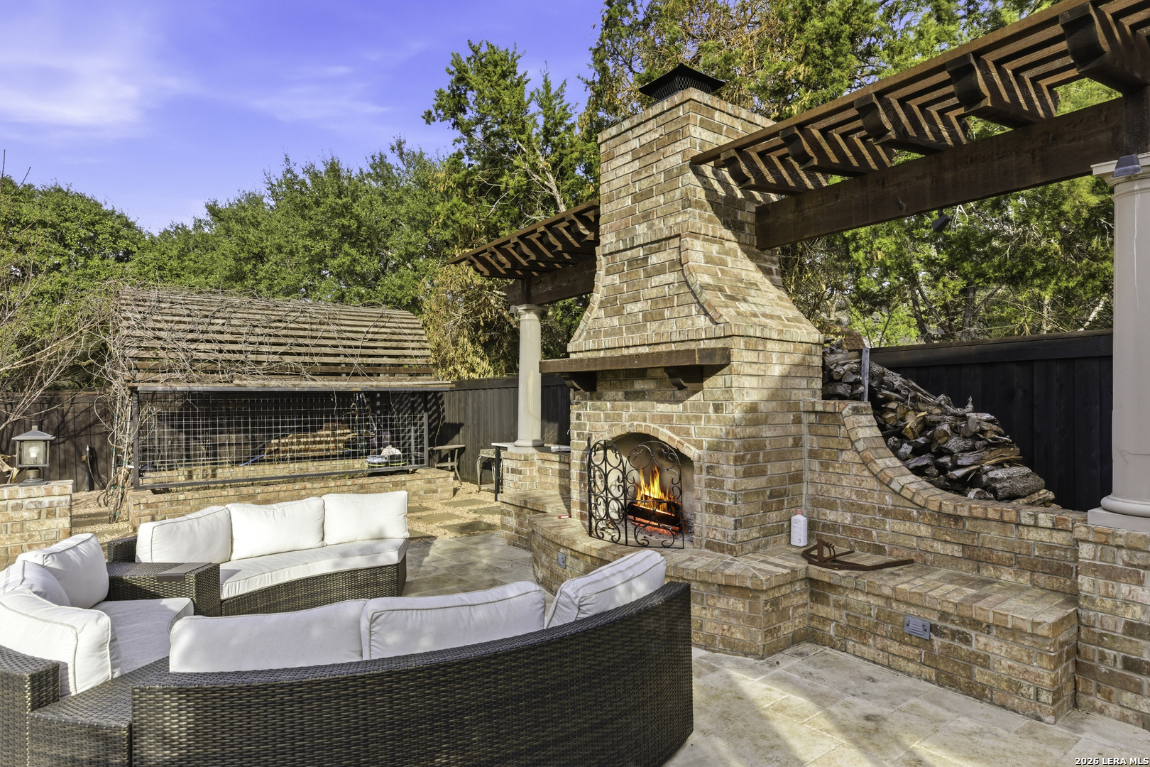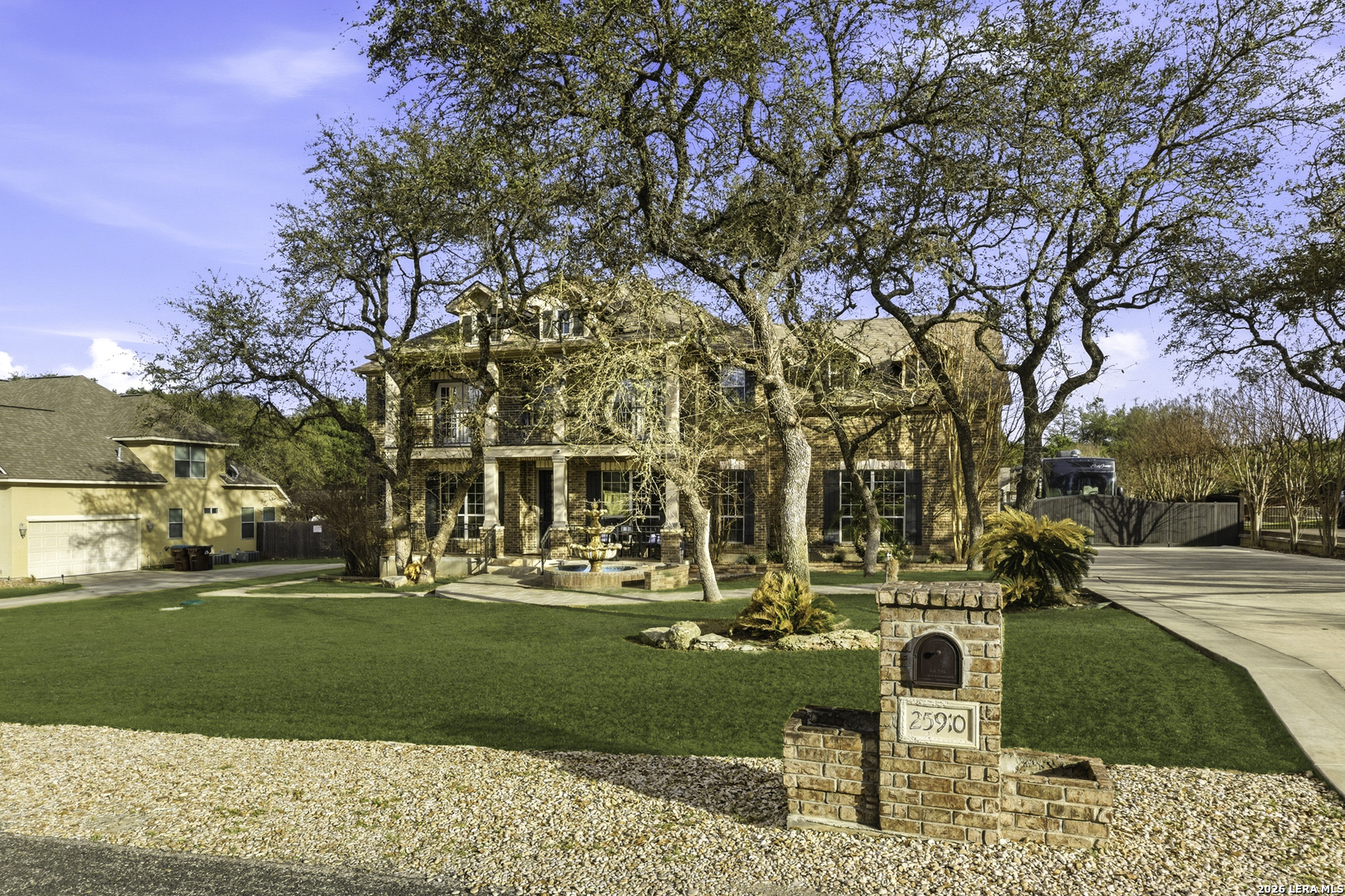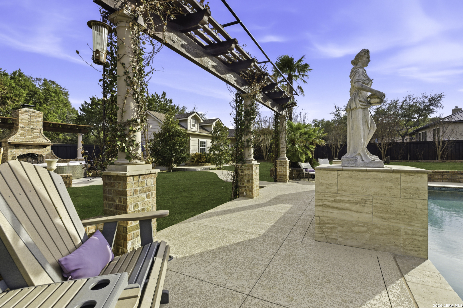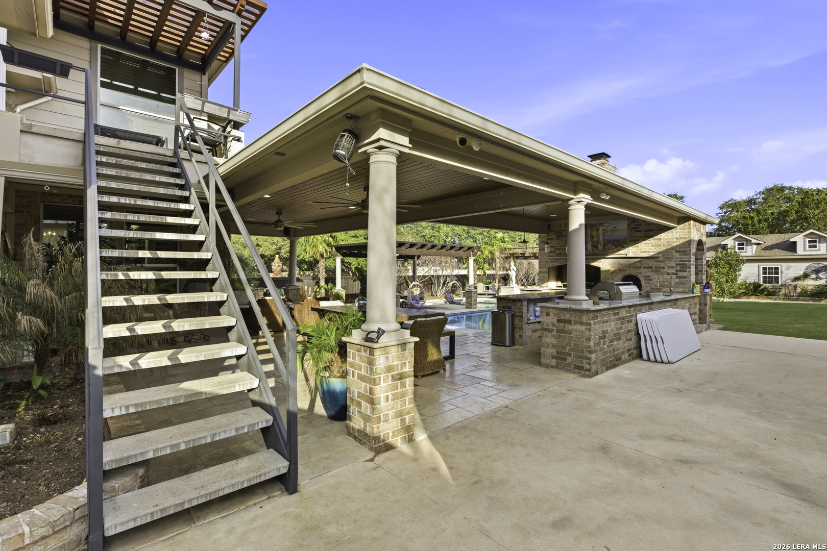 Welcome to an extraordinary private estate in the highly sought-after community of Timberwood Park, where luxury living meets unmatched versatility on a sprawling half-acre lot. Designed for multigenerational living, entertaining, and everyday comfort, this exceptional property offers a rare combination of elegance, functionality, and resort-style amenities. The beautifully remodeled main residence showcases sophisticated finishes, expansive living spaces, designer lighting, porcelain flooring, and a stunning chef's kitchen featuring premium Viking appliances, a pot filler, and generous prep space ideal for entertaining. Thoughtfully designed upgrades between 2020 and 2022 elevate every corner of the home, blending modern style with timeless comfort. This remarkable compound includes a private upstairs apartment with its own entrance, full kitchen, living and dining areas, and balcony - perfect for guests, extended family, or potential income opportunities. Two detached office suites with a full bathroom provide an ideal work-from-home environment or the flexibility to convert into a guest casita or creative studio. Step outside into your personal resort oasis featuring an expansive swimming pool, outdoor shower, full outdoor kitchen with Argentine-style barbecue, pizza oven, gas grill, griddle, refrigerator, and island seating, plus a fireplace lounge and covered pavilion designed for unforgettable gatherings. The lush grounds include mature palm trees, fruit trees, a vegetable garden, and ample space for recreation. Additional highlights include a whole-house Generac generator, RV parking with full hookups, a three-car garage, a gym with sauna conversion, and extensive energy-efficient upgrades throughout. Residents of Timberwood Park enjoy exceptional neighborhood amenities, including multiple sports courts, swimming pools, a clubhouse, fitness center, a six-hole putting green, scenic park spaces, and vibrant community events year-round - all while being conveniently located near top-rated schools with easy access to Highway 281 and Loop 1604. This is more than a home; it is a private retreat designed for luxurious everyday living, unforgettable entertaining, and limitless possibilities.