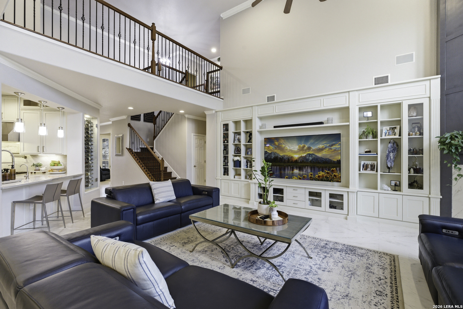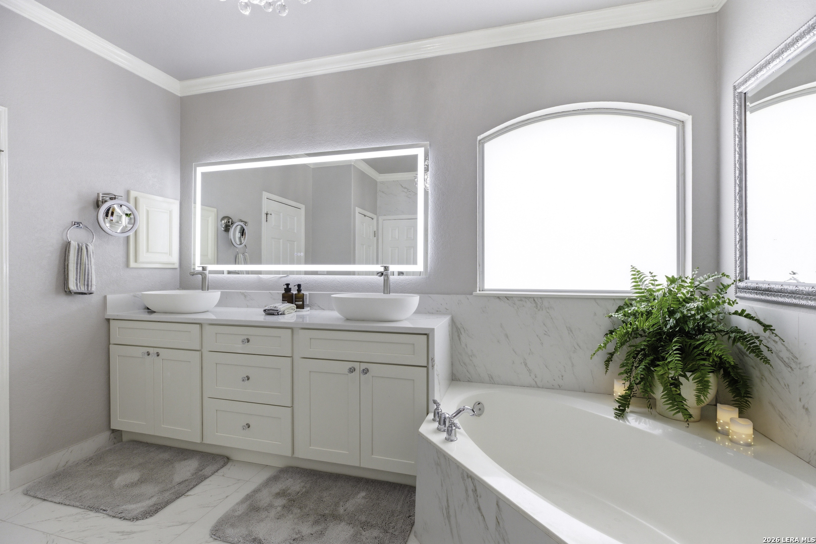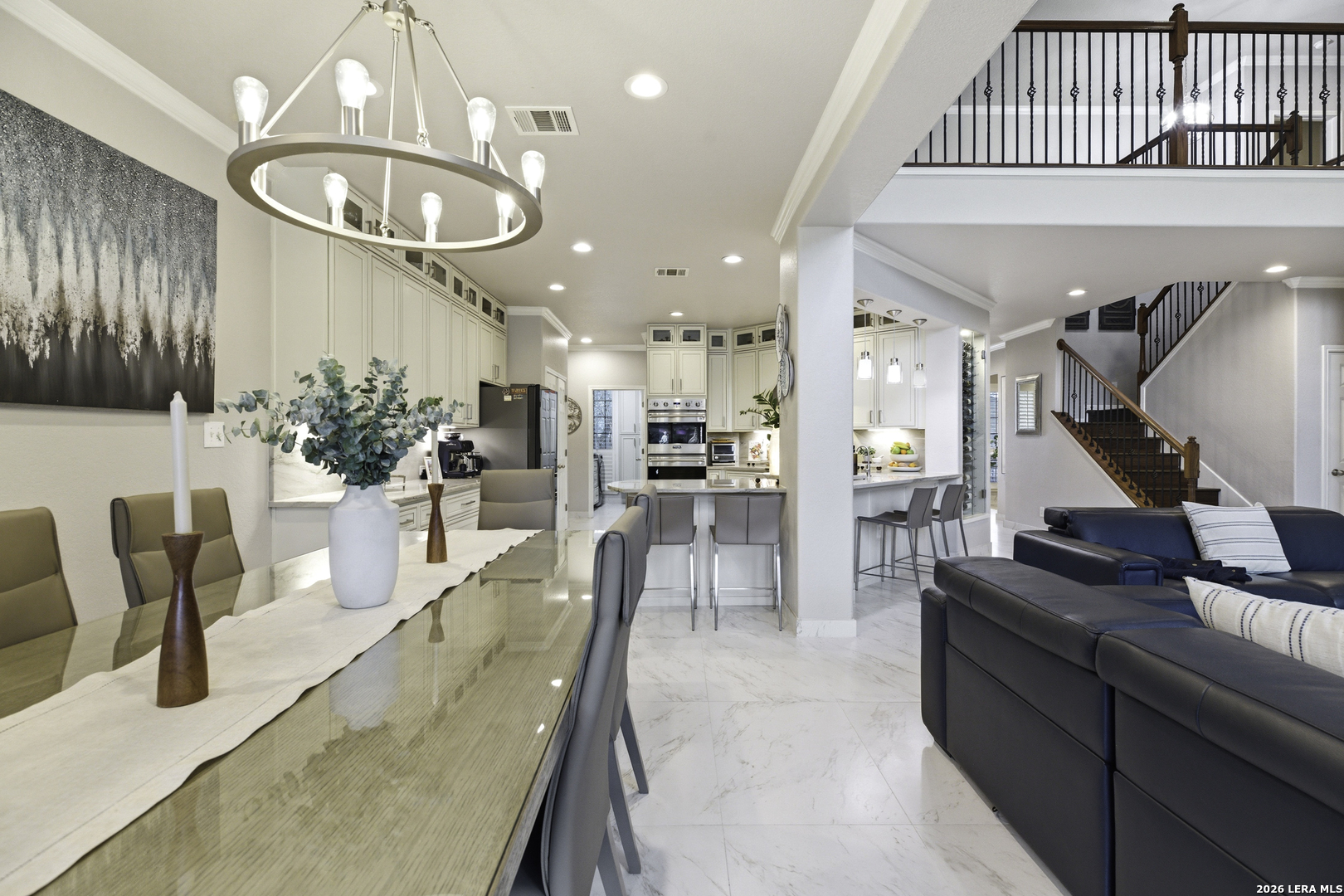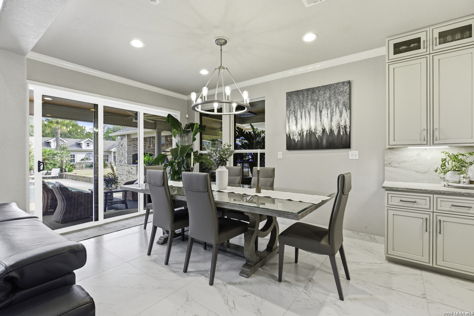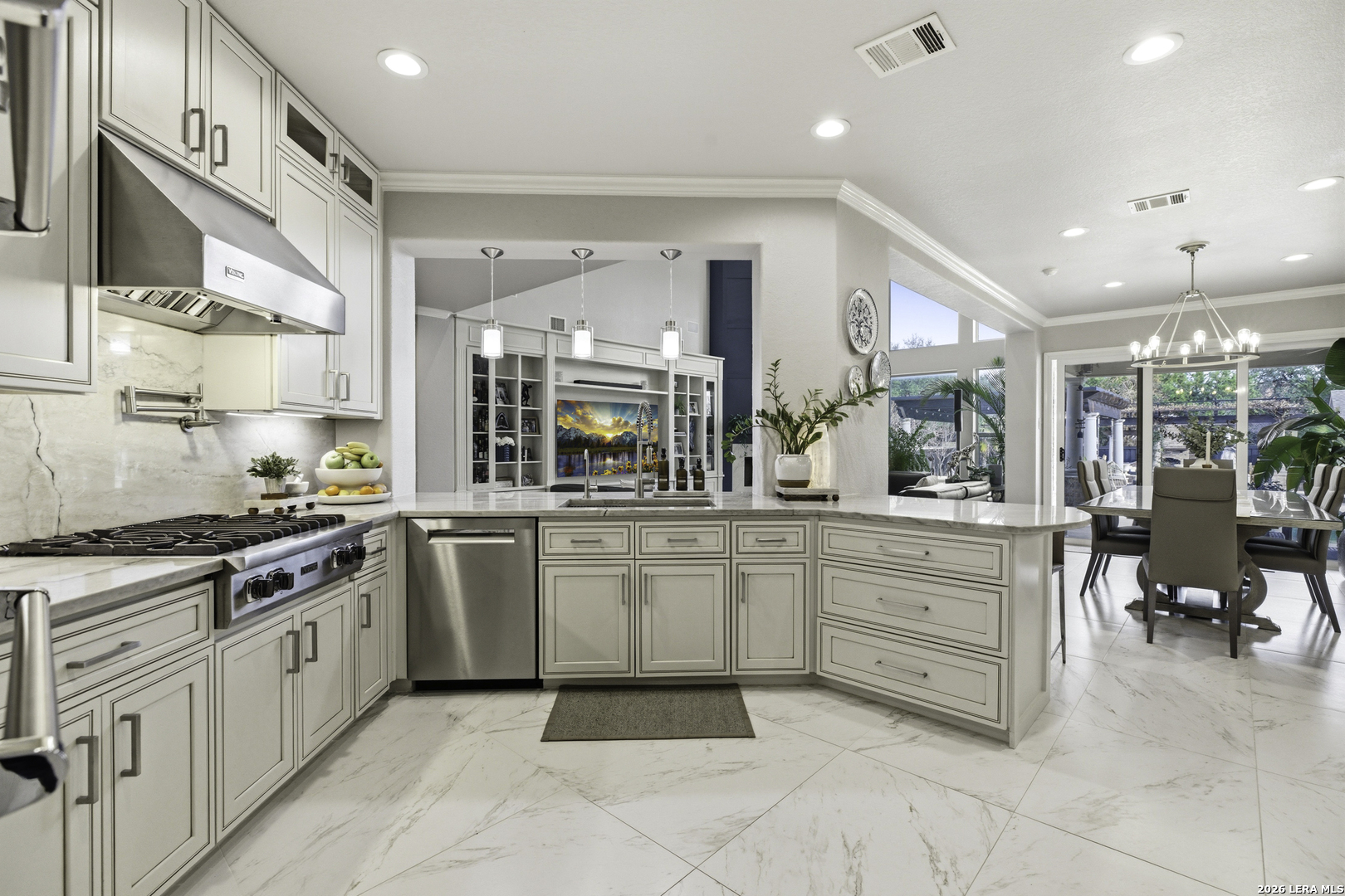 Welcome to an extraordinary private estate in the highly sought-after community of Timberwood Park, where luxury living meets unmatched versatility on a sprawling half-acre lot. Designed for multigenerational living, entertaining, and everyday comfort, this exceptional property offers a rare combination of elegance, functionality, and resort-style amenities. The beautifully remodeled main residence showcases sophisticated finishes, expansive living spaces, designer lighting, porcelain flooring, and a stunning chef's kitchen featuring premium Viking appliances, a pot filler, and generous prep space ideal for entertaining. Thoughtfully designed upgrades between 2020 and 2022 elevate every corner of the home, blending modern style with timeless comfort. This remarkable compound includes a private upstairs apartment with its own entrance, full kitchen, living and dining areas, and balcony - perfect for guests, extended family, or potential income opportunities. Two detached office suites with a full bathroom provide an ideal work-from-home environment or the flexibility to convert into a guest casita or creative studio. Step outside into your personal resort oasis featuring an expansive swimming pool, outdoor shower, full outdoor kitchen with Argentine-style barbecue, pizza oven, gas grill, griddle, refrigerator, and island seating, plus a fireplace lounge and covered pavilion designed for unforgettable gatherings. The lush grounds include mature palm trees, fruit trees, a vegetable garden, and ample space for recreation. Additional highlights include a whole-house Generac generator, RV parking with full hookups, a three-car garage, a gym with sauna conversion, and extensive energy-efficient upgrades throughout. Residents of Timberwood Park enjoy exceptional neighborhood amenities, including multiple sports courts, swimming pools, a clubhouse, fitness center, a six-hole putting green, scenic park spaces, and vibrant community events year-round - all while being conveniently located near top-rated schools with easy access to Highway 281 and Loop 1604. This is more than a home; it is a private retreat designed for luxurious everyday living, unforgettable entertaining, and limitless possibilities.