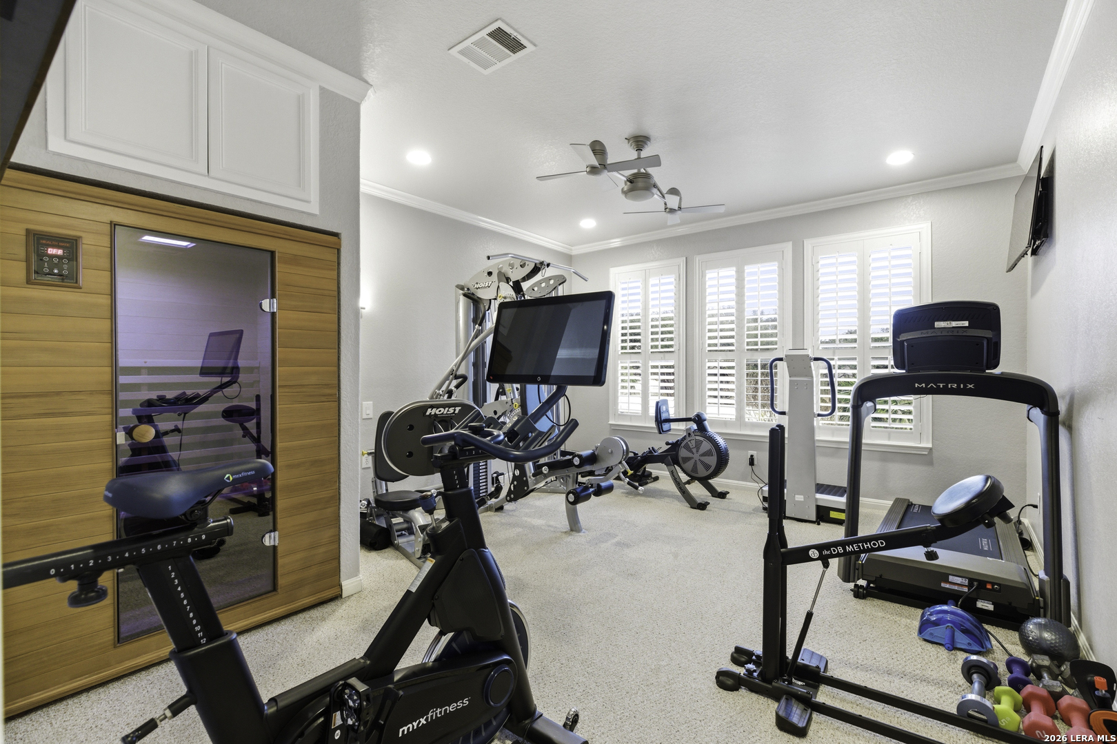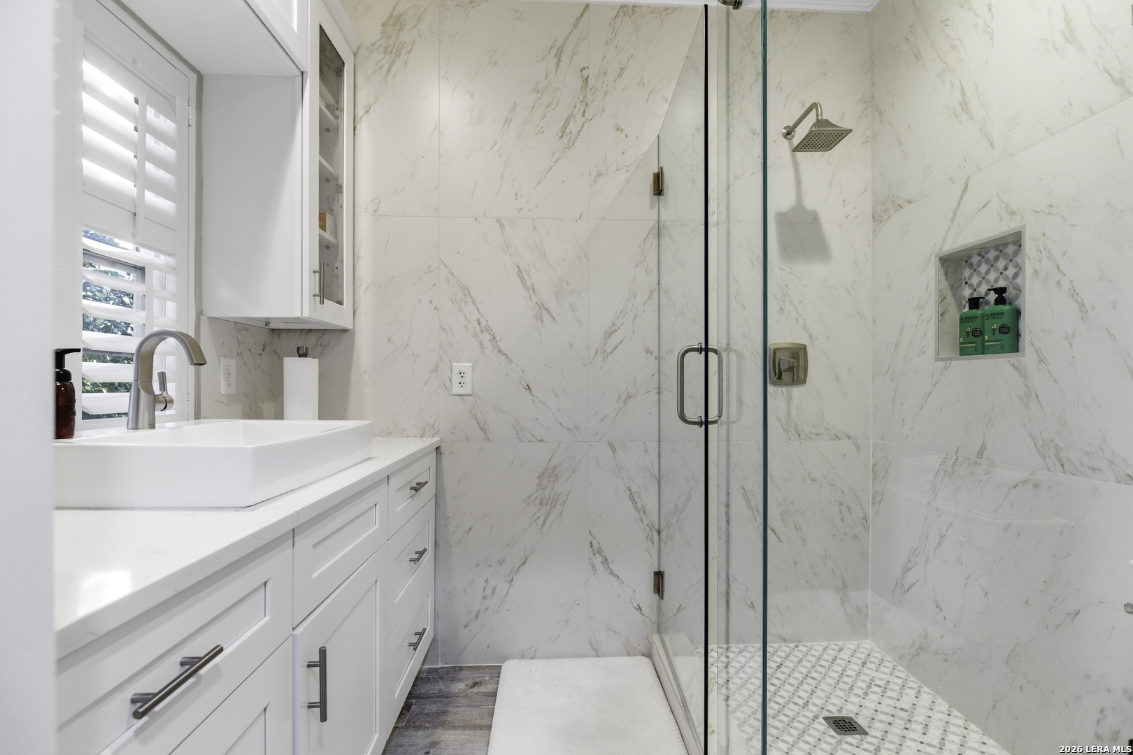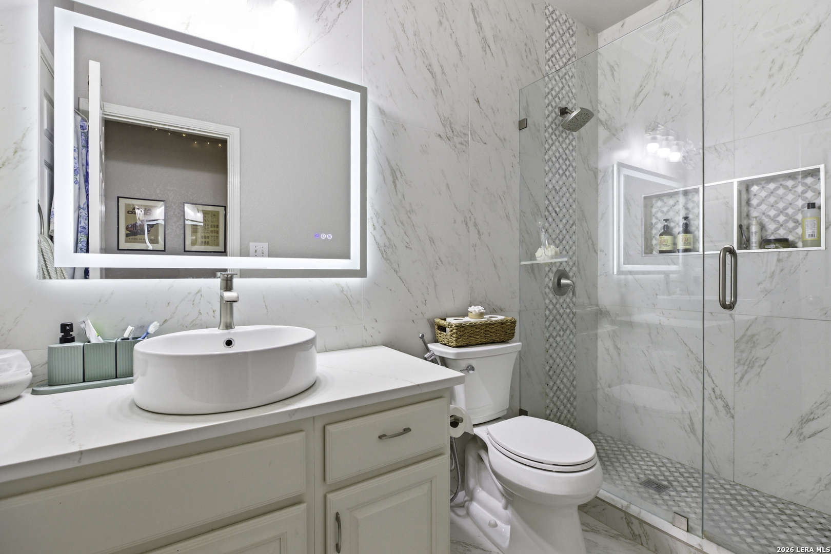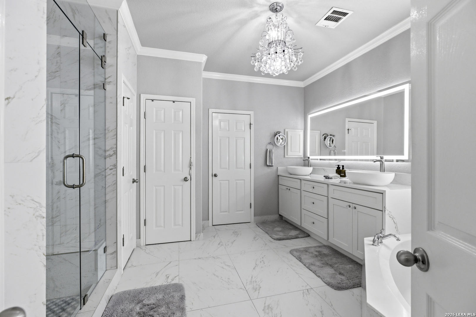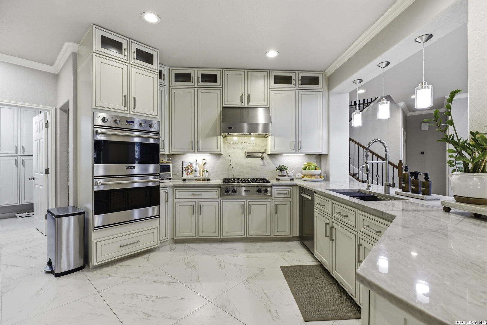 Welcome to an extraordinary private estate in the highly sought-after community of Timberwood Park, where luxury living meets unmatched versatility on a sprawling half-acre lot. Designed for multigenerational living, entertaining, and everyday comfort, this exceptional property offers a rare combination of elegance, functionality, and resort-style amenities. The beautifully remodeled main residence showcases sophisticated finishes, expansive living spaces, designer lighting, porcelain flooring, and a stunning chef's kitchen featuring premium Viking appliances, a pot filler, and generous prep space ideal for entertaining. Thoughtfully designed upgrades between 2020 and 2022 elevate every corner of the home, blending modern style with timeless comfort. This remarkable compound includes a private upstairs apartment with its own entrance, full kitchen, living and dining areas, and balcony - perfect for guests, extended family, or potential income opportunities. Two detached office suites with a full bathroom provide an ideal work-from-home environment or the flexibility to convert into a guest casita or creative studio. Step outside into your personal resort oasis featuring an expansive swimming pool, outdoor shower, full outdoor kitchen with Argentine-style barbecue, pizza oven, gas grill, griddle, refrigerator, and island seating, plus a fireplace lounge and covered pavilion designed for unforgettable gatherings. The lush grounds include mature palm trees, fruit trees, a vegetable garden, and ample space for recreation. Additional highlights include a whole-house Generac generator, RV parking with full hookups, a three-car garage, a gym with sauna conversion, and extensive energy-efficient upgrades throughout. Residents of Timberwood Park enjoy exceptional neighborhood amenities, including multiple sports courts, swimming pools, a clubhouse, fitness center, a six-hole putting green, scenic park spaces, and vibrant community events year-round - all while being conveniently located near top-rated schools with easy access to Highway 281 and Loop 1604. This is more than a home; it is a private retreat designed for luxurious everyday living, unforgettable entertaining, and limitless possibilities.