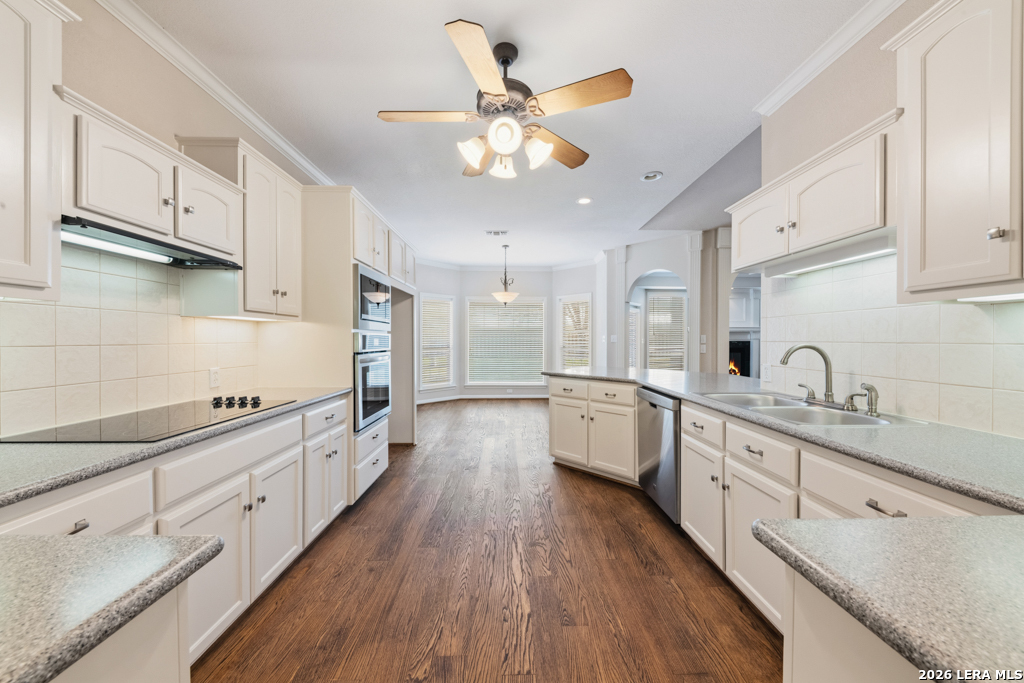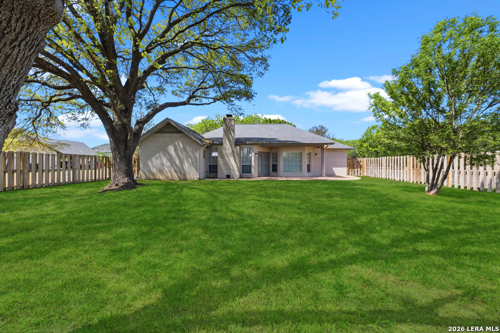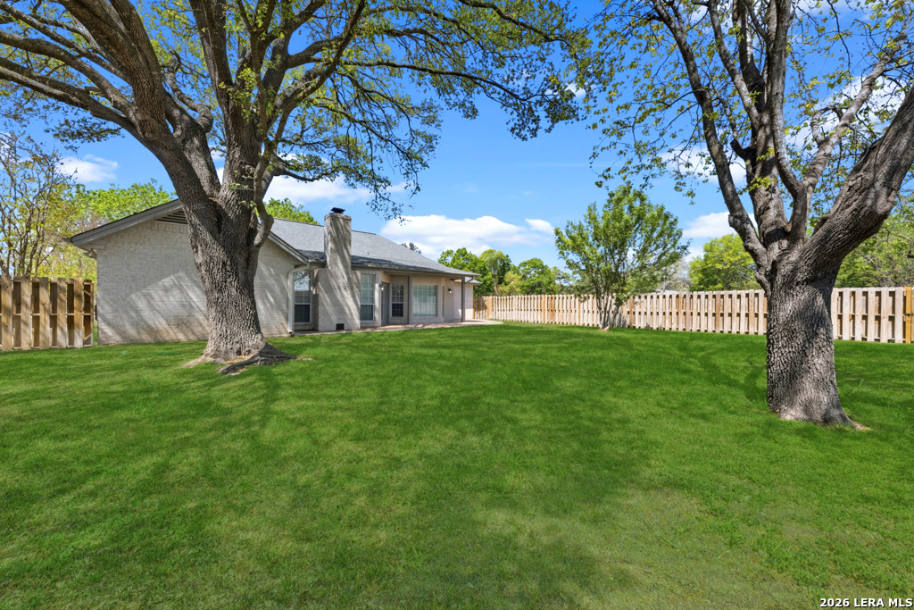 Lovely four bedroom, three full bath single story home located in highly sought after Horseshoe Falls subdivision! Dual primary bedrooms is one of the many features this home has to offer. Many recent updates throughout include new solid surface counter tops, kitchen appliances, blinds and flooring. Open floorpan with many windows for natural lighting, wood burning fireplace in living area, breakfast/dining area overlook the private backyard with mature trees and privacy fence. Tons of storage throughout, indoor utility room and two car garage. Just a short walk to the beautiful Guadalupe River Park along the peaceful river to relax and enjoy nature! Buyer to verify square footage. Tax records do not include square footage from enclosed porch that was added to living area.