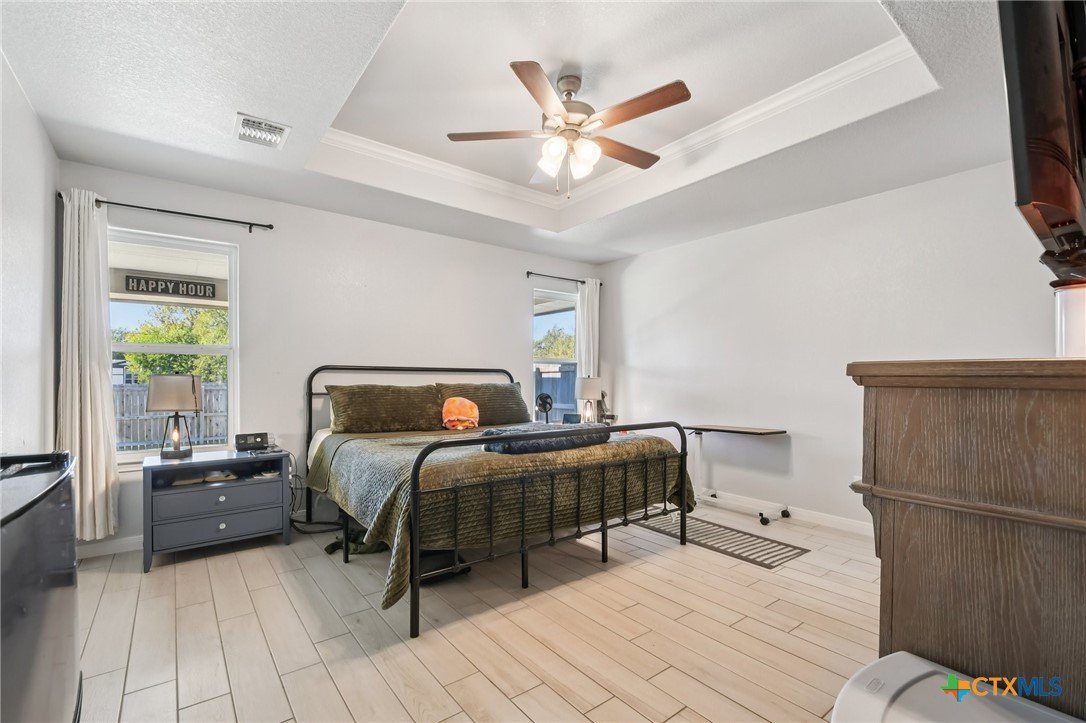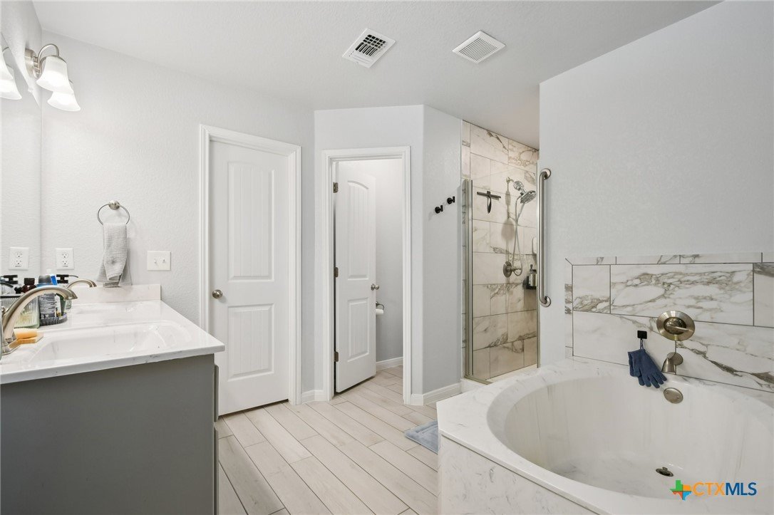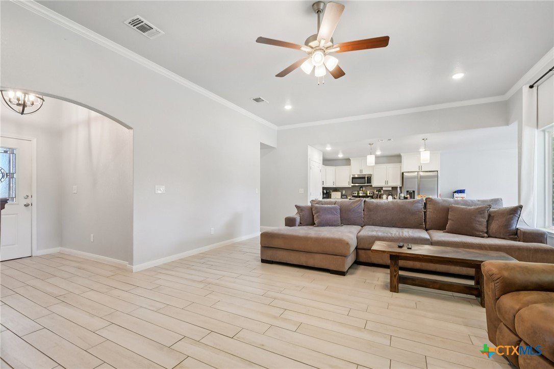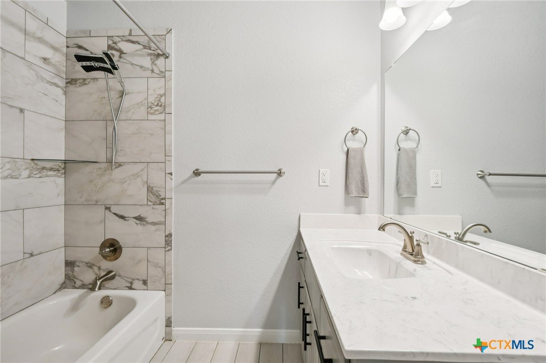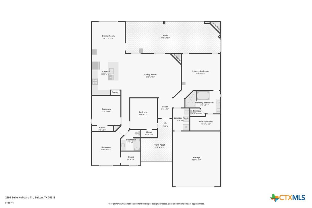 Beautifully maintained 2021-built home featuring 4 bedrooms and 2 full baths in an ideal Belton location! You’ll love the open-concept layout with a spacious living room highlighted by a cozy fireplace and a gorgeous light wood-look plank tile that flows throughout. The chef’s kitchen offers abundant counter space, a large center island, granite countertops, and stainless steel appliances—perfect for entertaining or family gatherings. Step outside to an impressive covered patio complete with a built-in fireplace, creating the ultimate outdoor living space. The primary suite boasts a tray ceiling, a luxurious soaking tub, separate shower, and dual vanities. Three additional bedrooms provide plenty of room for guests or a home office. Solar panels with battery back-up keep your power on and your energy bills low. Conveniently located close to major roads, shopping, and schools, this home truly has it all!