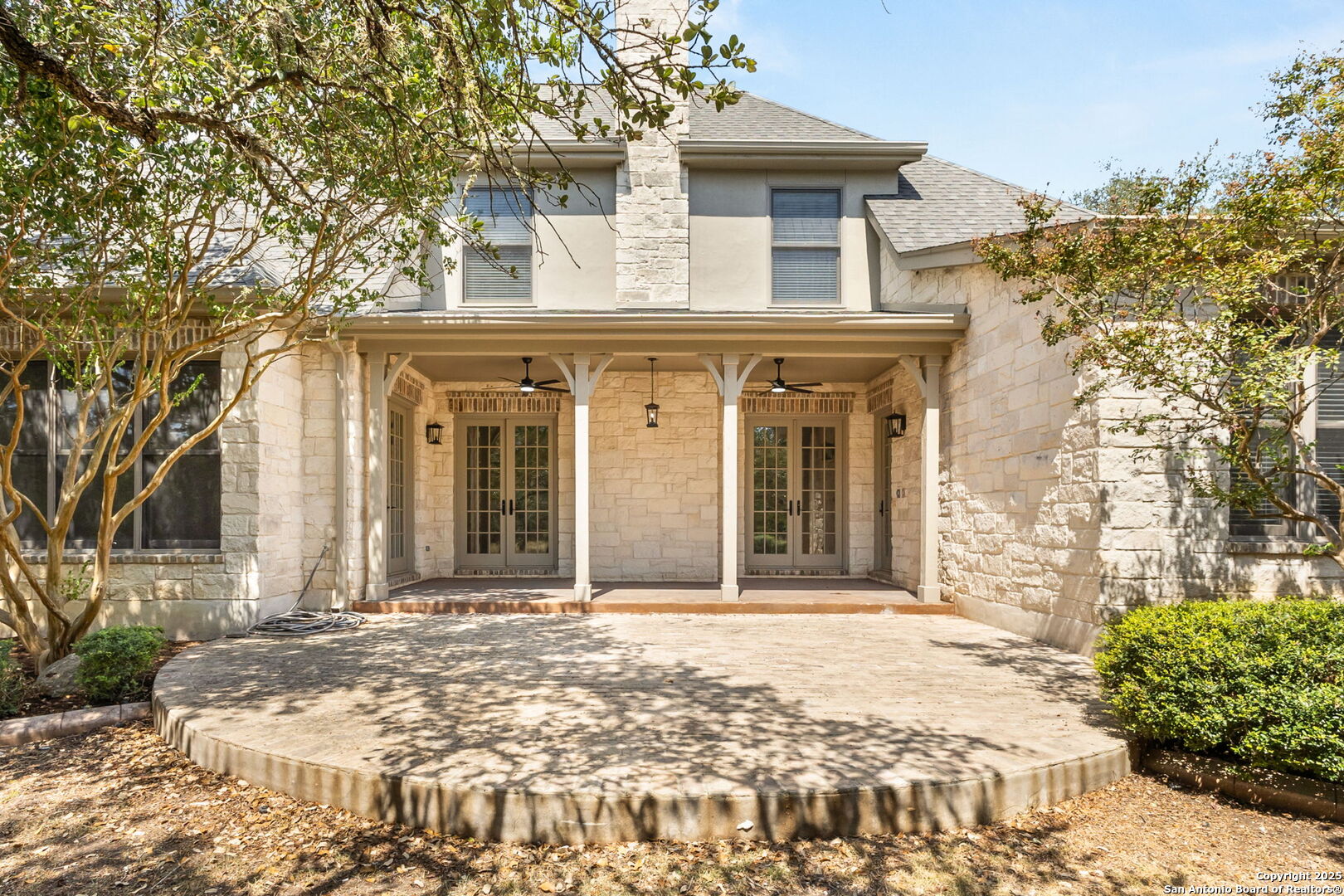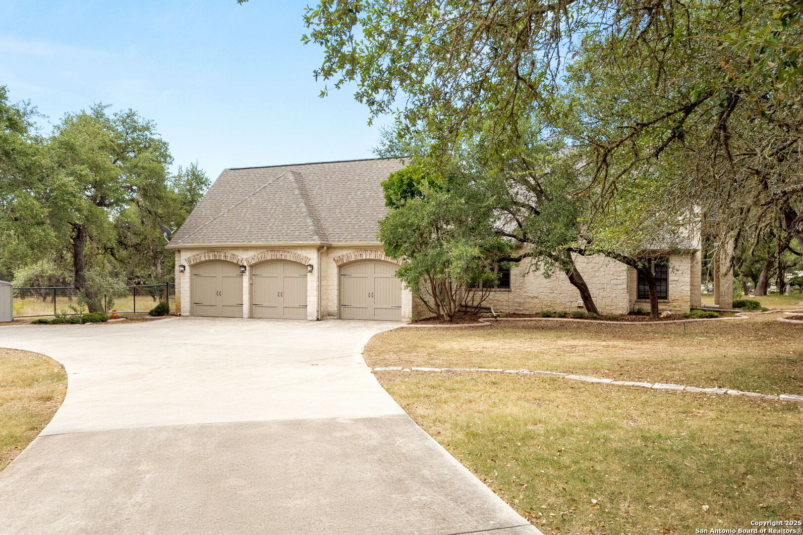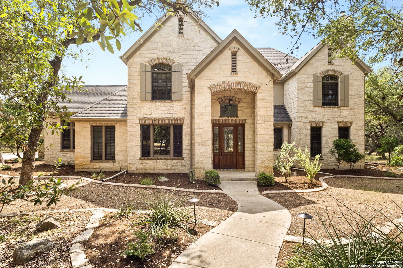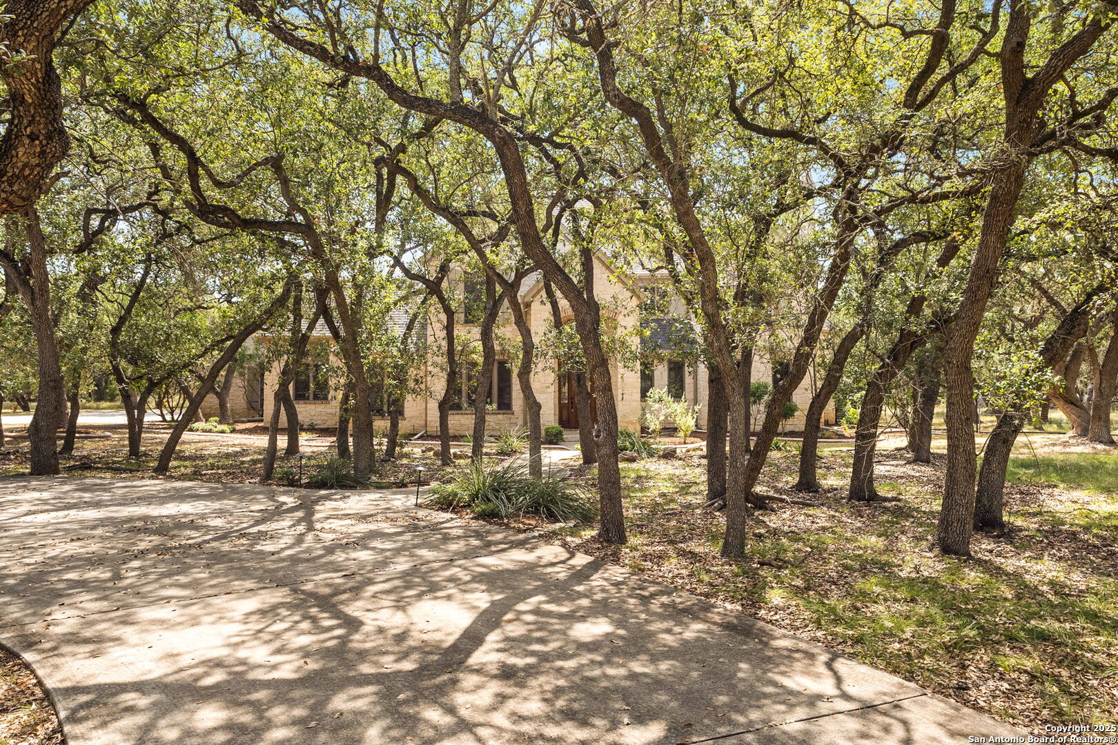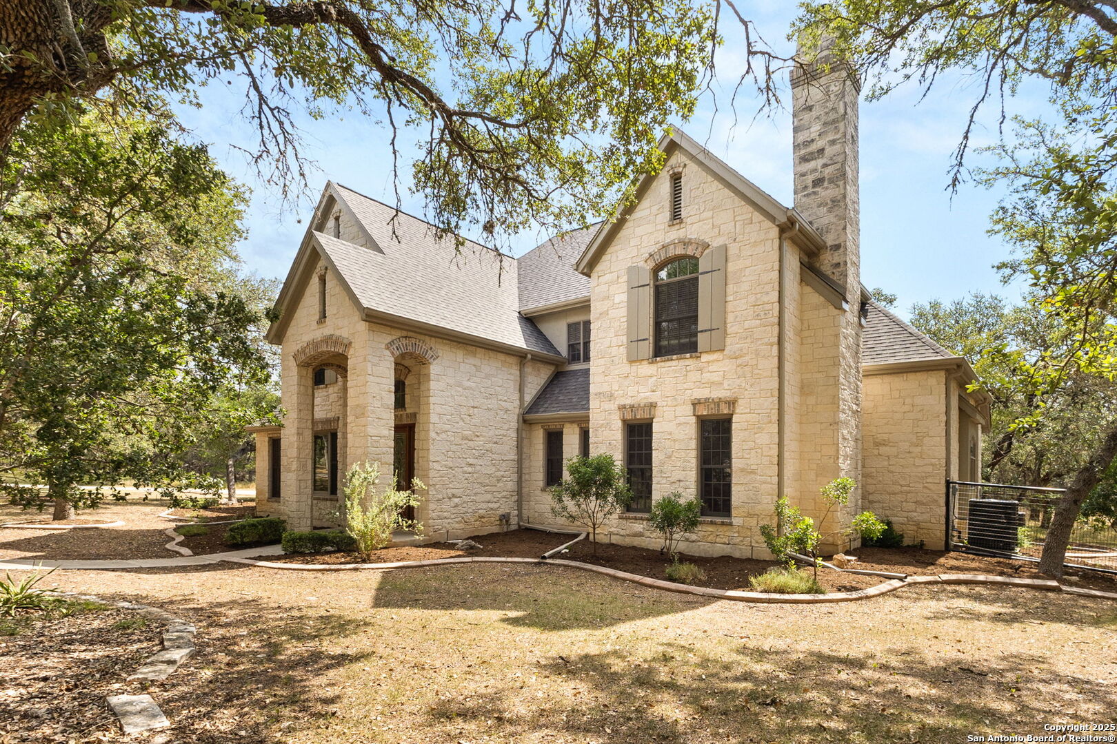 Come by the DUAL OPEN HOUSE: 25960 Bent Bluff + 25955 Post View (backs up to this property) Sat. 8/23 from 10 AM - 1 PM! Stop scrolling-this is the one. Behind the gates of the prestigious Lewis Ranch community, nearly four acres of oak-studded land reveal a limestone estate that feels both timeless and newly reborn. With 4,566 square feet of tastefully renovated living space, this is more than a home-it's a statement. New roof, flooring, paint, and all 3 furnaces and A/C units replaced immediately prior to selling. As the circular drive winds through mature oaks, anticipation builds. The limestone facade stands tall, complemented by a side-entry three-car garage and an expansive, fenced backyard that delivers peace of mind and plenty of room to roam. Inside, a soaring two-story foyer sets the tone: spacious, refined, and unforgettable. To the left lies the formal dining room, perfectly suited for gatherings. Straight ahead, a bright living room anchored by a stone gas fireplace flows seamlessly to the covered porch, while to the right, an executive-style study with wood paneling, a gas fireplace, and impressive built-in shelving creates a true power office. The renovated kitchen blends warmth and luxury with its striking stone arch accent wall, updated appliances, dual sinks, wine fridge, and thoughtful layout designed for both everyday living and entertaining. The primary suite is a private retreat, filled with natural light and featuring direct access to the covered porch. Its bathroom has been completely reimagined with a frameless walk-in shower, large soaking tub, dual vanities, and dual walk-in closets. The home continues to surprise at every turn. A junior primary suite offers its own en-suite bath and walk-in closet, while a cleverly designed dog-wash station near the back porch makes life with pets easy. Upstairs, a sprawling game room anchors the second level, where two large bedrooms share a Jack-and-Jill bath, and a fifth bedroom features its own en-suite and oversized walk-in closet. Above the garage, a massive unfinished flex space-already floored-offers endless possibilities for storage now or additional living space in the future. Outdoors, the backyard is fully secured with an expensive welded wire fence, making it perfect for children, pets, or simply enjoying the land without worry. Every detail, inside and out, has been carefully considered and beautifully refreshed, making this property both move-in ready and one-of-a-kind. Schedule your showing today before this rare Lewis Ranch estate is gone.