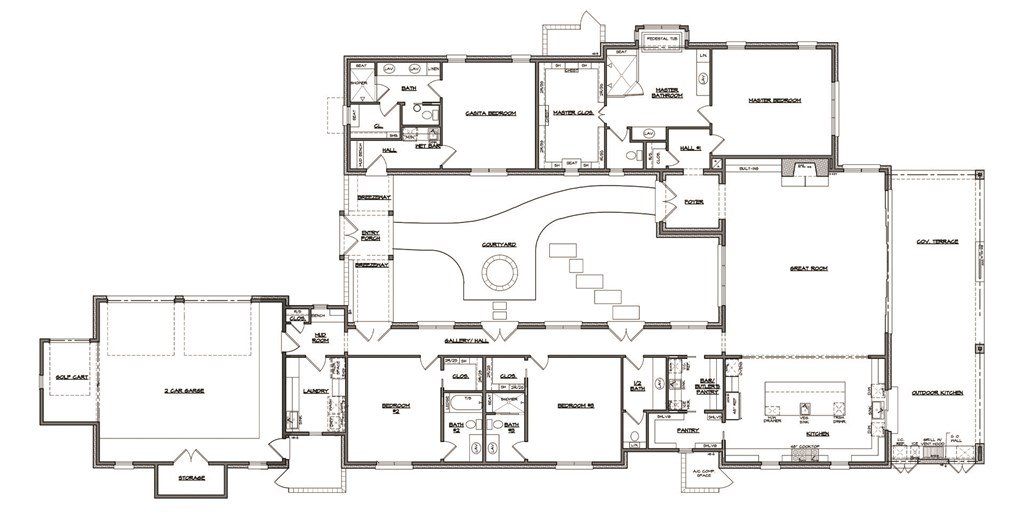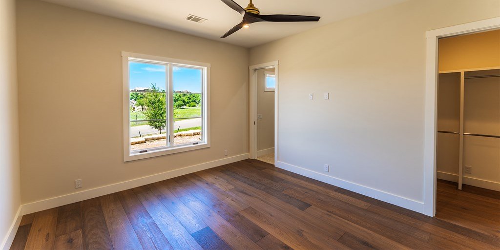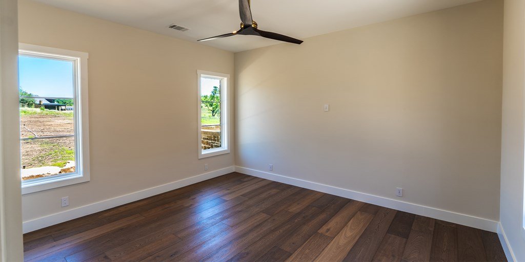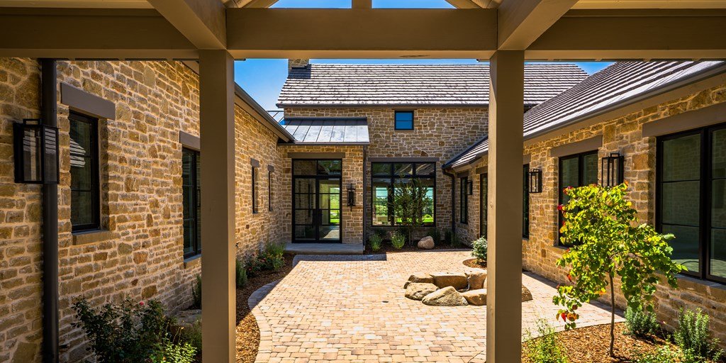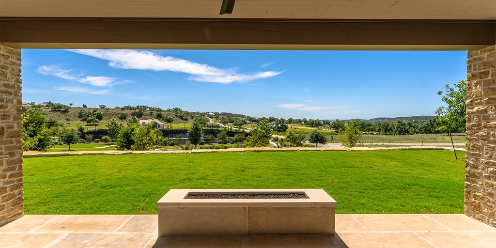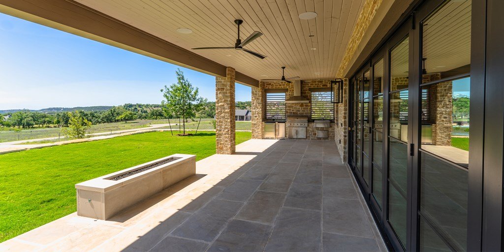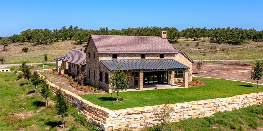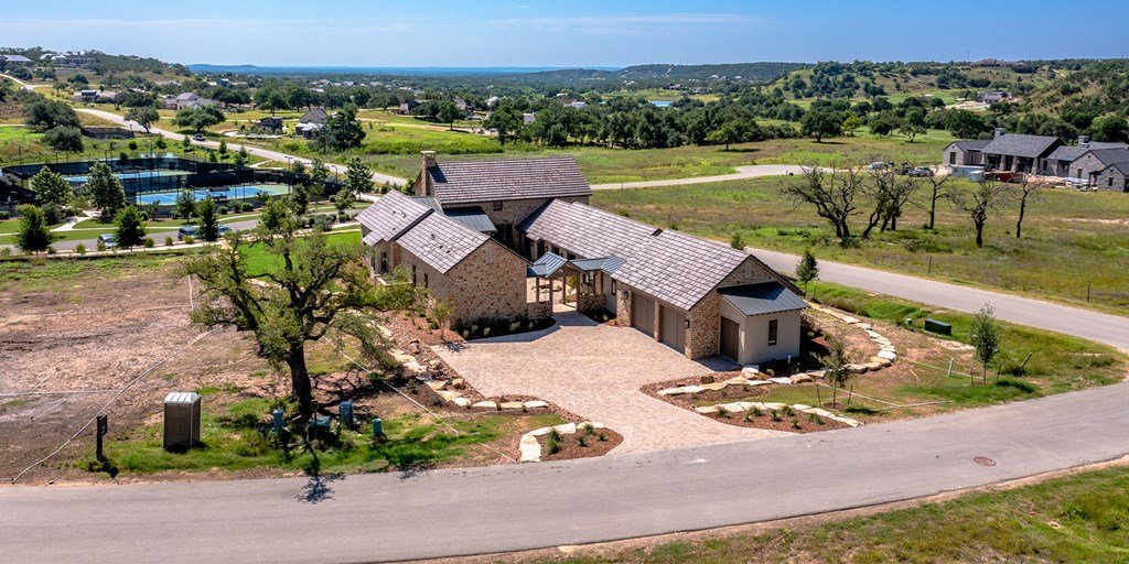Are you a fan of racquet sports? Imagine living right above the newly constructed Racquet Club. This fantastic hill-country style custom home, situated on less than an acre, can make your dream come true. Walking distance to the Racquet Club, and a short cart ride to the Lakeside Village, Clubhouse, and Ranch Club. The main room has stackable folding sliding glass doors that provide an incredible view of the covered terrace and eastern horizon. The vaulted ceiling, wood beams, and clerestory windows above perfectly complement the large stone fireplace. The floor plan features an open kitchen right off the great room, with a stately island, breakfast bar, top-of-the-line luxury appliances, and an ingenious pass-through window that connects to the outdoor kitchen. Down the gallery hall, you will find the butler's pantry, powder room, two additional bedrooms, two bathrooms, a mudroom, and a laundry. The courtyard breezeway is the entrance to the 1 bedroom and 1 bath casita. This is the perfect lock and leave or permanent residence at Boot Ranch. Don't miss your opportunity to become part of Boot Ranch, the finest private club community in Texas.