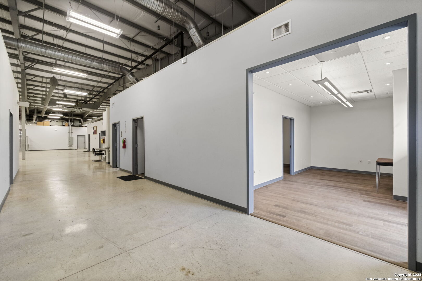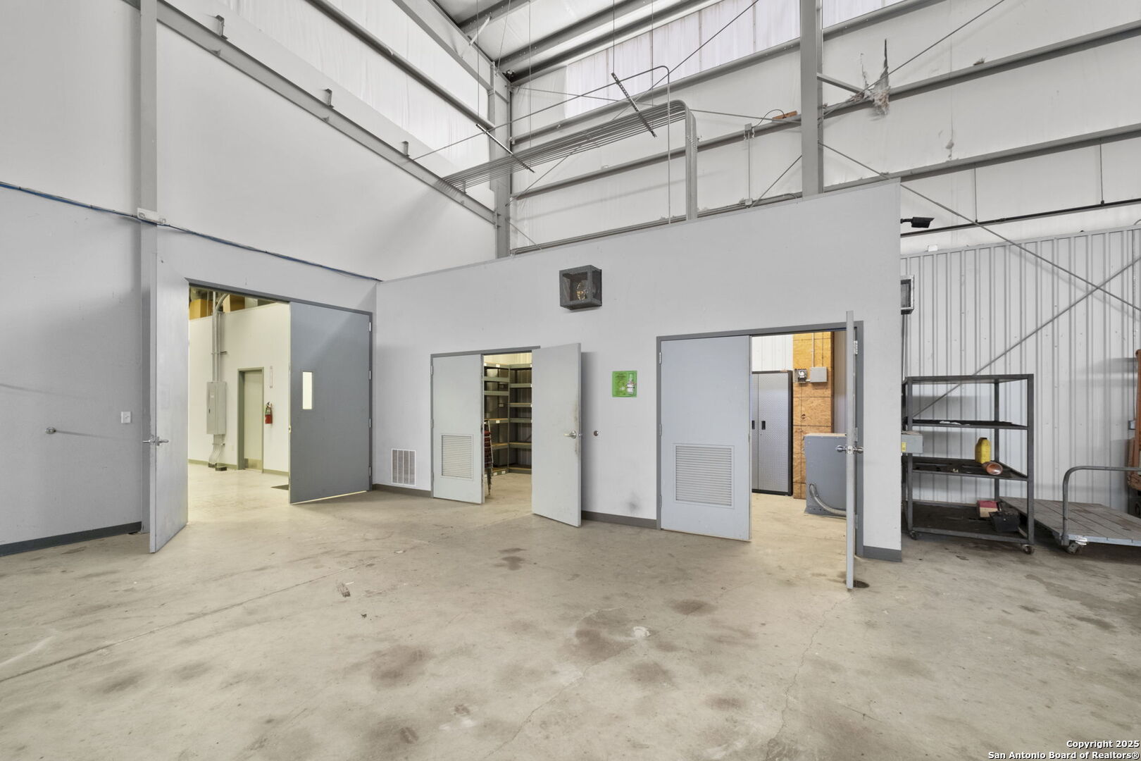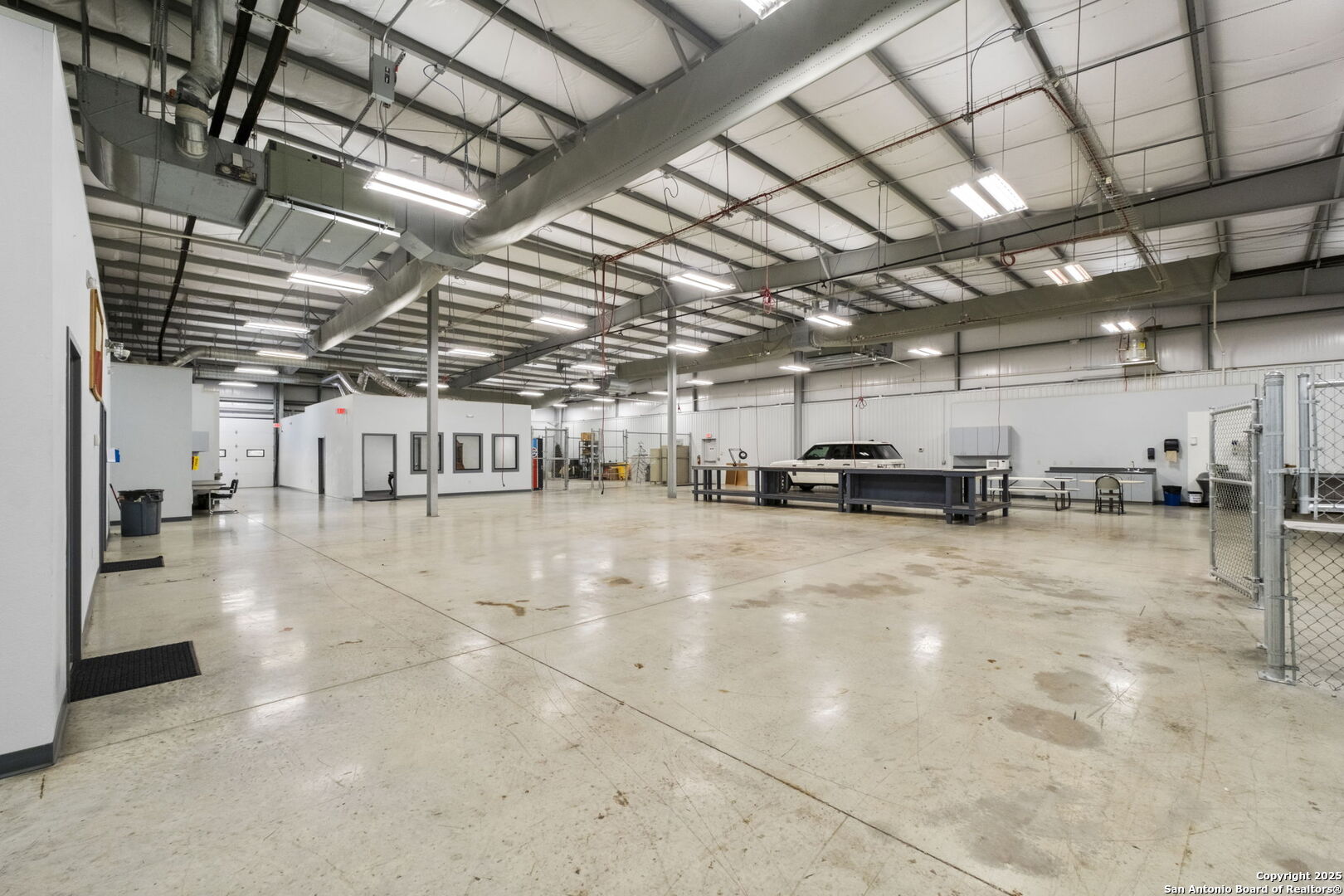 This fully secured, gated property offers a rare opportunity to own a turnkey industrial facility. Ideal for warehousing, light manufacturing, and production, the site features a blend of professional office space and a climate-controlled warehouse-all sold together, including the airplane hangar. The office area includes a reception area, nine private offices, and multiple restrooms. The production-ready warehouse is outfitted with multiple electrical drops, air compressor lines, an 800 amp three-phase power system, two high-voltage sub-panels, and three low-voltage sub-panels. Climate control is handled by five HVAC units (two 5-ton, one 7.5-ton, and two 10-ton units). Additional features include two electric motorized roll-up doors, two manual drive-in doors, a 900 SF outdoor covered storage area, and two commercial-grade water fountains. Efficient office-to-warehouse layout.