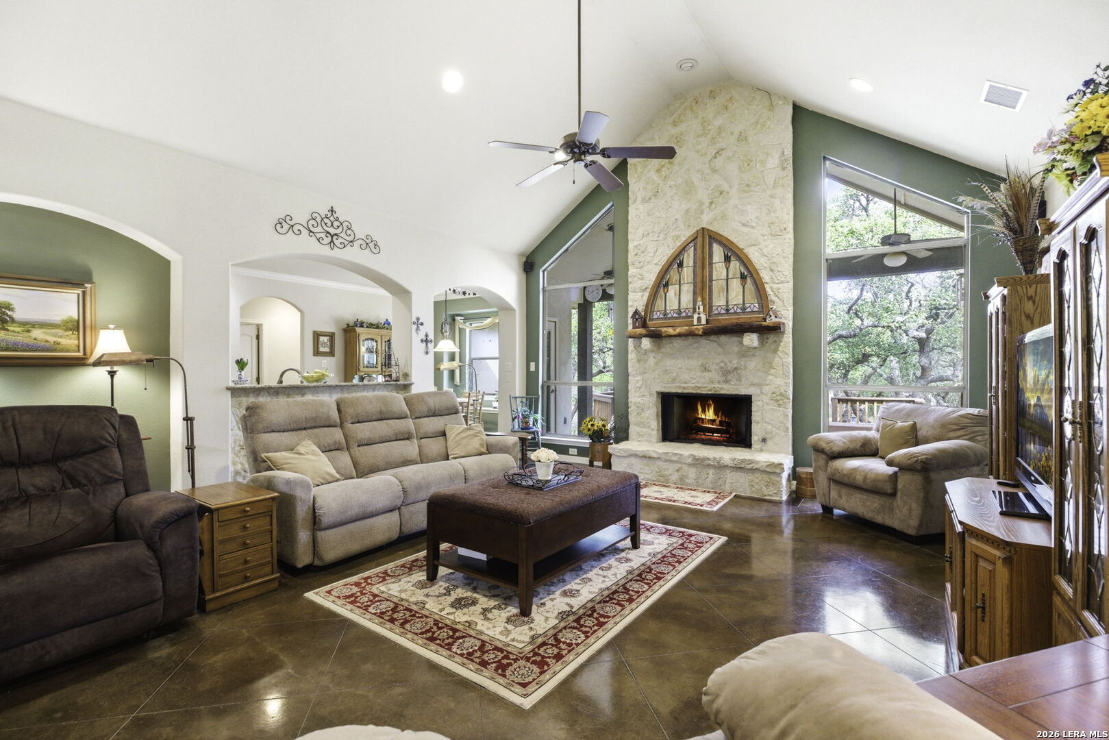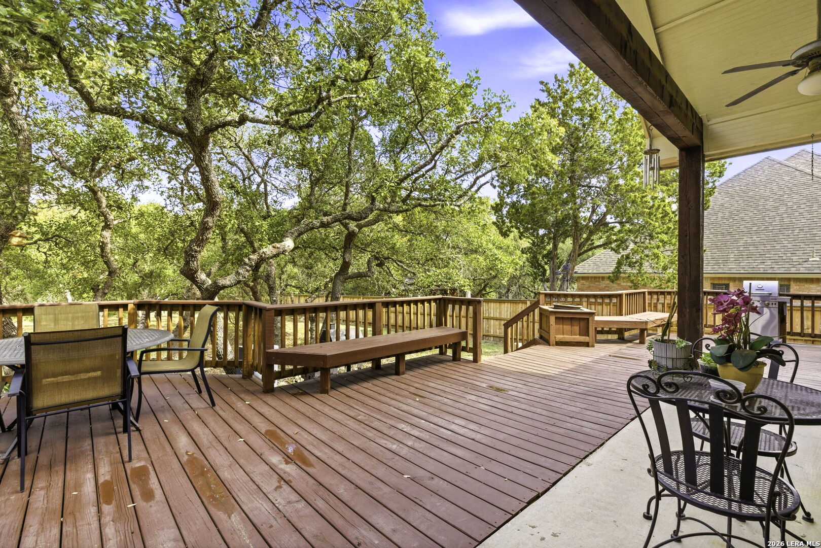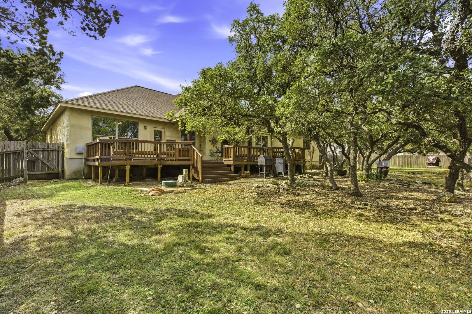 This beautiful one-story custom home is located in the popular Timberwood Park subdivision, and is situated on a spacious, .81-acre, level lot, loaded with 50 oak trees! NEW ROOF 2024! The Builder is the highly acclaimed Double Diamond and some of the Exterior features include side-entry garage, large, covered patio and deck, privacy fence, shed, and 4-sides masonry. The interior is appointed with a gourmet island kitchen w/granite top, custom cabinets, in-wall ovens, high vaulted ceilings, tall rock fireplace with glass on both sides, beautiful stained concrete floors in all the common areas, carpet and tile in bedrooms and baths, and beautiful designer colors! NO CITY TAXES * LOW HOA FEES * EXCELLENT AREA SCHOOLS * 35 ACRE RECREATION CENTER (pool, lake, clubhouse, gym, par-3 golf, tennis, basketball, and pickle ball courts, jogging trail, pavilion area, and so much more) *
