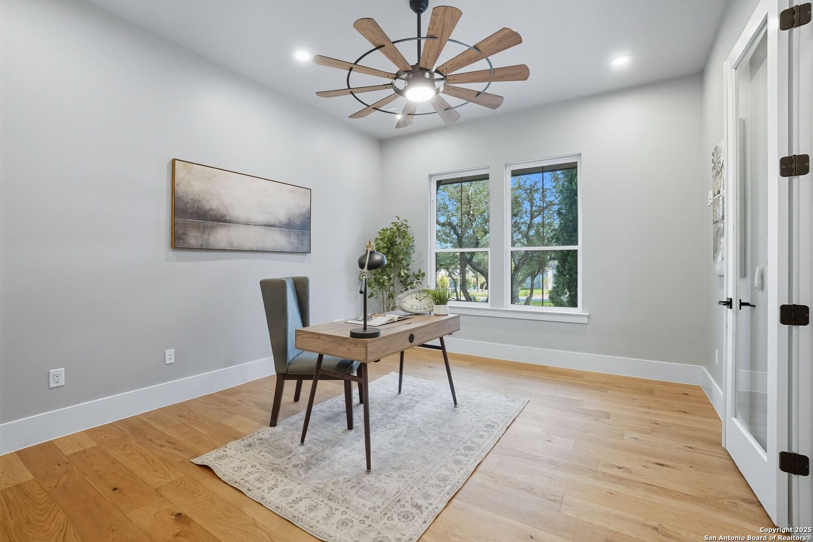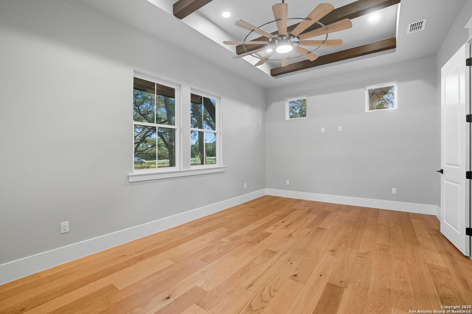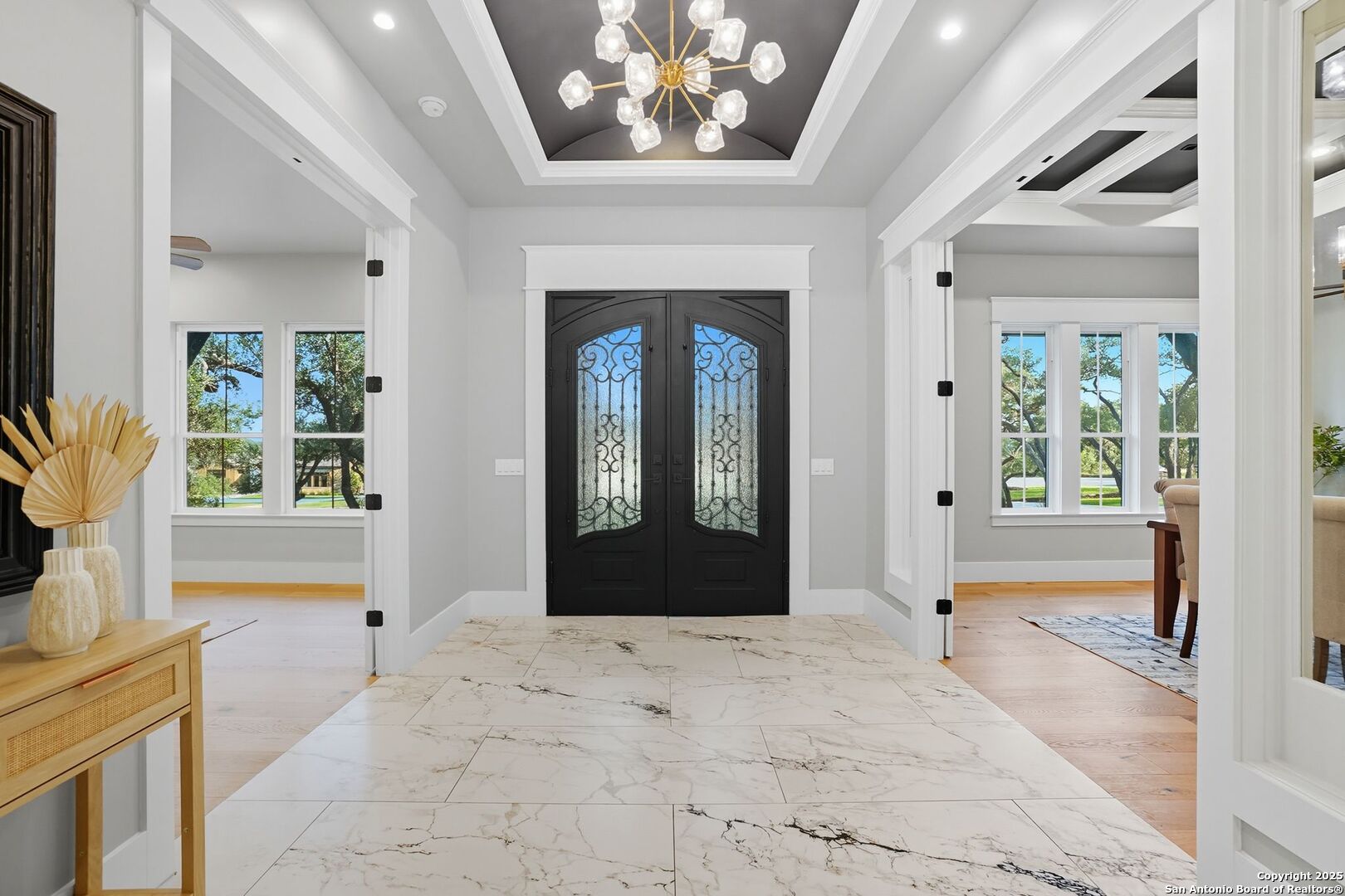 This home qualifies for builder concessions to help with your down payment or interest rate! Welcome to 26011 Cotaco Creek, a custom one-story home set on a level one-acre lot surrounded by majestic oak trees in Boerne's coveted Pecan Springs Ranch. This 4,700 sq. ft. residence offers 5 spacious bedrooms with en-suite baths, a versatile study/flex room, and a fully detached casita complete with kitchenette, bedroom, full bath, and closet-ideal for guests or extended stays. The expansive living area is highlighted by soaring 27-ft ceilings with decorative wood beams, while the gourmet kitchen features premium Dacor appliances, a gas stove with pot filler, hidden pantry, elegant French doors, and a butler's pantry with wine fridge and space for a second refrigerator. Outdoor living is equally impressive with a covered patio, outdoor kitchen, fireplace, and a heated pool with spa for year-round enjoyment. Community amenities include a planned recreation park with pavilion, playground, and walking trails, plus access to a scenic 32-acre nature park with 2-3 miles of paved biking and walking paths. A rare opportunity to own a luxury custom home in one of Boerne's premier neighborhoods.