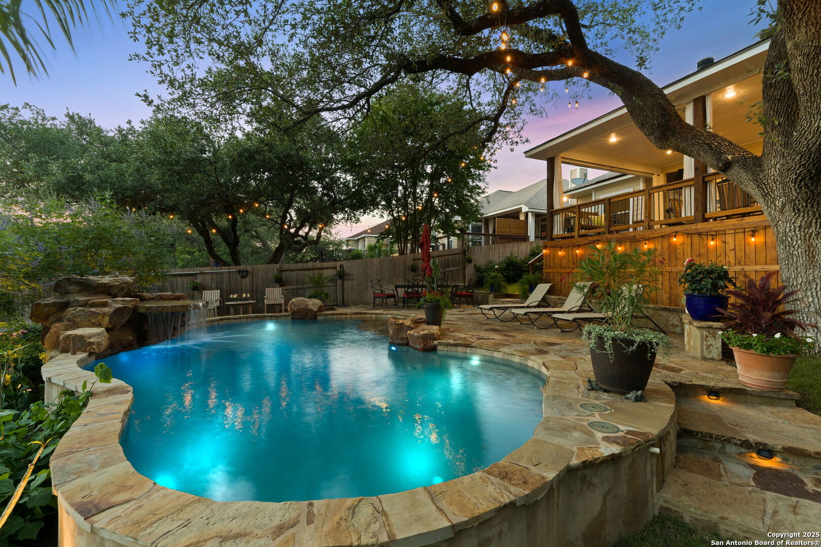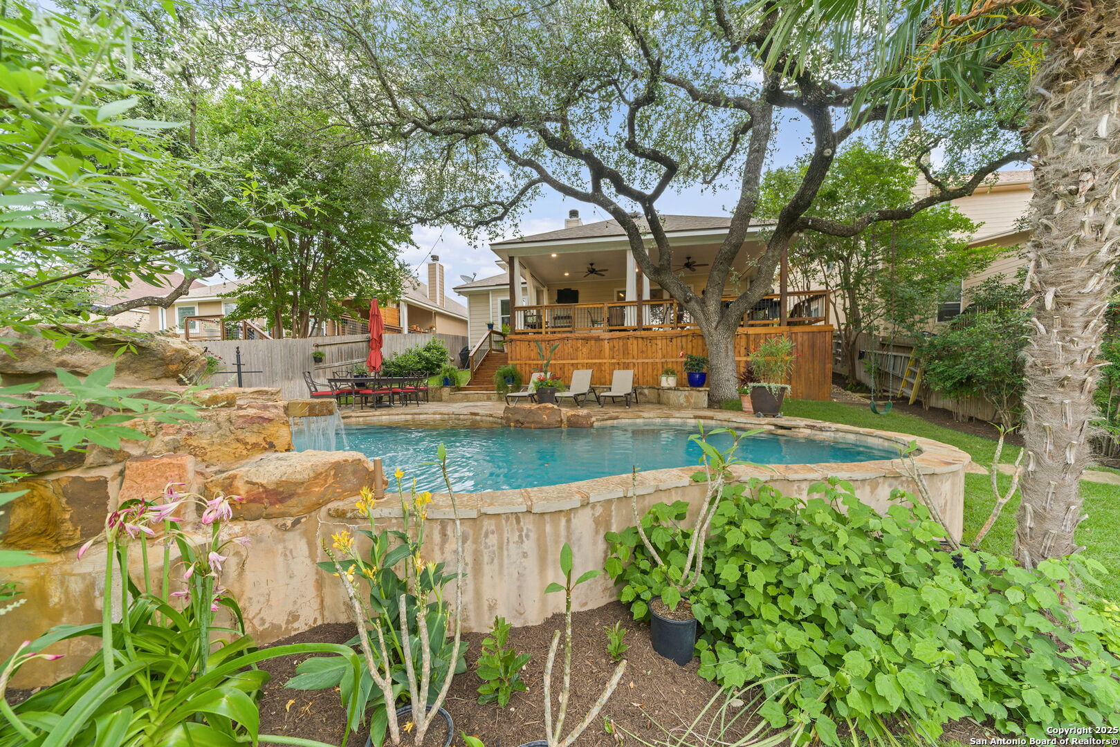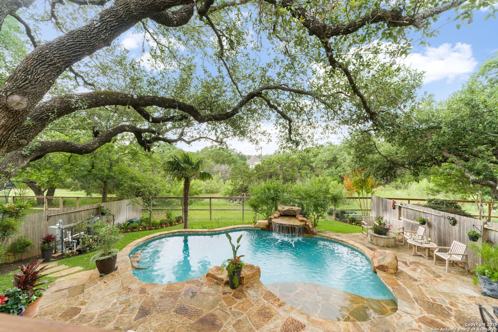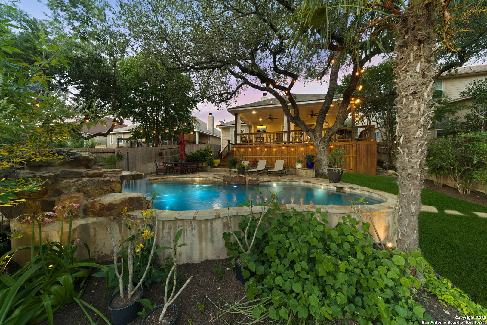 Welcome Home and discover this stunning 4 bdrm almost 3500sq ft beauty located in a prestigious gated community within the highly desirable Piper High School. This beautiful residence offers the perfect blend of luxury, privacy and outdoor living. Inside you will find elegant hardwood floors throughout the spacious downstairs living areas, including a large primary suite conveniently located on the first floor. This primary retreat is a true sanctuary featuring a relaxing master bath with separate shower and large tub- ideal for relaxing after a long day. Upstairs you will find 3 generous sized bedrooms with a gameroom/media area perfect for entertaining friends. This home's open, flexible and airy layout is the ideal blend of versalitily and space complete with surround sound speakers thoughout. Step outside to Your Ultimate retreat, where a large covered patio provides the best of relaxation and entertaining overlooking the sparkling inground Keith Zars Pool and surrounded by flagstone decking and mature trees. Your backyard is a true highlight, featuring lush landscaping, a serene waterfall with charming grotto creating a resort like atmosphere. This amazing space backs up to a beautiful view of the greenspace behind it. Wonderful addition to a home giving you added privacy and tranquility. This home offers the perfect blend of entertaining and relaxation. Ultimate place to host family and friends for gatherings or kick back and relax in your own personal paradise. The best of both worlds in one place. Make this your next home...Come and enjoy everything this home has to offer!!! Great neighborhood ammenties: tennis, pickleball, volleyball court, swimming pool and more!!!