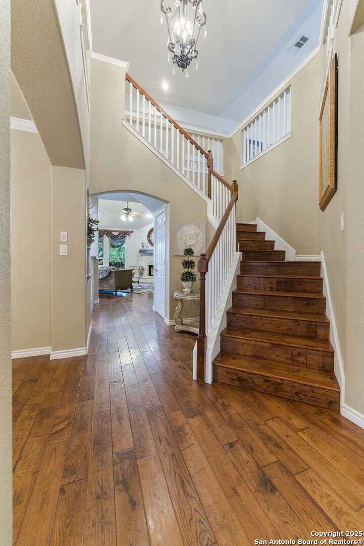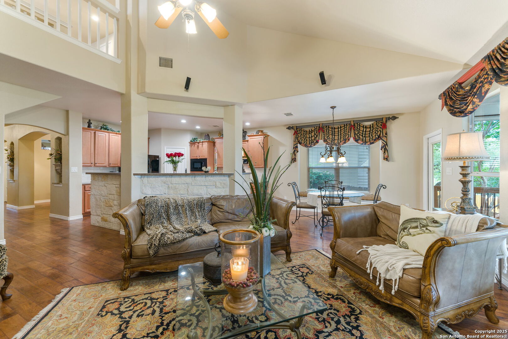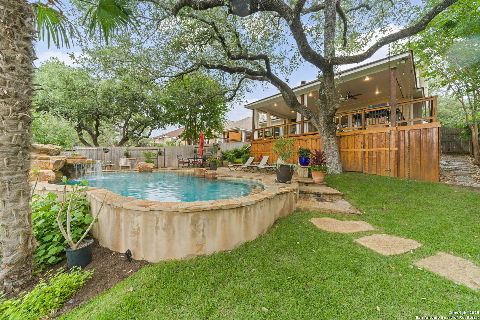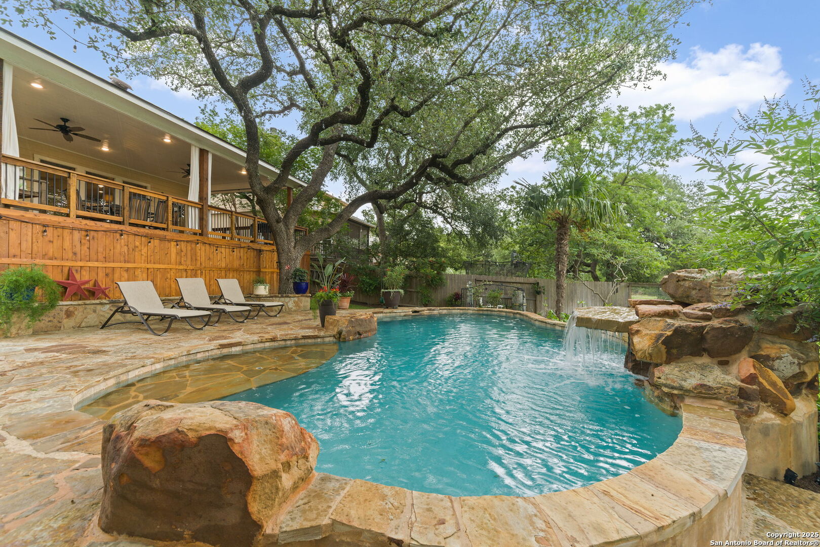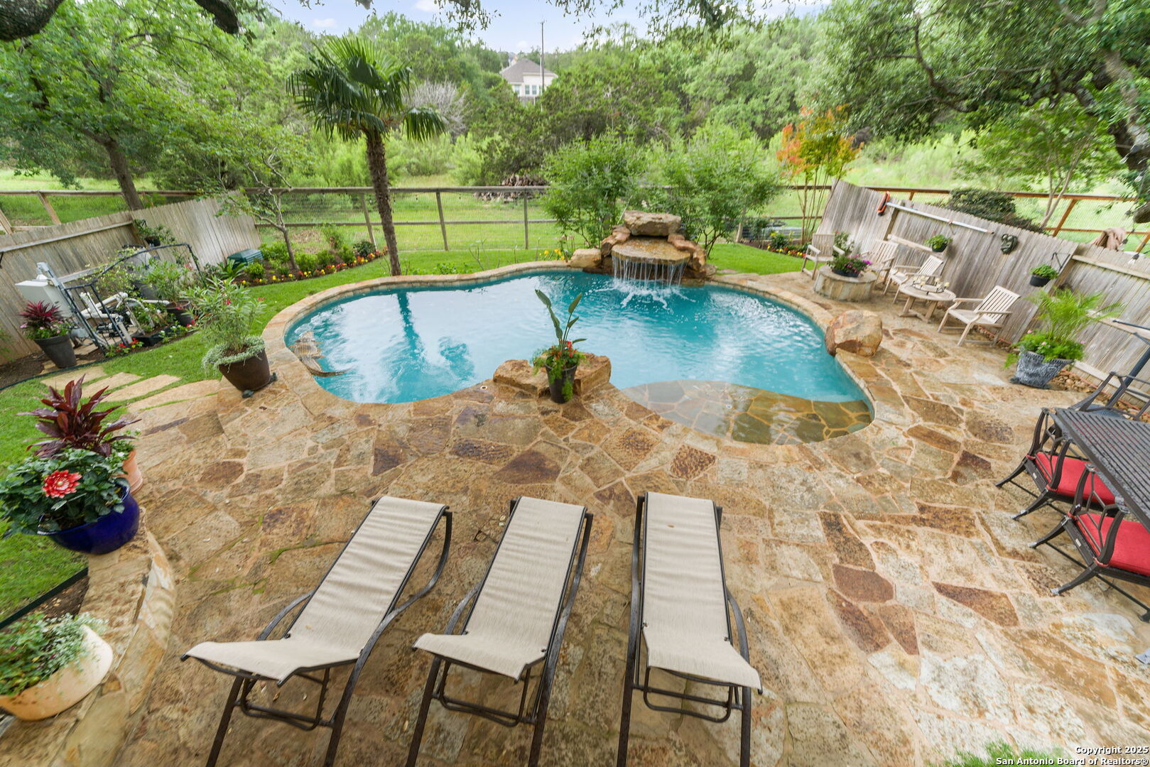 Welcome Home and discover this stunning 4 bdrm almost 3500sq ft beauty located in a prestigious gated community within the highly desirable Piper High School. This beautiful residence offers the perfect blend of luxury, privacy and outdoor living. Inside you will find elegant hardwood floors throughout the spacious downstairs living areas, including a large primary suite conveniently located on the first floor. This primary retreat is a true sanctuary featuring a relaxing master bath with separate shower and large tub- ideal for relaxing after a long day. Upstairs you will find 3 generous sized bedrooms with a gameroom/media area perfect for entertaining friends. This home's open, flexible and airy layout is the ideal blend of versalitily and space complete with surround sound speakers thoughout. Step outside to Your Ultimate retreat, where a large covered patio provides the best of relaxation and entertaining overlooking the sparkling inground Keith Zars Pool and surrounded by flagstone decking and mature trees. Your backyard is a true highlight, featuring lush landscaping, a serene waterfall with charming grotto creating a resort like atmosphere. This amazing space backs up to a beautiful view of the greenspace behind it. Wonderful addition to a home giving you added privacy and tranquility. This home offers the perfect blend of entertaining and relaxation. Ultimate place to host family and friends for gatherings or kick back and relax in your own personal paradise. The best of both worlds in one place. Make this your next home...Come and enjoy everything this home has to offer!!! Great neighborhood ammenties: tennis, pickleball, volleyball court, swimming pool and more!!!