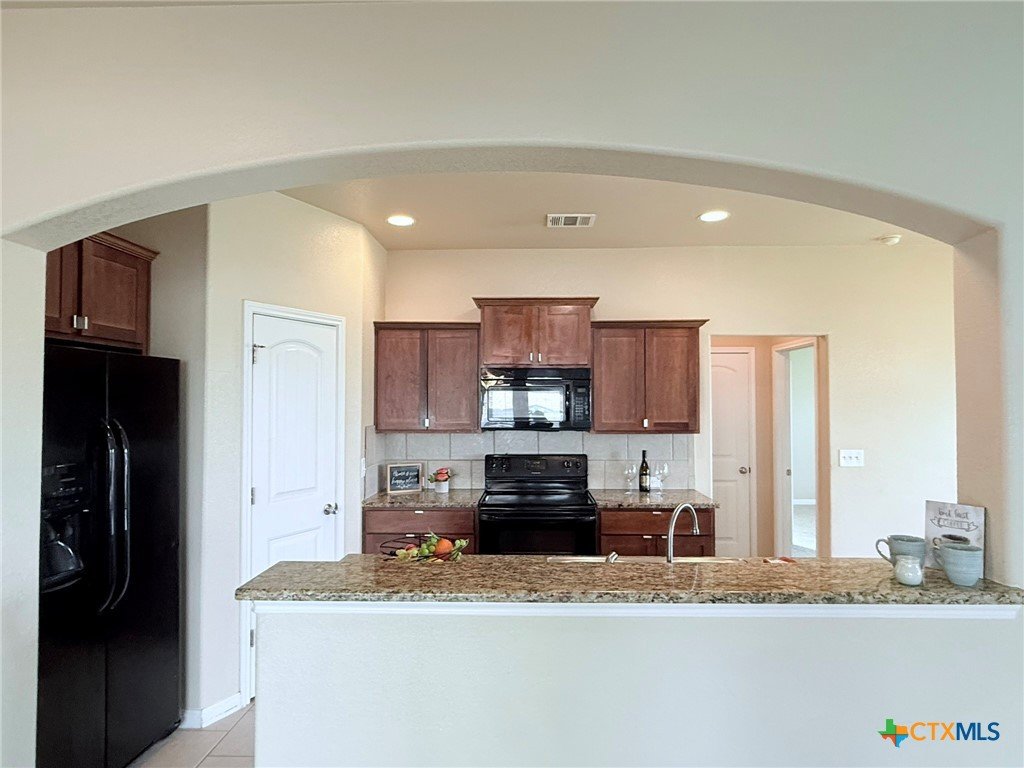 As you enter, you will notice an arched entryway leading to a formal dining area and the wide open living room with a wood-burning fireplace. The kitchen features granite countertops, all electric appliances, a breakfast bar, and a pantry. There is an additional eat-in dining area next to the kitchen. All of the bedrooms are spacious, with the primary bedroom on the other side of the house, featuring high ceilings, and a large walk-in closet. The primary bath has a large garden tub, a stand-alone shower, and dual vanity. A privacy fence surrounds the backyard where there is a covered patio, providing a space to relax on a nice Texas day. Owner has put a lot of love into this home. Newer roof, and some new windows and stove. This home is ready for you.