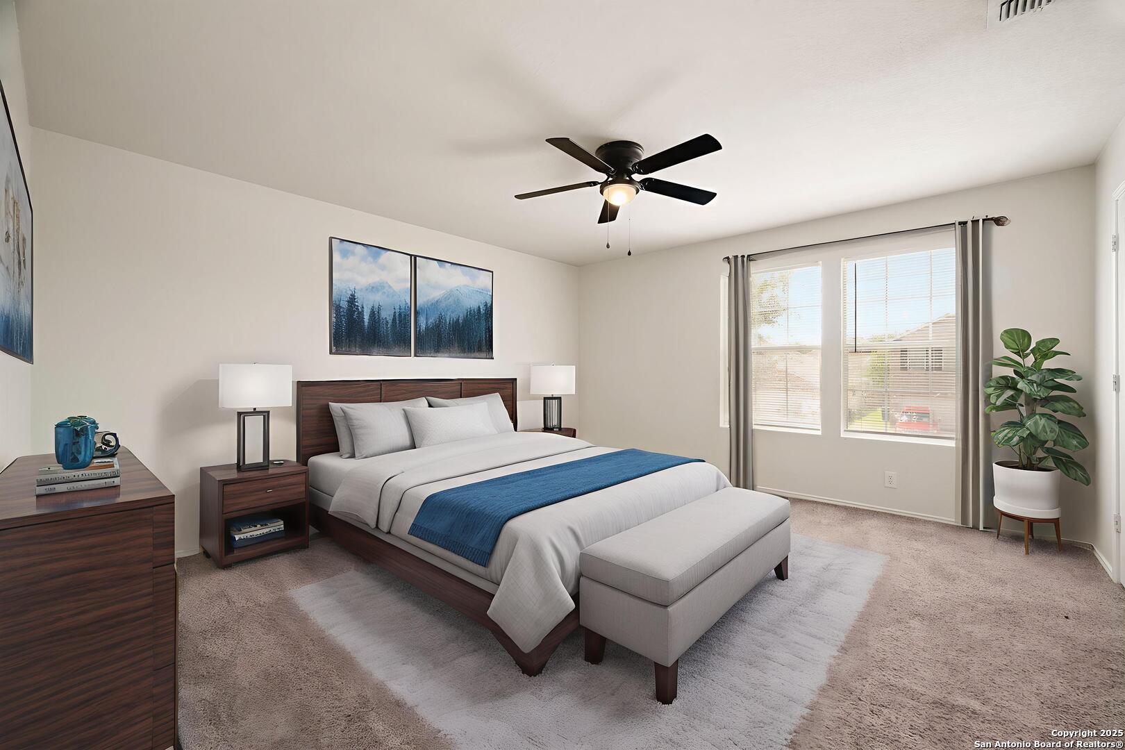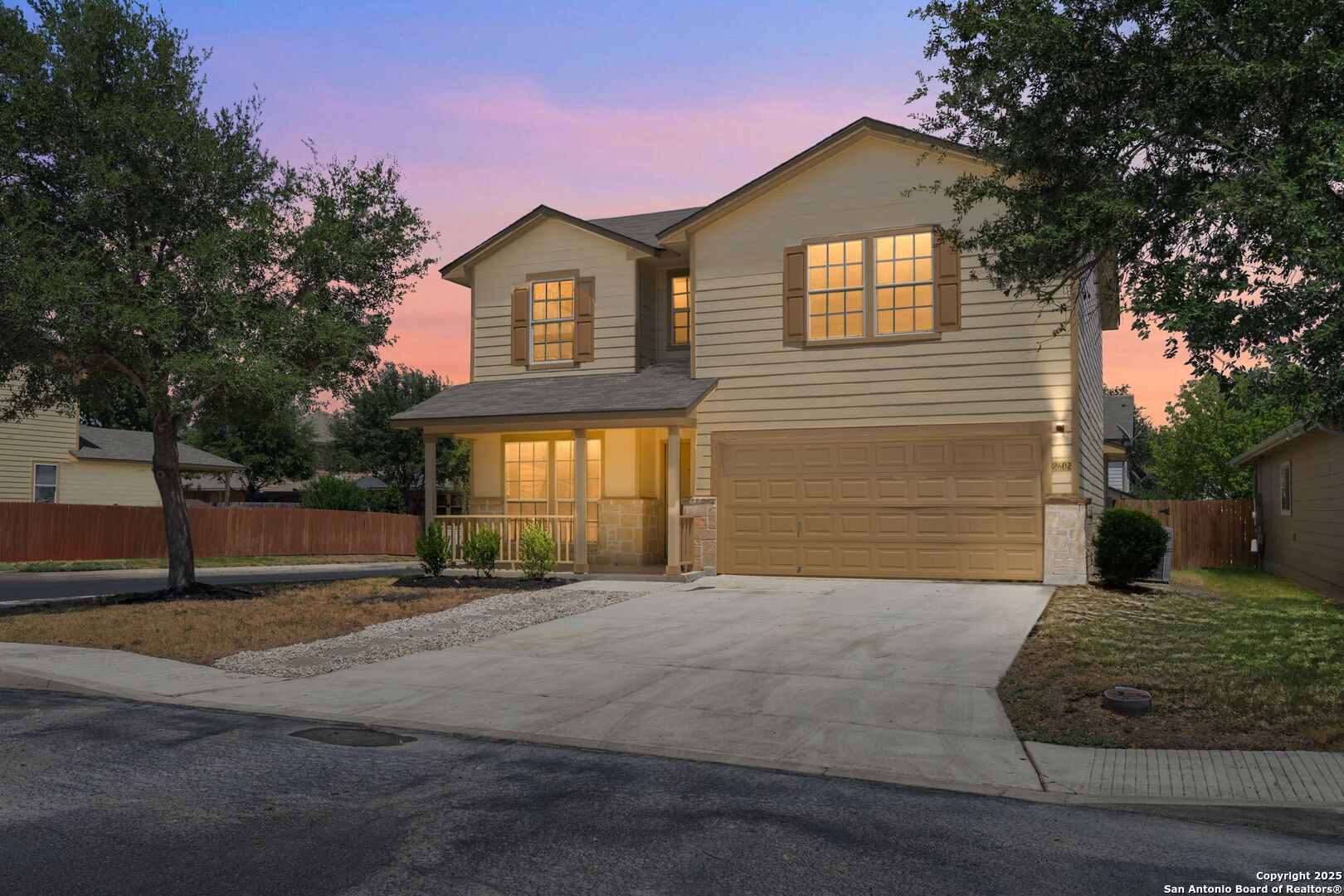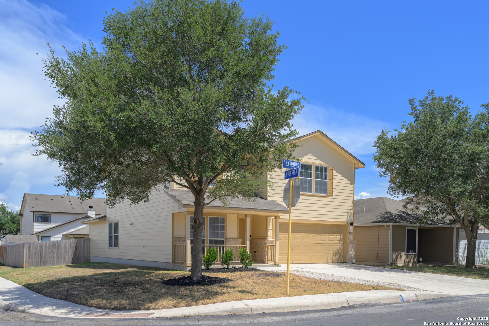 Welcome to this charming two-story corner lot home, a true gem with stunning curb appeal! Step inside to discover this spacious four bedroom home, including a master suite conveniently located on the main floor. The main floor also offers a cozy fireplace in the living room and a separate study, perfect for a home office. The upstairs features three large secondary bedrooms (all have ceiling fans) and a large game room, perfect for a second living area or a fun kids' retreat. The heart of the home features a beautifully updated kitchen, complete with gleaming granite countertops, new stainless steel appliances, a refrigerator and gorgeous cabinetry adorned with decorative hardware. This home has been recently renovated with all new paint, new carpet, new baseboards, new ceiling fans, new fixtures in kitchen and hardware on all doors. The bathrooms have also been recently upgraded, showcasing new flooring, lighting and granite countertops for added luxury. Enjoy the expansive backyard, ideal for outdoor gatherings, gardening, or simply unwinding. This lovely home is situated in a desirable community with amenities such as a pool and playground and is conveniently located near Loop 1604, Lackland Airforce Base, offering quick access to shopping, dining, and excellent school districts. This home is located in USDA eligible district so ZERO money down is available!! Don't miss the chance to make this beautifully updated home your own!
