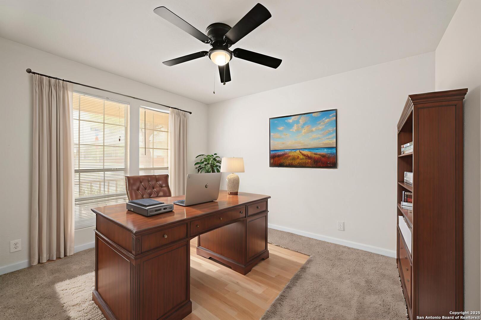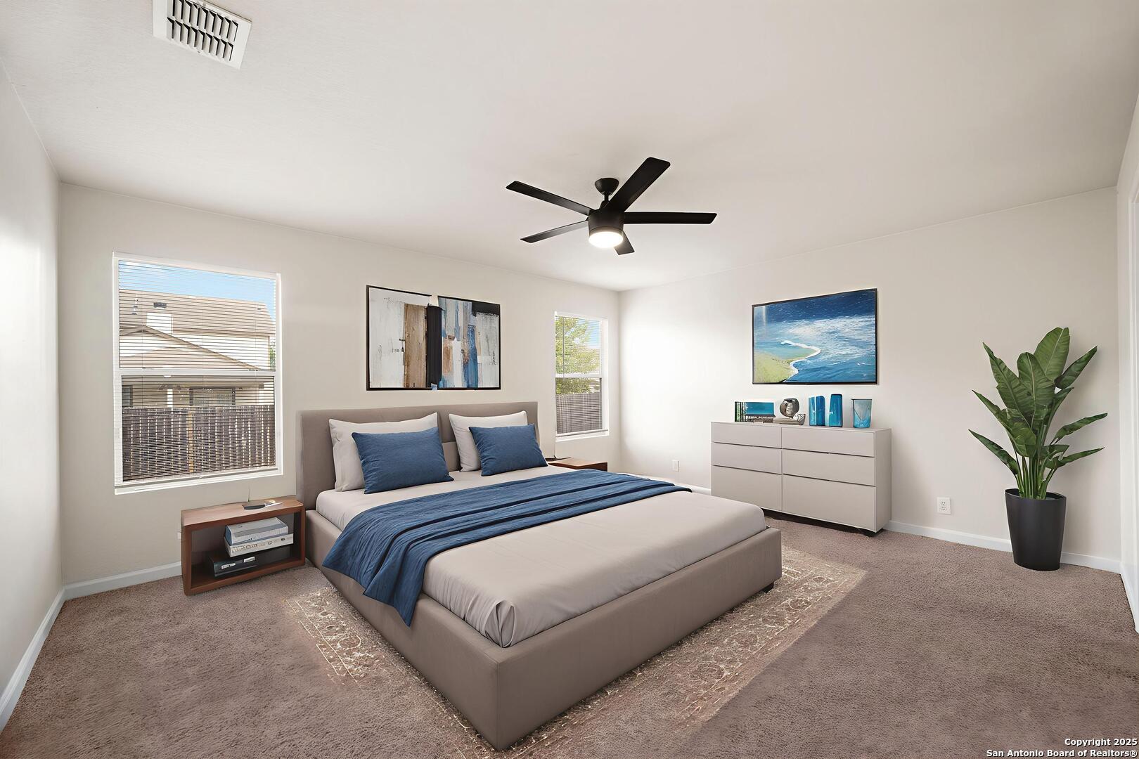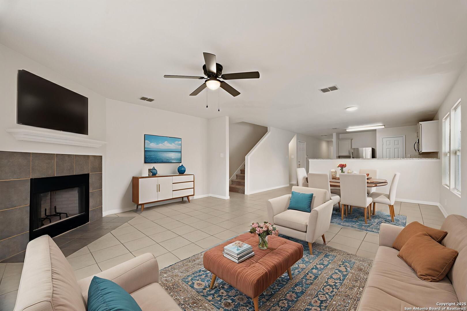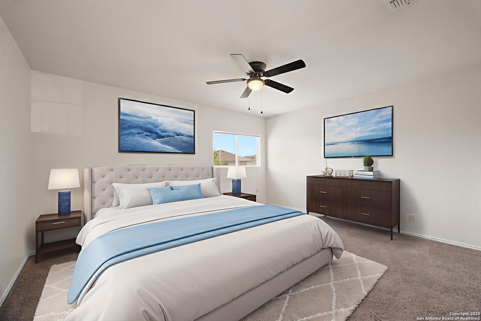 Welcome to this charming two-story corner lot home, a true gem with stunning curb appeal! Step inside to discover this spacious four bedroom home, including a master suite conveniently located on the main floor. The main floor also offers a cozy fireplace in the living room and a separate study, perfect for a home office. The upstairs features three large secondary bedrooms (all have ceiling fans) and a large game room, perfect for a second living area or a fun kids' retreat. The heart of the home features a beautifully updated kitchen, complete with gleaming granite countertops, new stainless steel appliances, a refrigerator and gorgeous cabinetry adorned with decorative hardware. This home has been recently renovated with all new paint, new carpet, new baseboards, new ceiling fans, new fixtures in kitchen and hardware on all doors. The bathrooms have also been recently upgraded, showcasing new flooring, lighting and granite countertops for added luxury. Enjoy the expansive backyard, ideal for outdoor gatherings, gardening, or simply unwinding. This lovely home is situated in a desirable community with amenities such as a pool and playground and is conveniently located near Loop 1604, Lackland Airforce Base, offering quick access to shopping, dining, and excellent school districts. This home is located in USDA eligible district so ZERO money down is available!! Don't miss the chance to make this beautifully updated home your own!