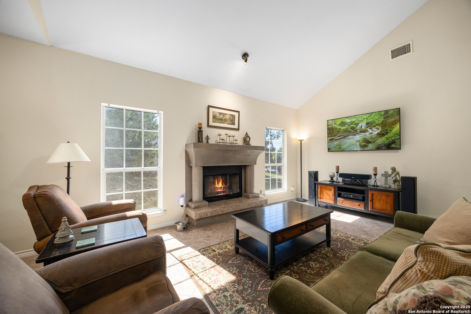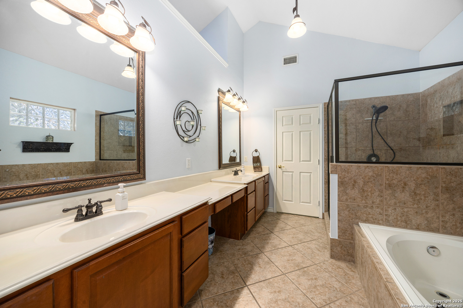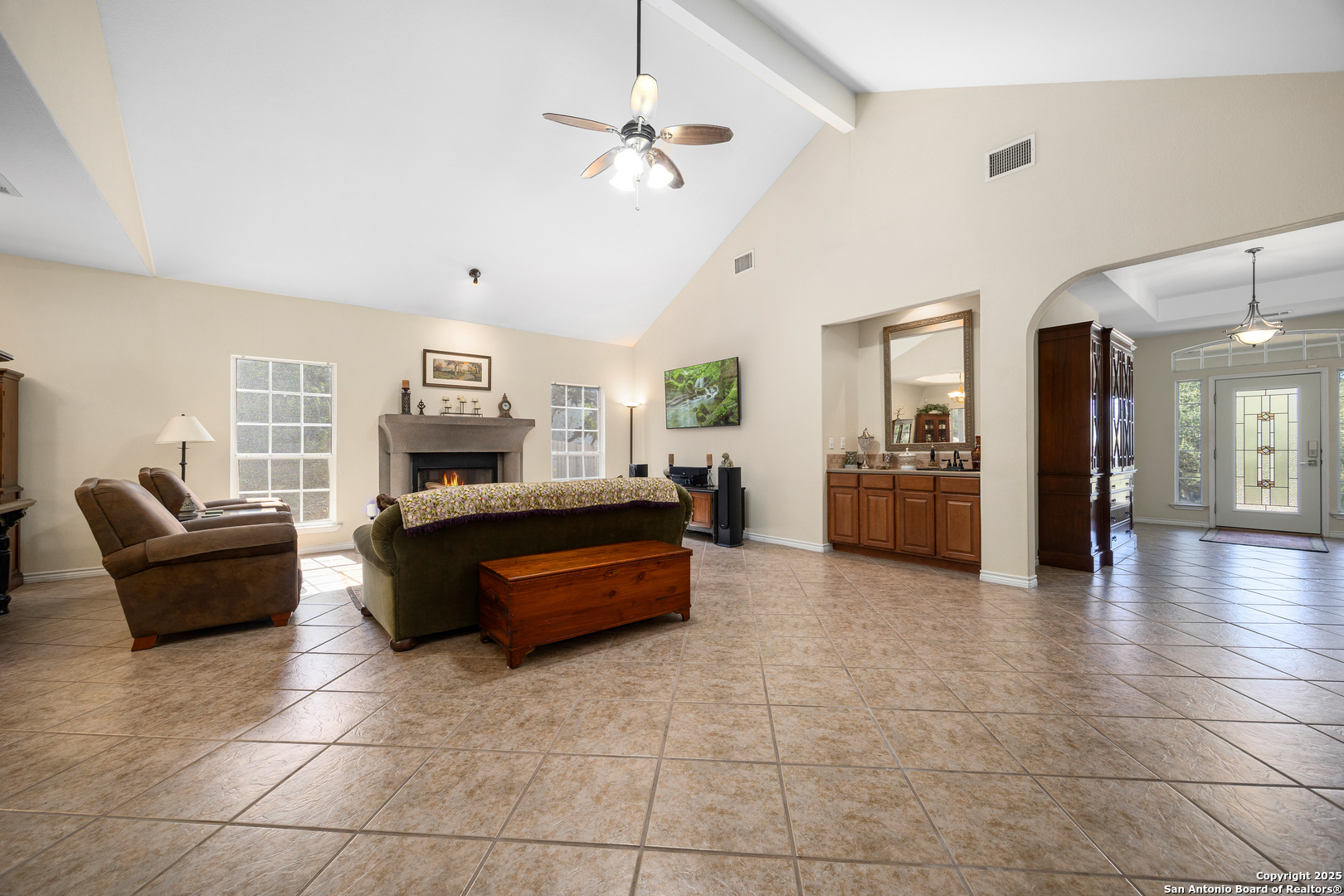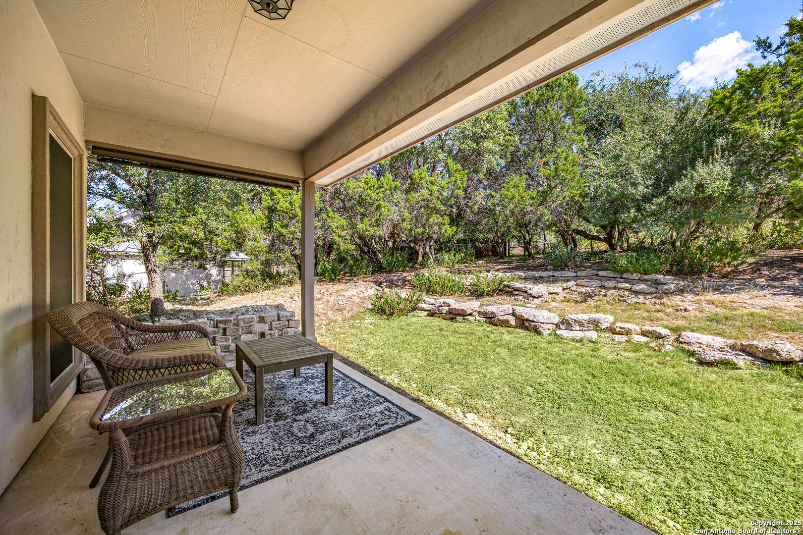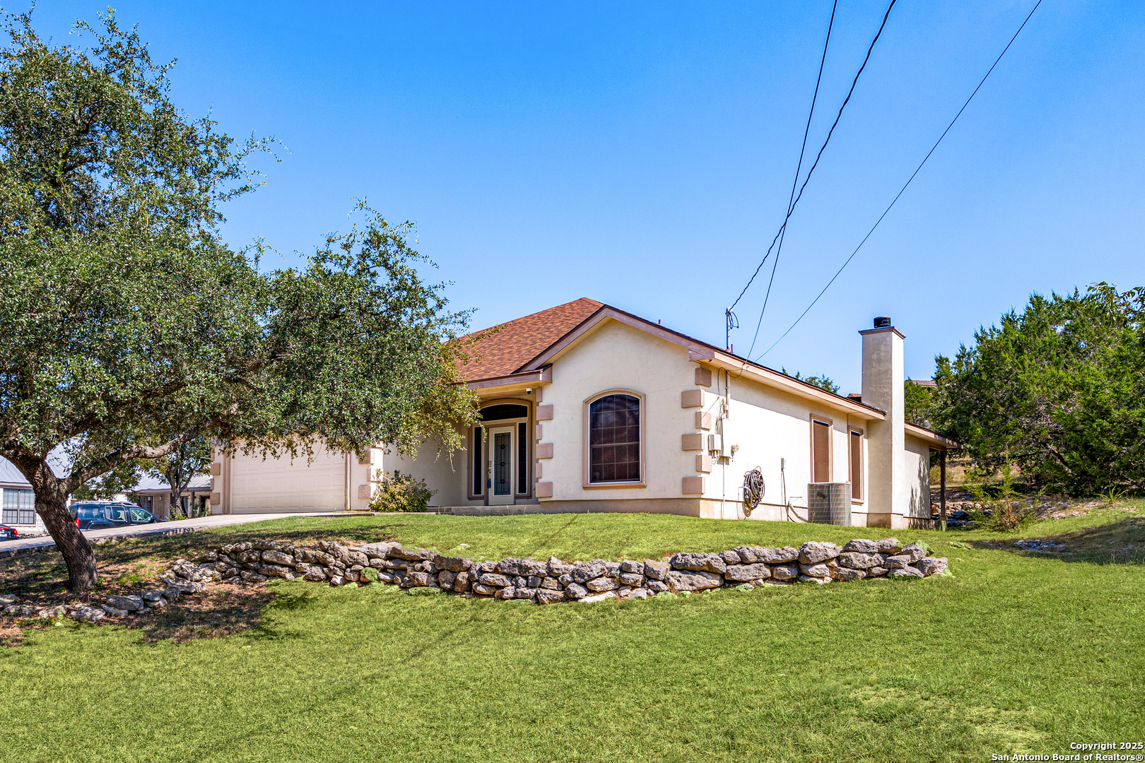 Lovely one-story home located in the serene community of Timberwood Park, surrounded by mature trees an abundance of wildlife. This custom home sits on .46 acre and features high ceilings, a spacious open floor plan, and ceramic tile flooring throughout the main living areas, kitchen, and bathrooms. The large kitchen offers plenty of space for cooking and gathering, with custom maple cabinets, Corian countertops, and an open layout that connects to the dining and living areas. The primary suite includes a garden tub, separate shower, double vanity, and walk-in closets for added convenience. Step outside to enjoy the spacious backyard with a covered patio and plenty of shade provided by beautiful trees. Recent updates include a roof replaced in October 2023, AC core and blower replaced in May 2018, solar screens added in May 2025, new flooring in the primary suite and carpet replaced in the bedrooms in May 2024, plus septic pumped and inspected in September 2025. This home is just a short drive to schools, parks, TX-281, and more. Schedule your personal tour today!