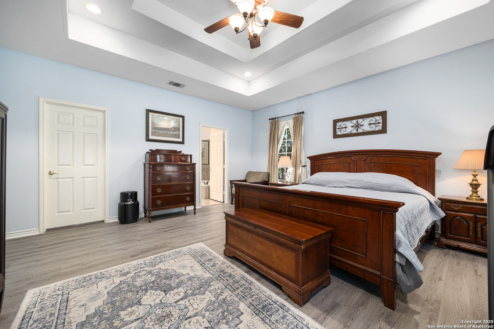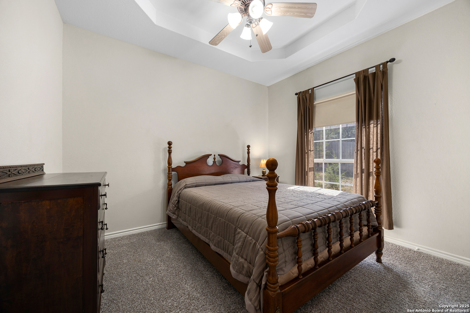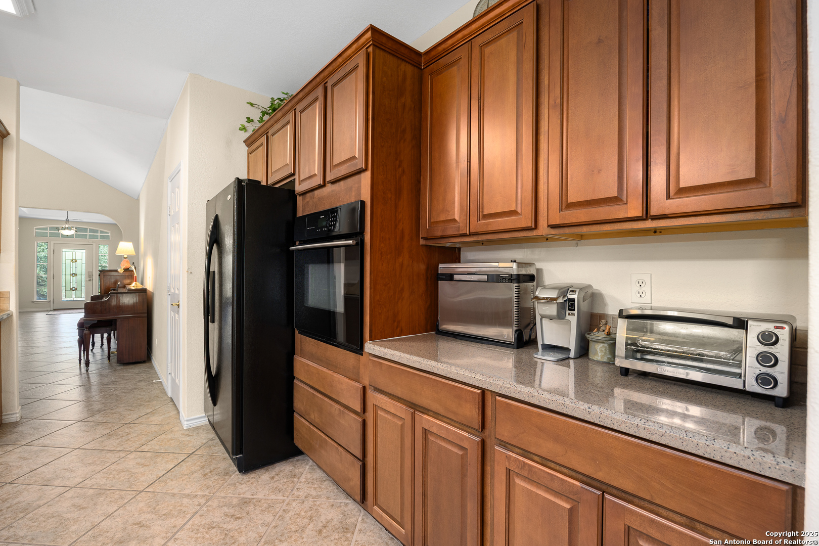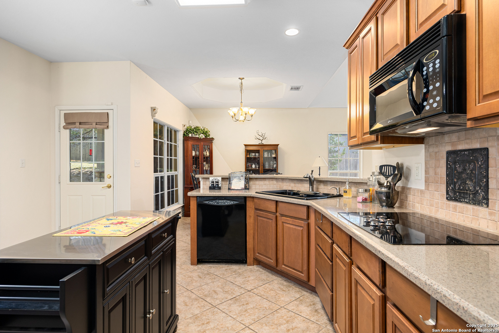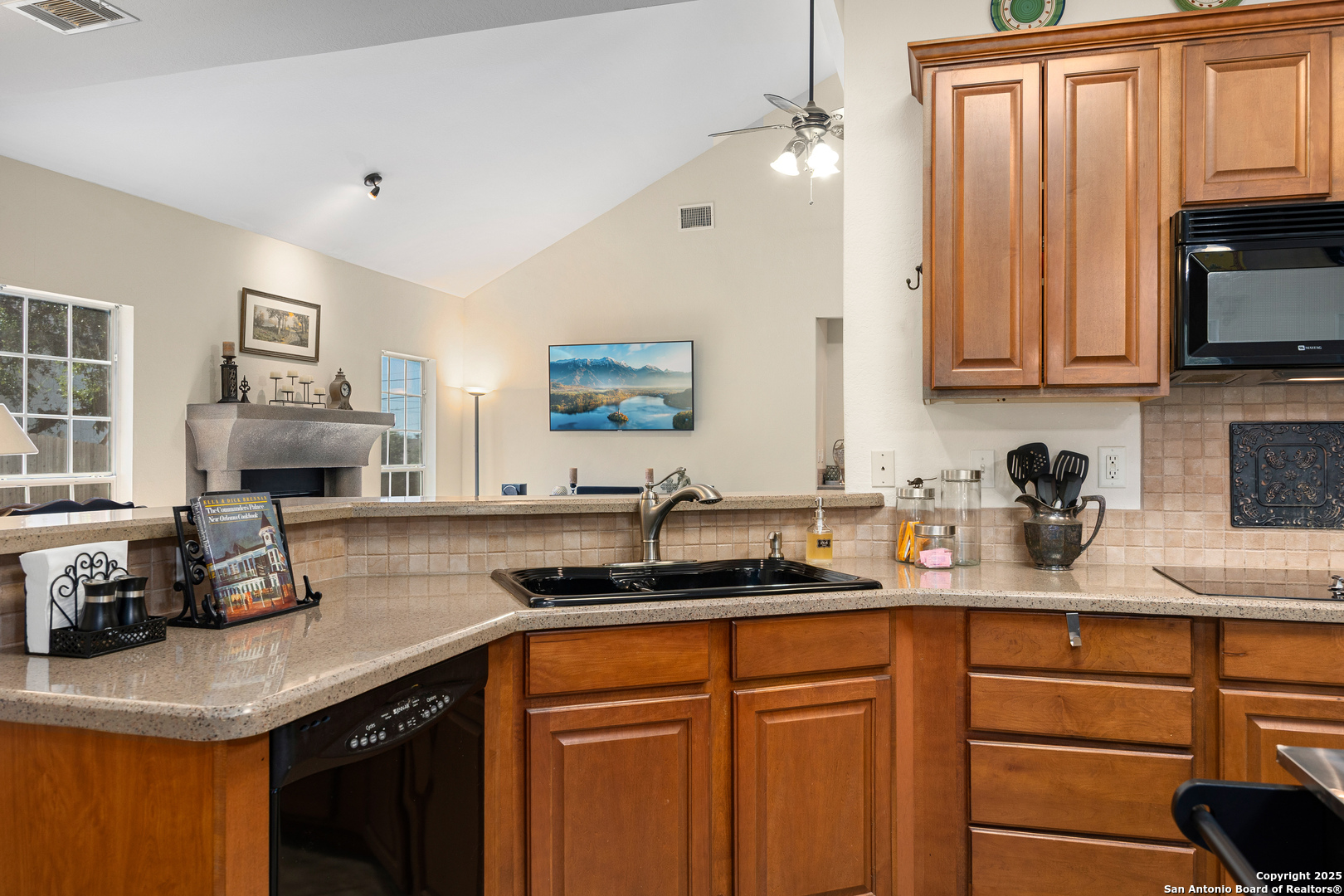 Lovely one-story home located in the serene community of Timberwood Park, surrounded by mature trees an abundance of wildlife. This custom home sits on .46 acre and features high ceilings, a spacious open floor plan, and ceramic tile flooring throughout the main living areas, kitchen, and bathrooms. The large kitchen offers plenty of space for cooking and gathering, with custom maple cabinets, Corian countertops, and an open layout that connects to the dining and living areas. The primary suite includes a garden tub, separate shower, double vanity, and walk-in closets for added convenience. Step outside to enjoy the spacious backyard with a covered patio and plenty of shade provided by beautiful trees. Recent updates include a roof replaced in October 2023, AC core and blower replaced in May 2018, solar screens added in May 2025, new flooring in the primary suite and carpet replaced in the bedrooms in May 2024, plus septic pumped and inspected in September 2025. This home is just a short drive to schools, parks, TX-281, and more. Schedule your personal tour today!