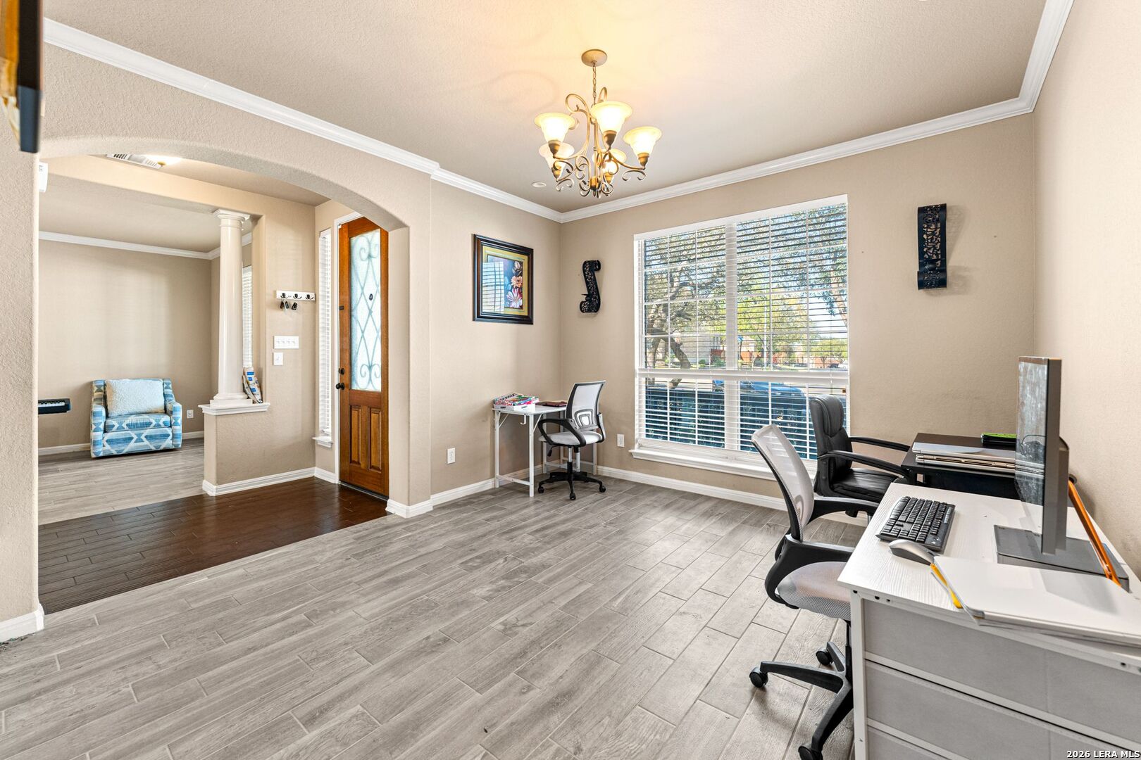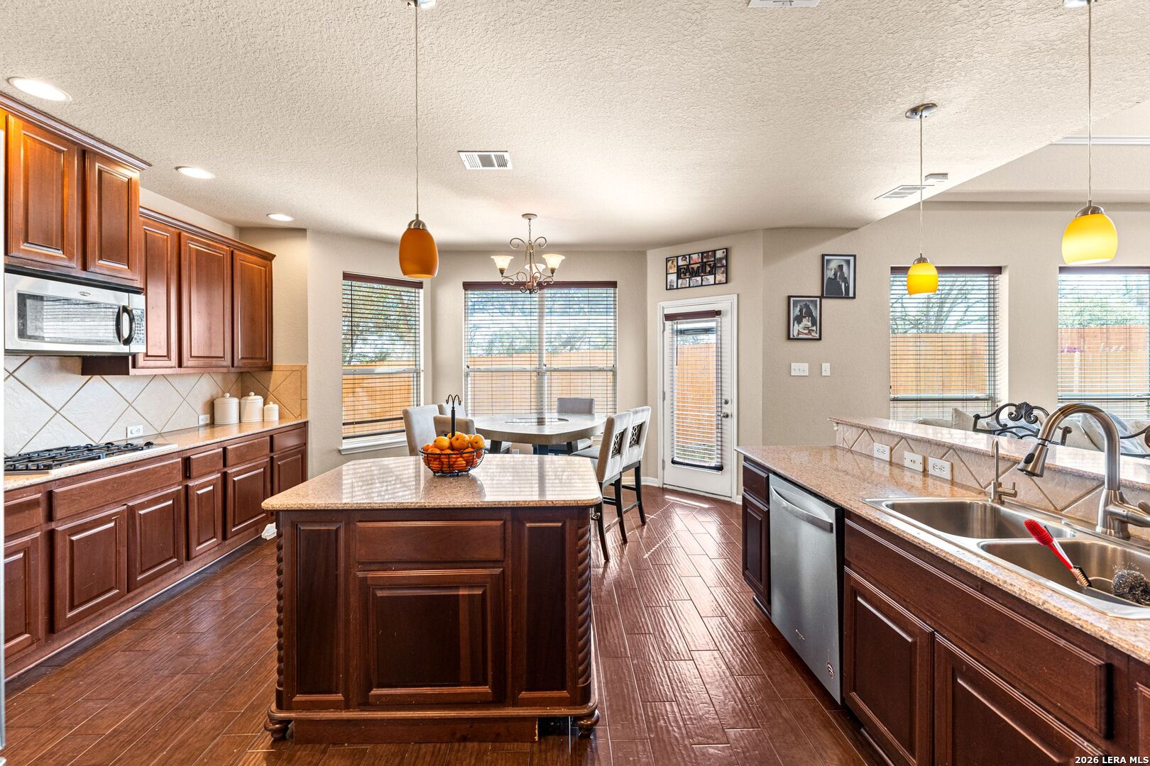 Welcome to this beautifully updated two-story home offering 4 spacious bedrooms, 3 full bathrooms, and over 3,300 square feet of thoughtfully designed living space. From the moment you enter, you'll notice the abundance of natural light, high ceilings, and elegant updated wood flooring that create a warm and inviting atmosphere.This home features three versatile living areas, perfect for entertaining or relaxing, along with a dedicated study ideal for working from home. The island kitchen is a true centerpiece, complete with a breakfast bar, ample counter space, and seamless flow into the main living areas.The primary suite is generously sized and includes an updated bathroom designed for comfort and style. A secondary bedroom and full bath are conveniently located downstairs, offering flexibility for guests or multi-generational living.Upstairs, you'll find a spacious game room that opens to a covered balcony-an ideal spot to unwind and enjoy the outdoors. A cozy fireplace adds charm to the main living space, making this home perfect year-round.Thoughtfully designed and priced to sell, this is truly a must-see property that combines space, functionality, and modern updates.