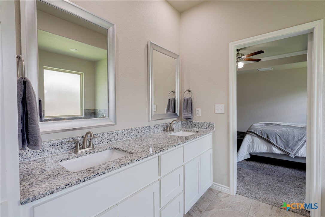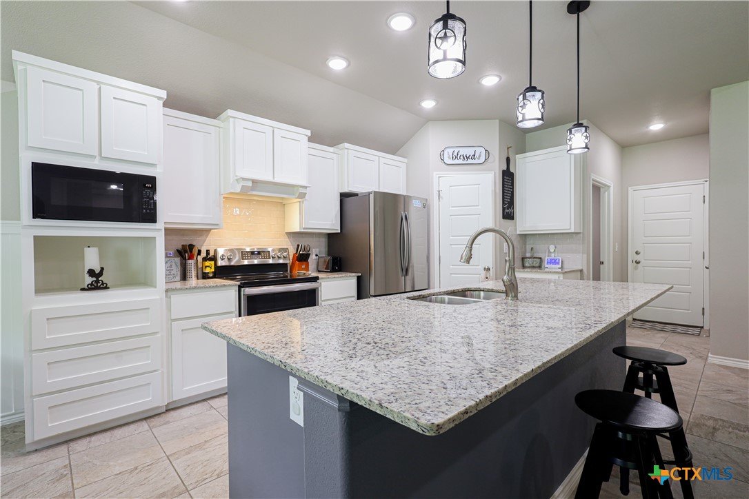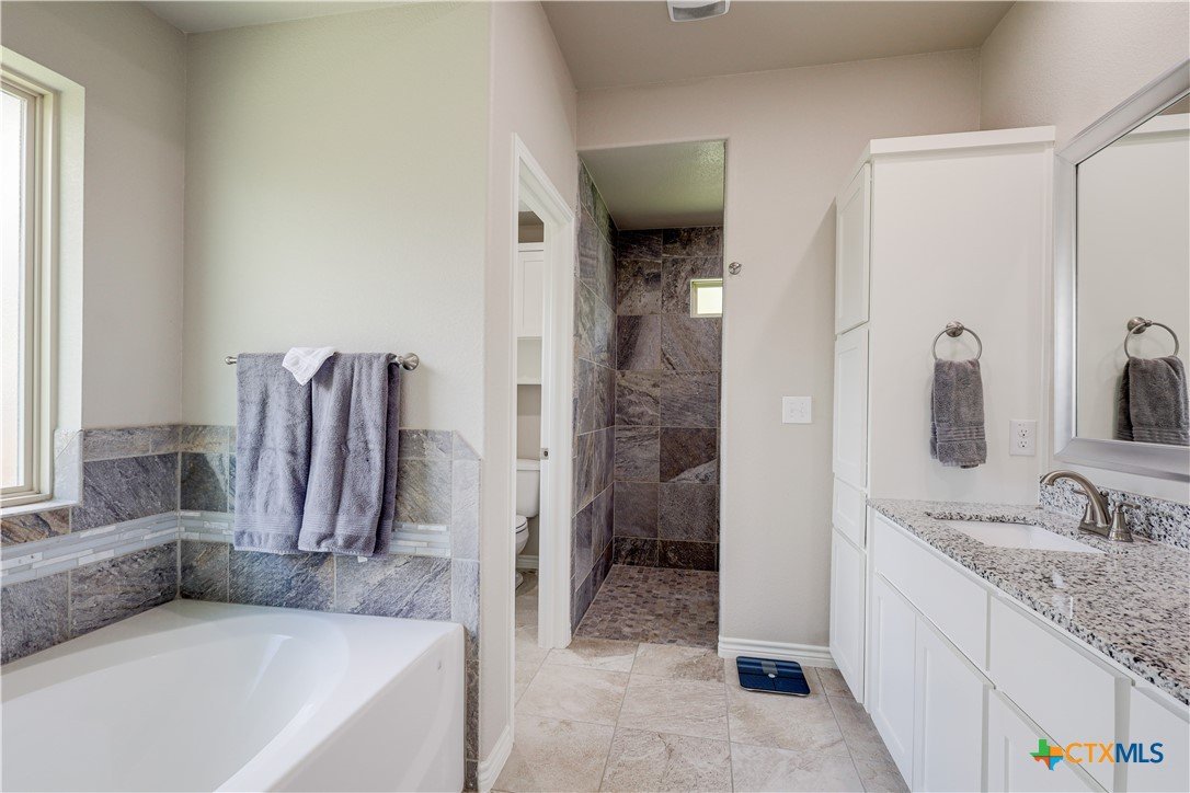 Prepare to fall in love with this move-in ready gem located in the highly sought-after Bella Terra subdivision. This stunning home offers the perfect combination of style, comfort, and convenience, making it a true standout in the market. Here’s why you’ll want to make this your forever home: Prime Location: Situated just minutes from major shopping centers, expressways, and the VA hospital, this home is ideal for those seeking convenience without sacrificing peace and tranquility. Exterior Features That Impress: Nestled on a semi-cul-de-sac street with no rear neighbors, you’ll enjoy unparalleled privacy and tranquility. The eye-catching stone veneer siding and recently replaced composite shingle roof give this home incredible curb appeal and ensure years of durability and low maintenance. A Kitchen That Inspires: Cooking and entertaining are a breeze in the beautifully updated kitchen, complete with sleek granite countertops, stylish fixtures, and ample storage. Whether it’s family meals or hosting friends, this kitchen is designed to handle it all with flair. Luxurious Interior Details: Custom tile flooring throughout the main living areas gives the home a clean, modern feel, while plush carpeting in the bedrooms provides ultimate comfort. The spacious open floor plan is perfect for entertaining, with abundant natural light highlighting every room. Master Suite Retreat: Your private oasis awaits in the luxurious master bath, featuring. A stunning custom walk-in shower that’s both stylish and functional. A large garden tub perfect for unwinding after a long day. Dual vanities for convenience and a touch of elegance. Peaceful Outdoor Living: Step into your backyard and enjoy the serenity of having no neighbors directly behind you. Whether you dream of creating a garden, installing a play area, or just soaking in the Texas sunsets, this space offers endless possibilities.