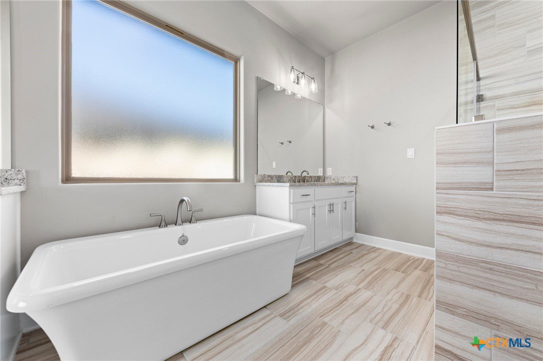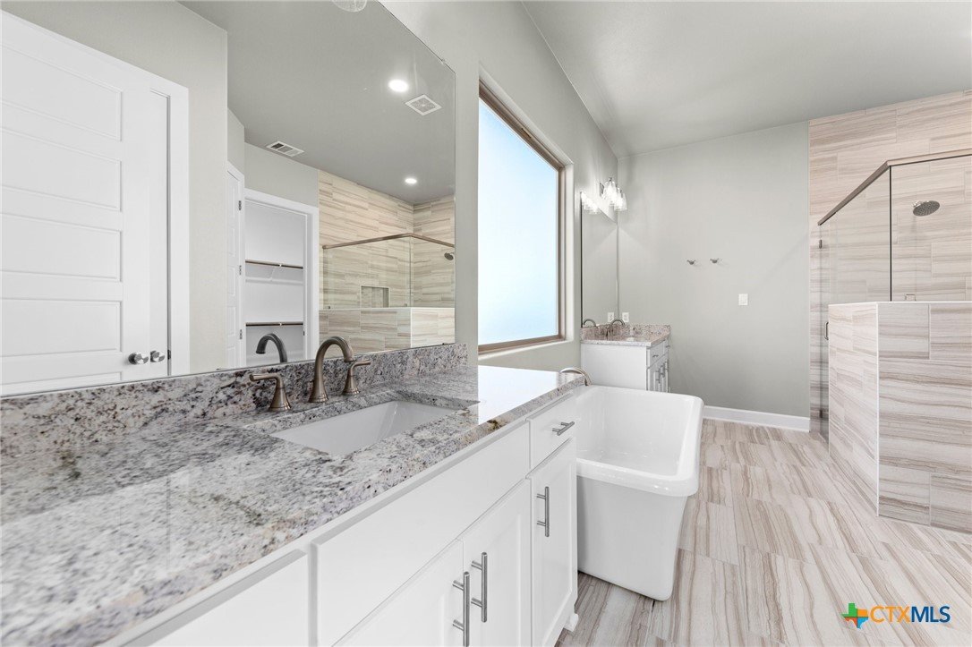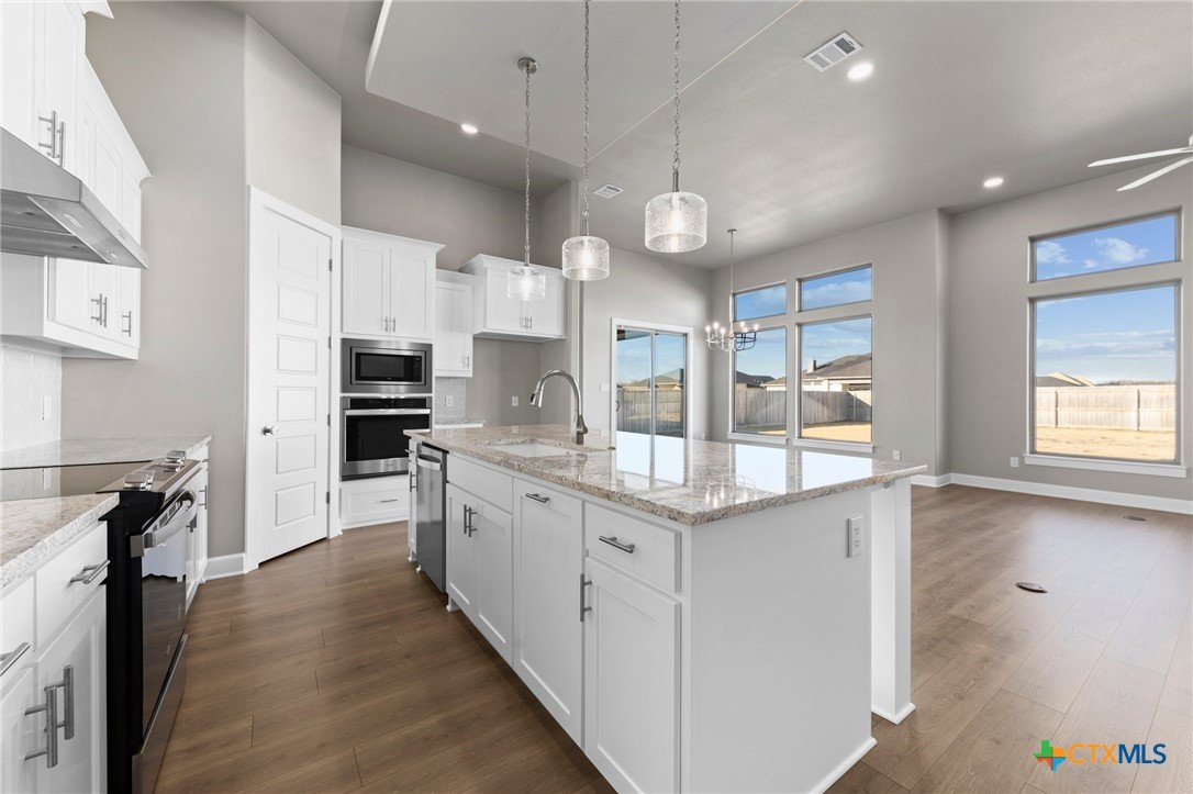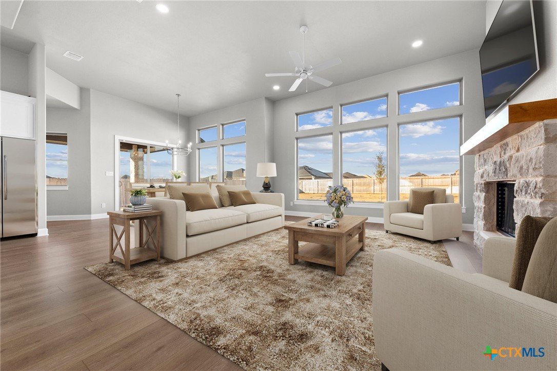 Key Features: Spray foam insulation, 12' ceilings, 8'doors, 8' tall insulated foam core garage doors, custom cabinets, high-efficiency vinyl windows, irrigation systems in front and back yard and wireless security package with touchscreen. HOA has a required $1,000 one-time membership fee. HOA dues are $550 annually. Visit our model home located at 2603 Legacy Ranch, Temple.