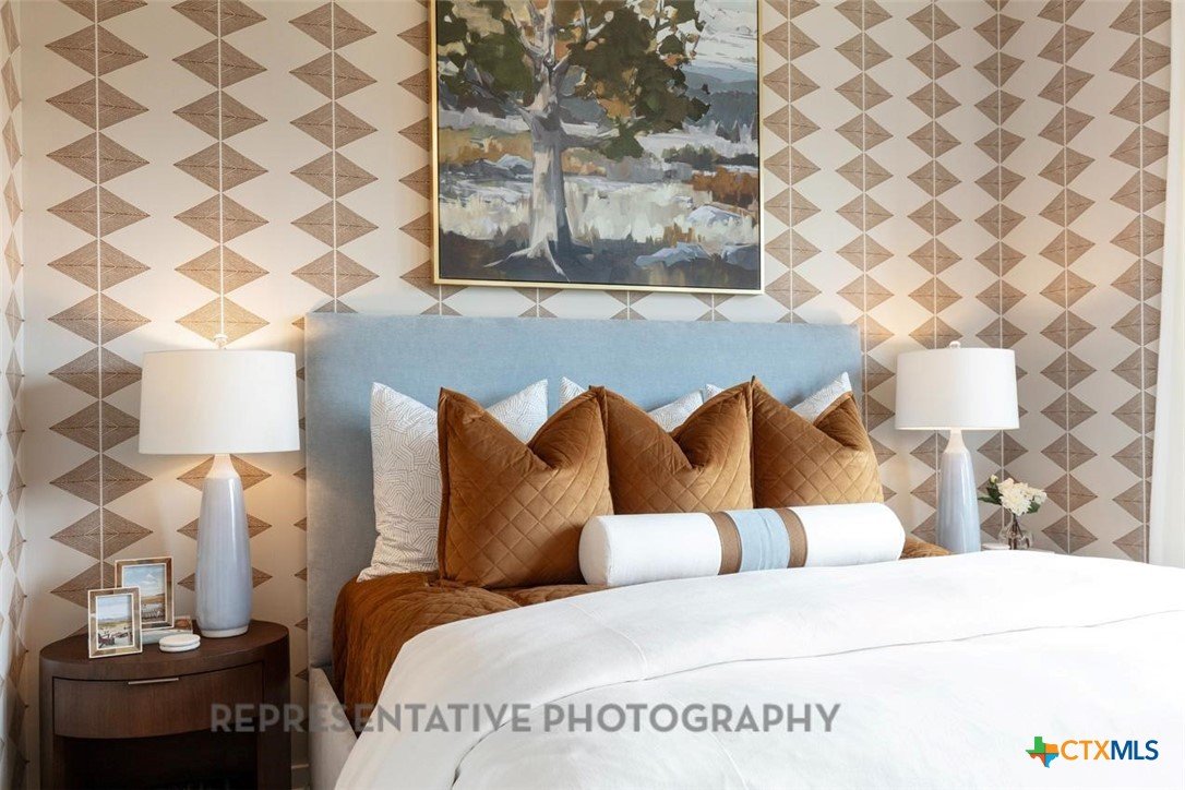 The Mclaren is a well-appointed two-story home offering approximately 2,7003 square feet of comfortable and functional living space. Just off the main foyer to the right, you'll find a private study and a conveniently located laundry room near garage entry. Near the foyer is a secondary bedroom with a full bathroom nearby, making it accessible for guests. The heart of the home features an open-concept layout with a spacious kitchen, dining area, and living room, all filled with natural light and views of the backyard. Tucked at the back of the home, the primary suite offers a peaceful retreat with a luxurious bathroom and spacious walk-in closet. Upstairs, three additional bedrooms with two full bathrooms, open to a cozy loft space-- perfect for a study nook, media area, or casual lounge. This home features upgrades such as primary bay window extension, freestanding rectangular tub at master with separate shower and extended outdoor living area.