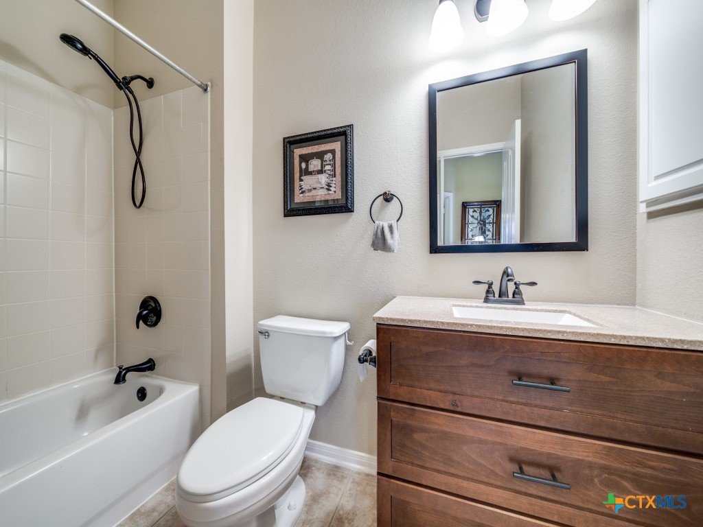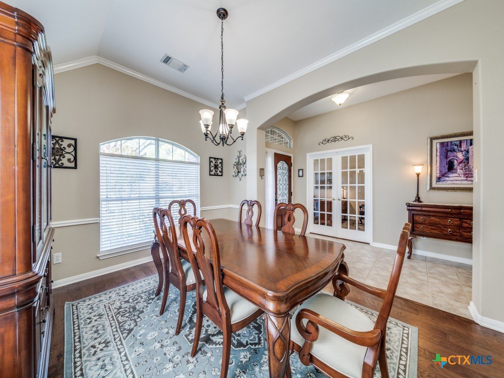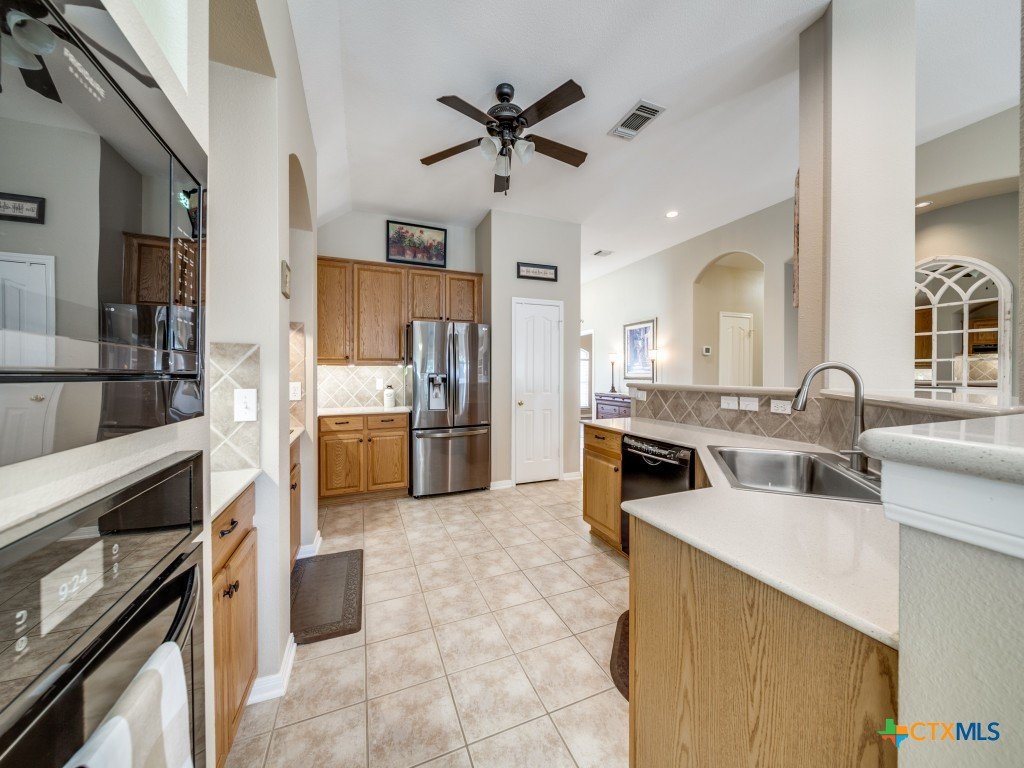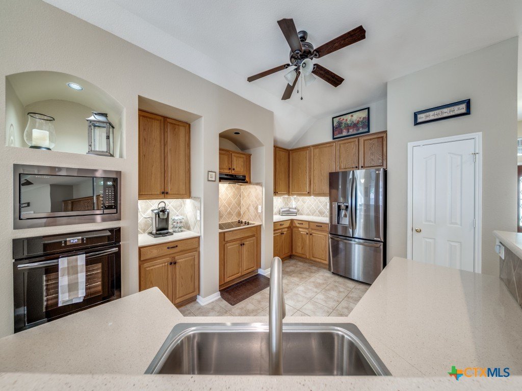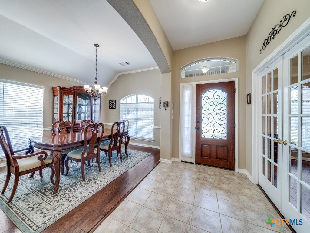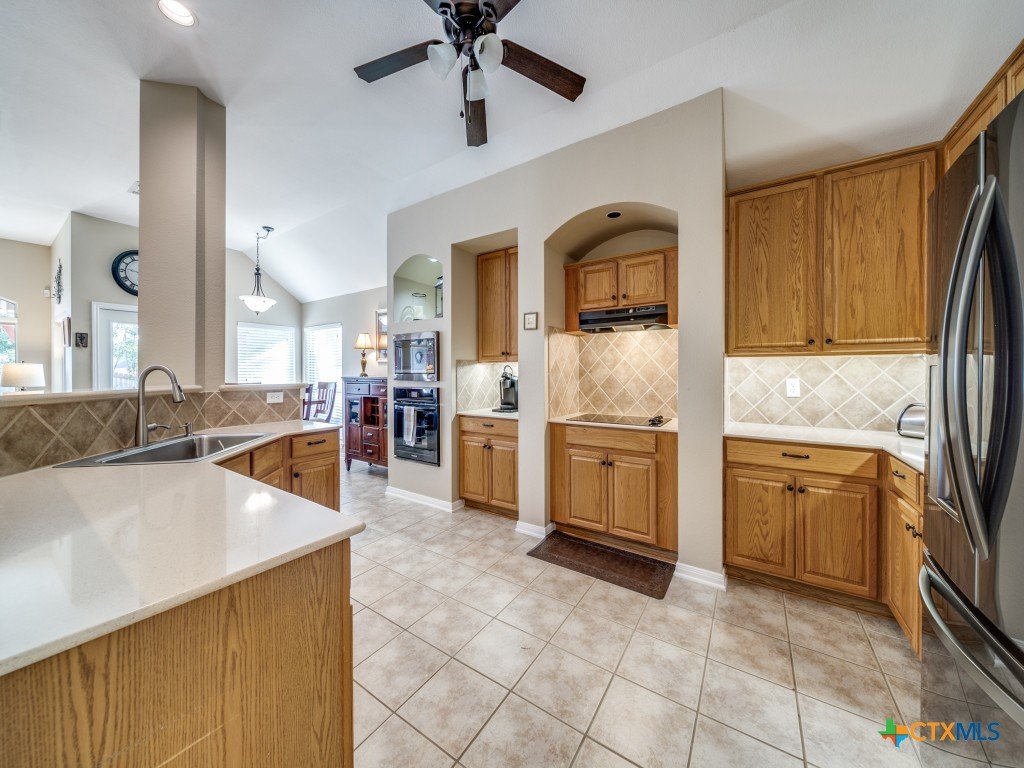 Here is your chance to live in the gated, well-established Champions Village neighborhood in New Braunfels, one of the most desirable cities in the country, for under $500,000, and have a pool. As you come through the front door, a hallway takes your eyes straight to the backyard with windows all along the back. Abundant natural light, open with tall ceilings, a very thoughtful floor plan for every day living and larger family gatherings. A generous formal dining space. An office with french doors that open into the main hallway and another door that opens into the side hallway that the secondary bedrooms, full bathroom, half bathroom, and utility room share. The kitchen is truly in the middle of everything with an updated Frigidaire oven and microwave with convection fan replaced in 2023. The star of the living room is the built in entertainment area with bookshelves and a wood burning fireplace in the center. The primary suite has its own dedicated space at the back of the home separate from the secondary bedrooms for extra privacy. Peaceful and bright with a perfect view of the pool from the wall of windows. The backyard is a true oasis. A gorgeous pool with two swim-up barstools, waterfall, and tanning ledge with bubbler fountain perfectly situated under the pergola. A Texas size patio with 2 levels, covered, and open. Dine al fresco with plenty of room to set up a grill, extra seating, a fire pit, whatever floats your boat. A 30-year roof was installed in 2019 and a Carrier 5-ton heat pump split system installed in 2015 along with an inside coil as well. Minutes from John Newcombe Tennis Ranch and Country Club, T Bar M Camp and Retreat Center, Dry Comal Creek Winery, HEB, restaurants, shopping, Landa Park. New Braunfels is home to Schlitterbahn, Wurstfest, holiday parades, tubing on the Comal and Guadalupe Rivers, a downtown that still has a small town charm to it and German influence, neighbor to Gruene Historic District.