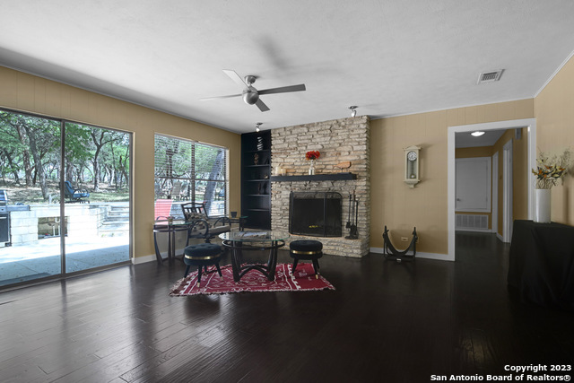 MOTIVATED SELLER!! A Central Texas oasis hidden in a quiet subdivision a mere 4 miles from IH35 and minutes from everything you need. 3.445 acres of mature oak and elm trees nestled in the native hill country overlooking the beautiful Purgatory Creek. The limestone flowerbeds, sidewalks, and large two level patio space provide the perfect place to admire the sunset over the 75-foot drop into Purgatory Creek. This spaciously open 3-bedroom 2-bath contemporary home has glorious amenities including granite countertops, a whirlpool tub, and hurricane strength glass restroom features. The bathrooms feature Vermont Slate tile with heated flooring and walk-in shower in master suite. The floor to ceiling windows in the living room provide spectacular Texas views and wildlife galore. BRING ALL OFFERS!