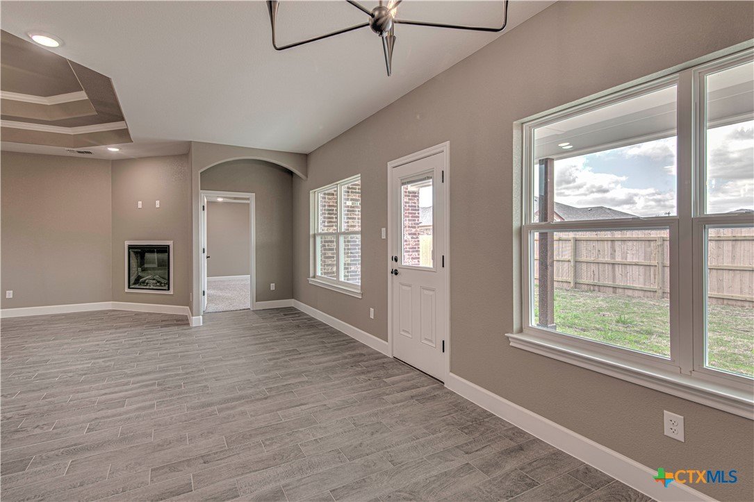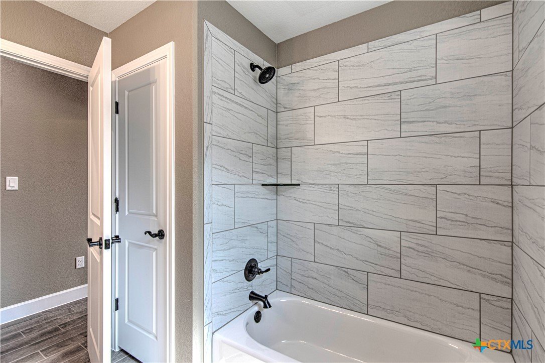 Remarkable Eagle Home new built beauty in Belton ISD, 4 bedroom 3 bath 3 car garage home. Entry has 2 large pop up tray ceilings. Kitchen has granite counter tops, custom cabinets, stainless steel appliances, counter height large island, wood look tile in common areas, with electric fire place. Kitchen opens into family room & family room looks out onto the covered patio. Master bath has separate free standing tub & walk- in shower, large walk-in closet, crown molding, split floor plan. Sod, privacy fence, & sprinkler system front & back.