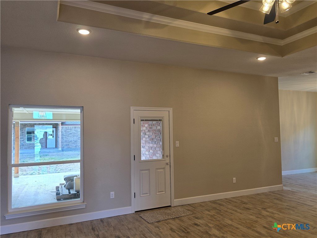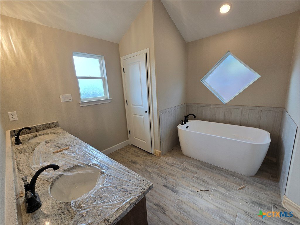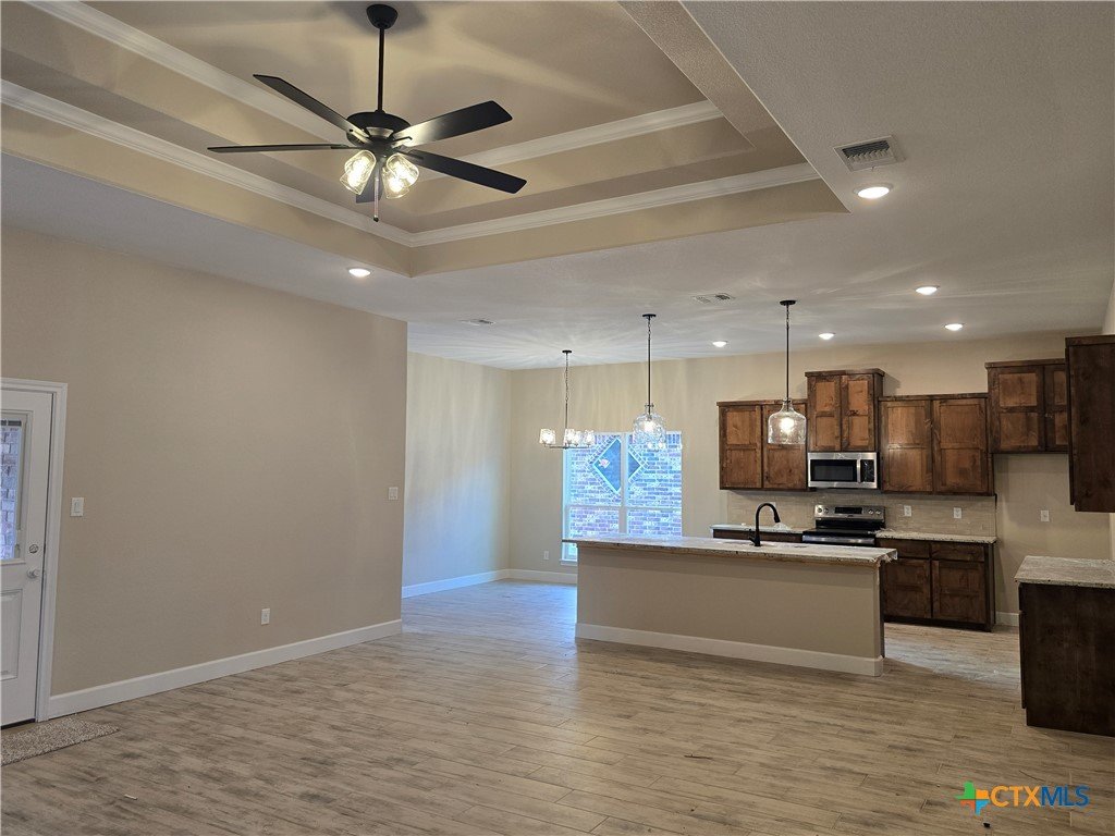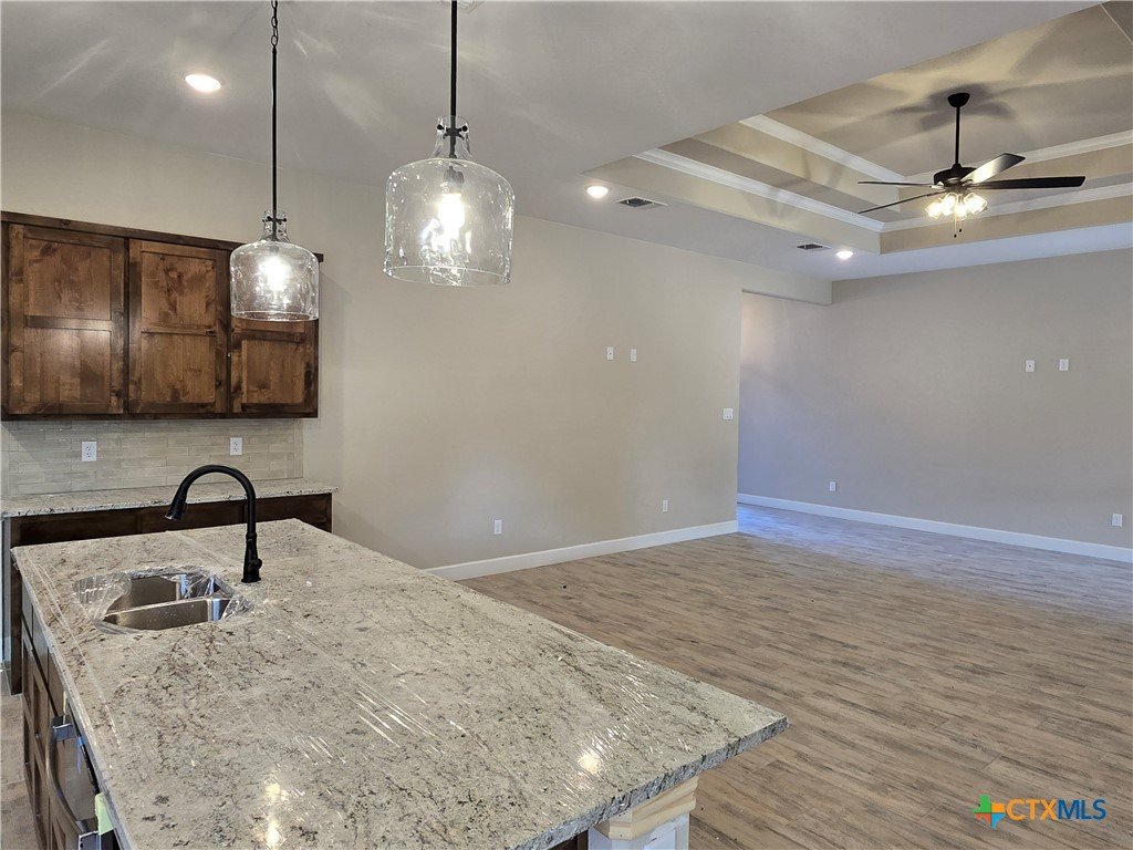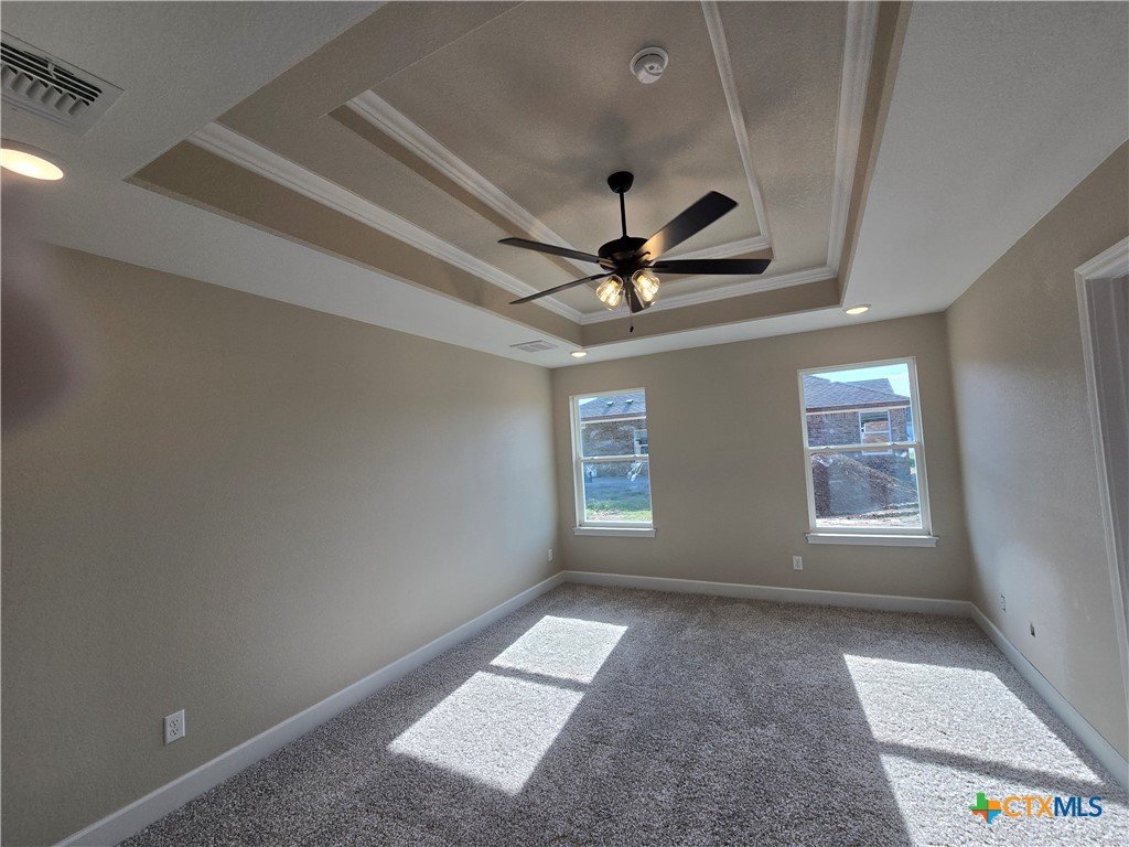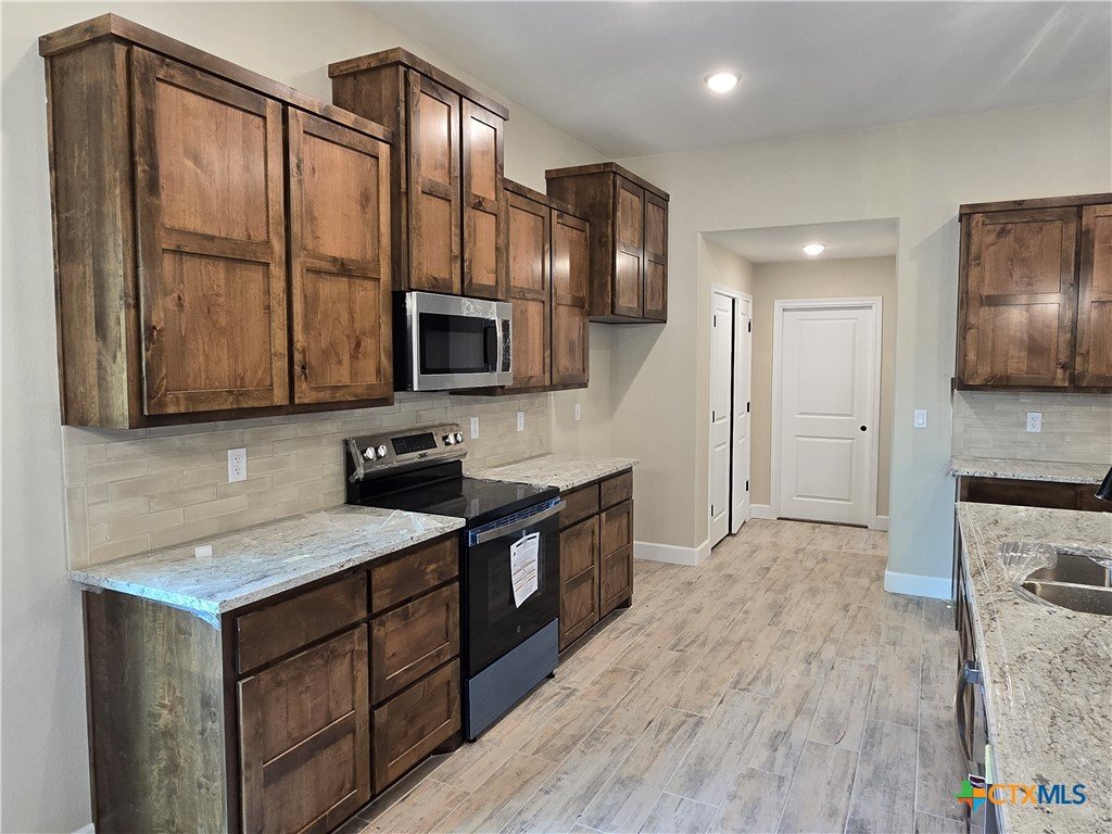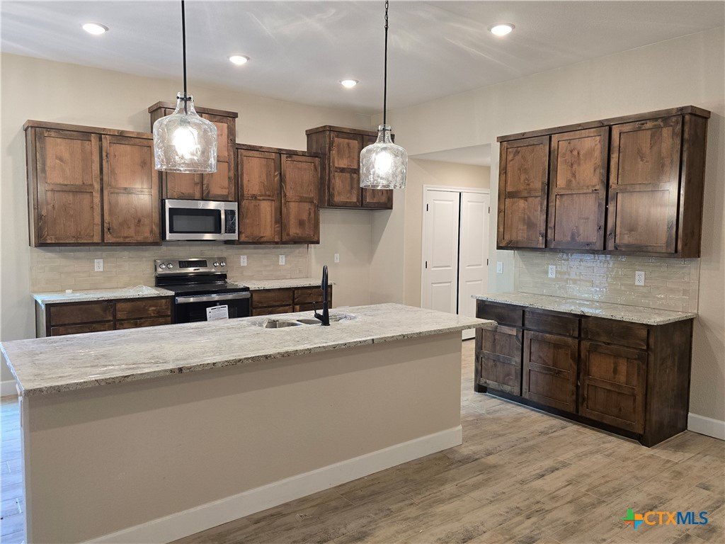 Move in to luxury in this stunning new construction home by Eagle Homes located in the highly sought out Hubbard Branch Subdivision in Belton. This open split floor plan has all the comforts from high tray ceilings and recessed lighting to a fabulous gourmet island kitchen with granite counters, pantry, stainless steel appliances, and custom cabinets. The great room is open to the island kitchen and the breakfast bar. The large owner's suite has a spacious bathroom with 2 closets, large free standing tub and ceramic tile shower. Minor bedrooms have huge closets and/or walk-in closet. One bedroom has its own private bathroom. Large three car garage, upscale moldings and ceramic tile in all wet areas. The home has one of our largest covered patios perfect for entertaining, programable sprinkler system, privacy fence, full sod, low maintenance shrubs, and so more more are just standard features Eagle Homes provides. Come out and visit our homes in Hubbard Branch, Belton ISD. Spray foam insulation!!!