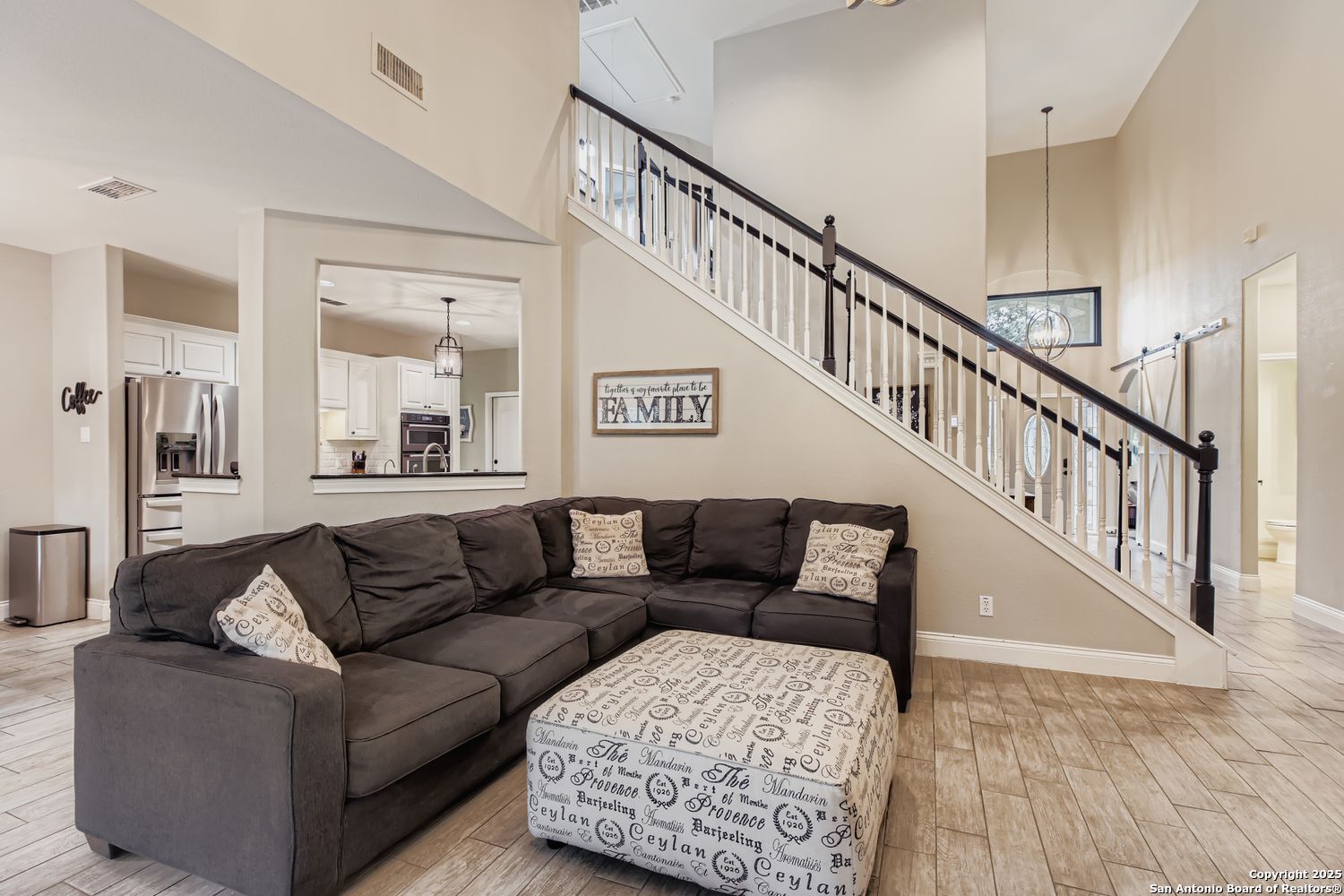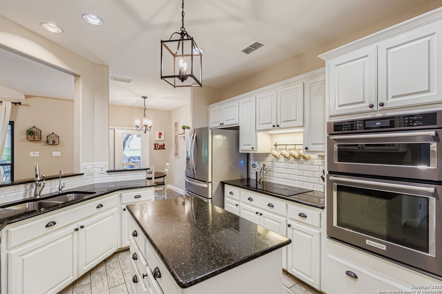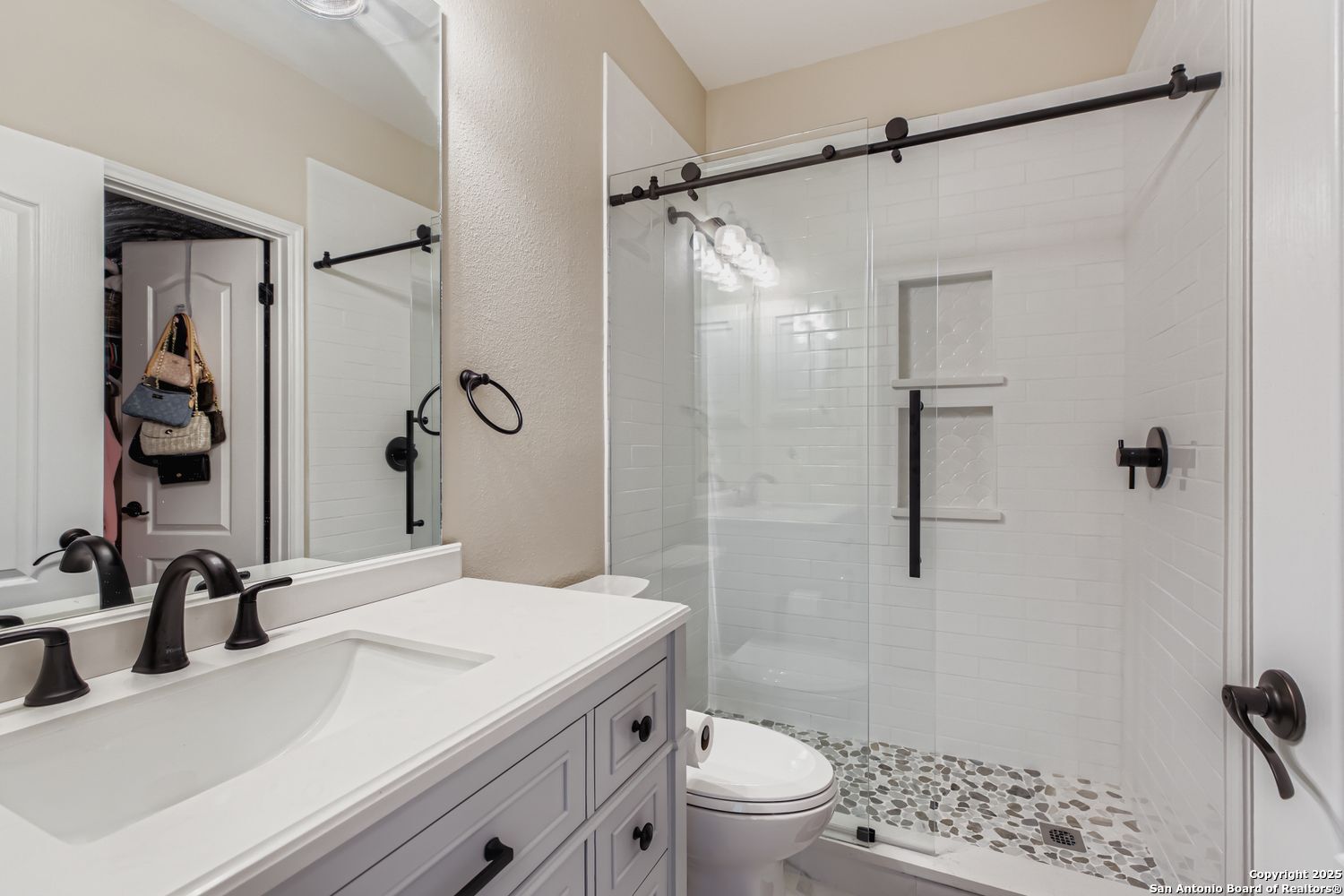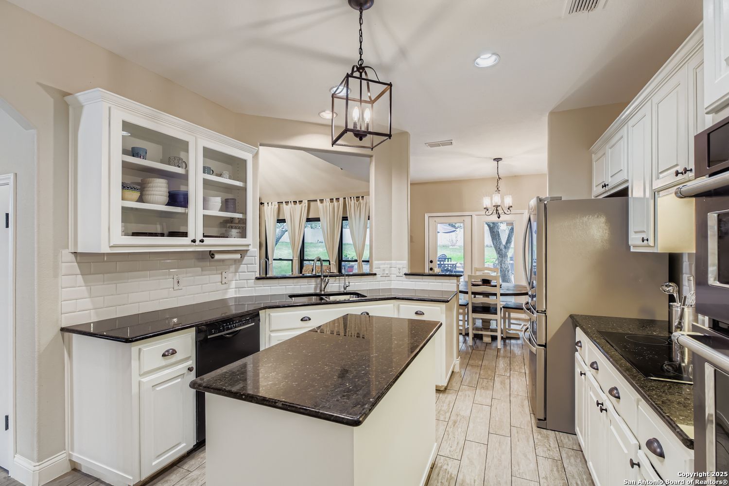 This four bedroom, three and a half bath residence transforms modern convenience into genuine everyday living. A side-entry garage flows naturally into spaces designed for real people - not showrooms - where recent renovations have infused the home with both durability and style. The 2024 upgrades alone tell a story of intentional stewardship: a new roof, replaced siding with Hardie Plank, new Anderson windows, replaced water heater, and fresh exterior paint ensure this home performs as well as it looks. Walk through the entry into a kitchen that actually works. The island layout, smooth cooktop, and generous cabinet space create a kitchen where you can move freely while entertaining or simply preparing dinner on a Tuesday night. Stainless steel appliances and granite counters anchor the space, while dual pantries mean groceries and entertaining supplies always have a home. The nearby laundry room - filled with natural light and outfitted with substantial cabinetry and counter space - removes the drudgery from a necessary daily task. The primary suite downstairs commands attention with its size and outdoor access, a luxury for privacy-seeking homeowners who want to step directly from bedroom to backyard without navigating hallways. The ensuite bath delivers both indulgence and practicality: a soaking tub paired with a glass-enclosed shower featuring a rainfall showerhead transforms morning routines into something closer to retreat than rush. The secondary bedroom with its own bathroom downstairs adds flexibility - perfect for guests, aging parents, or anyone seeking privacy and personal space. The mechanical bones of this home speak to previous owners who understood that systems matter - things like the water softener, HVAC systems that were replaced in the last four years, new kitchen appliances about three years ago, and the aforementioned updates and upgrades in 2024. The wood-look tile in main living areas combines the warmth of traditional flooring with the practical durability homeowners actually need. Step into the backyard and you enter an entirely different world. The expansive deck, strung with Luckenbach lights and recently repainted, becomes an outdoor living room for morning coffee, evening gatherings, or simply watching the sunset. A fire pit anchors the enormous backyard, creating a natural gathering space while the mature landscaping, enclosed by a stained and well-maintained fence, provides definition and privacy. A shed with a roof matching the home's architecture doesn't just store equipment; it disappears into the landscape. The sprinkler system handles the work of maintaining that generous yard, while a side entry garage with dedicated dog bath area and additional floored storage turns practical necessities into thoughtful design details. The stone wood-burning fireplace add warmth during cooler months, while the home's overall layout - four bedrooms distributed across two levels - accommodates every situation or anyone who needs dedicated space for a home office. Looking through the home reveals owners who lived here intentionally rather than just simply passing through. This is a home where recent investments in systems, materials, and finishes translate into years of reliable living ahead. Everything from the roof over your head to the HVAC that keeps you comfortable to the water running from your taps represents thoughtful maintenance and upgrades executed in the last few years.