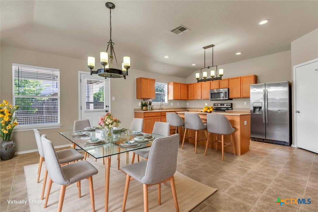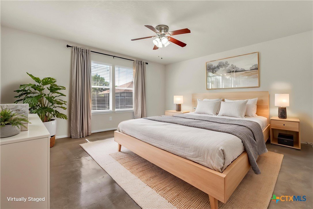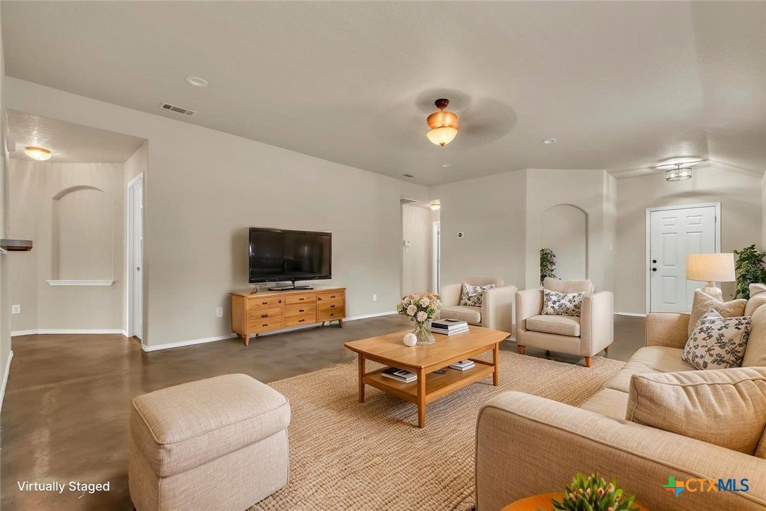 This well-kept, single-story home offers 1,797 square feet with 3 bedrooms and 2 full bathrooms. The open floor plan includes a comfortable living area that flows into the kitchen and dining space—great for everyday living and hosting guests. Stained concrete floors throughout provide a clean look and are easy to maintain. The backyard features a covered patio with an extended area for extra seating. Recent updates include a full roof replacement and new attic insulation in 2024. A new HVAC system was installed in 2017. If you're looking for a move-in ready home with practical updates and a functional layout, schedule a showing today!