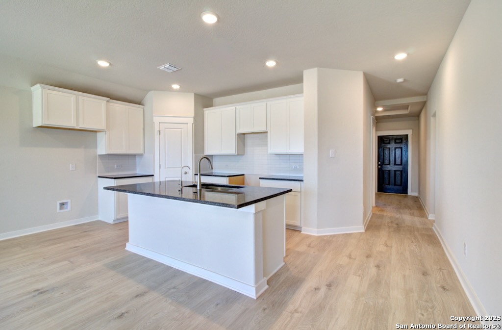 Welcome to the Avalon plan by DRB Homes, a thoughtfully designed single story home offering four bedrooms and two baths. This inviting layout blends comfort and style with everyday functionality. The kitchen serves as the heart of the home, featuring a spacious center island, Madison Hardwood Square Thimble cabinets, Montecelio Omegastone countertops, and a white Fascinate ceramic tile backsplash in a rectangular staggered pattern. An undermount stainless steel sink and gas cooking with stainless steel appliances complete this well appointed space. The kitchen opens seamlessly to the casual dining area and great room, creating an ideal setting for both relaxing and entertaining. The owner's suite is privately located at the back of the home, separate from the secondary bedrooms, and includes a ceiling fan for added comfort. The owner's bath showcases an expansive shower with Observe Silver ceramic tile in a rectangular straight lay pattern and Desert Gray flooring. The secondary bath includes a ceramic tile surround and a single vanity. Located in Prairie Green just off Loop 1604 and Interstate 10, this community offers convenient access to San Antonio, New Braunfels, San Marcos, and Austin. Residents enjoy walking paths and a playscape in a welcoming neighborhood.