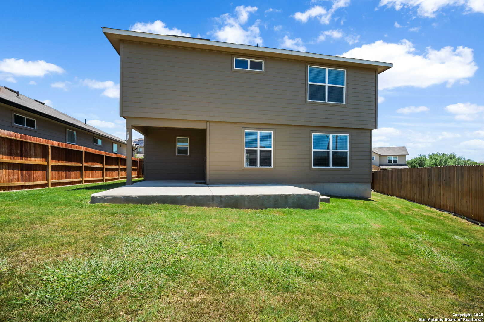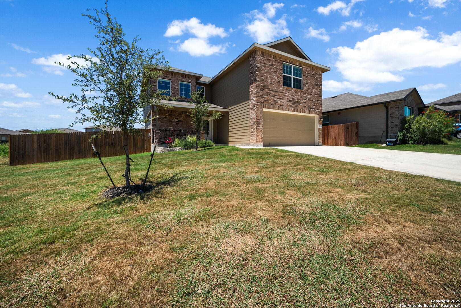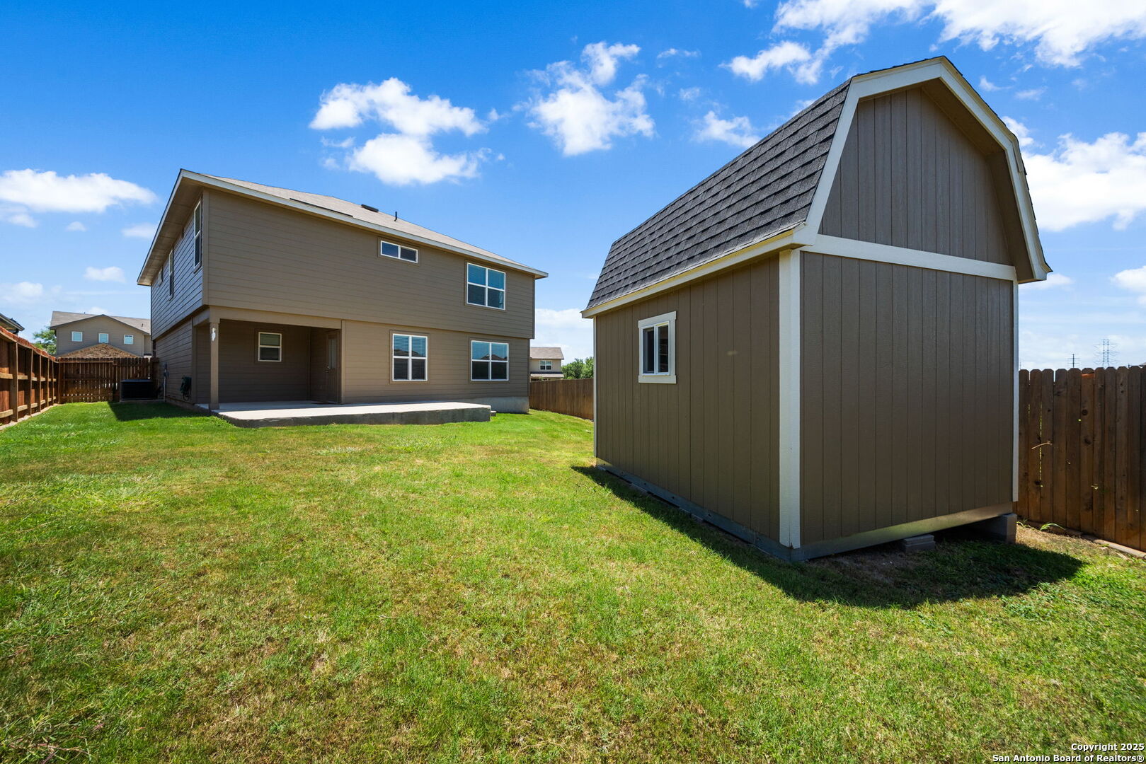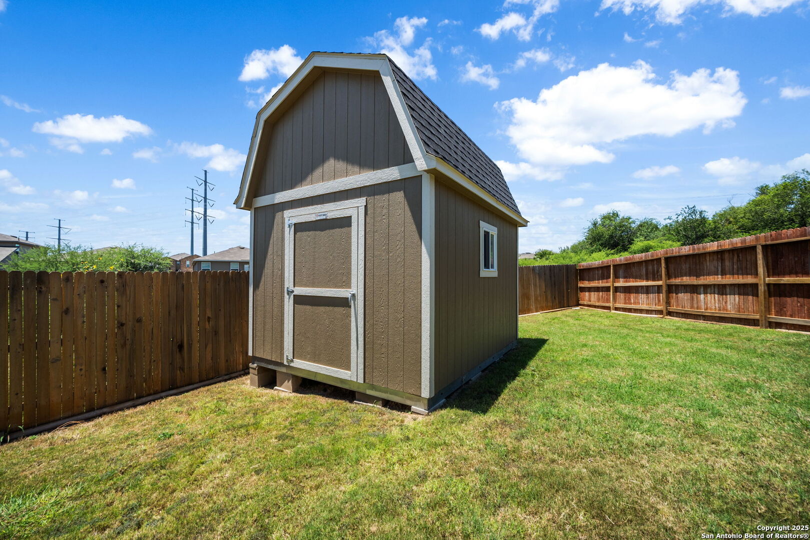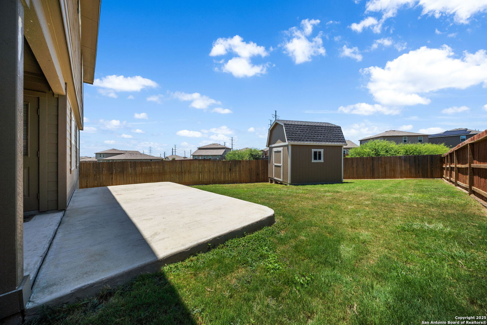 Move-in ready!!!Lovely 3 bedroom, 2.5 bathroom home, perfectly poised and ready for a new family. This move-in ready and well-maintained residence features an open and inviting floor plan that seamlessly blends style and functionality. The gourmet island kitchen is fully equipped with granite countertops, an abundance of cabinetry, a stylish backsplash, and stainless steel appliances, including a refrigerator-along with a spacious walk-in pantry, making it ideal for cooking and entertaining. The generous family room is perfect for enjoying quality family time. Retreat to the primary suite, complete with an ensuite bathroom that includes a separate tub and shower, dual vanities, and an expansive walk-in closet. Two additional bedrooms and a sizable game room provide ample space for a growing family. Step outside to discover a serene backyard featuring a large covered patio, perfect for outdoor fun. In addition, this home comes fully equipped with a water softener, epoxy flooring and a utility sink in the garage for effortless cleanup. Additional storage is conveniently available with a 12x10 storage shed in the backyard. Ideally located with easy access to Loop 1604, US-90 W, shopping, dining, Lackland AFB, Capital Group, Sea World and many other major employers. Come experience quiet and comfortable living in this vibrant and growing community.