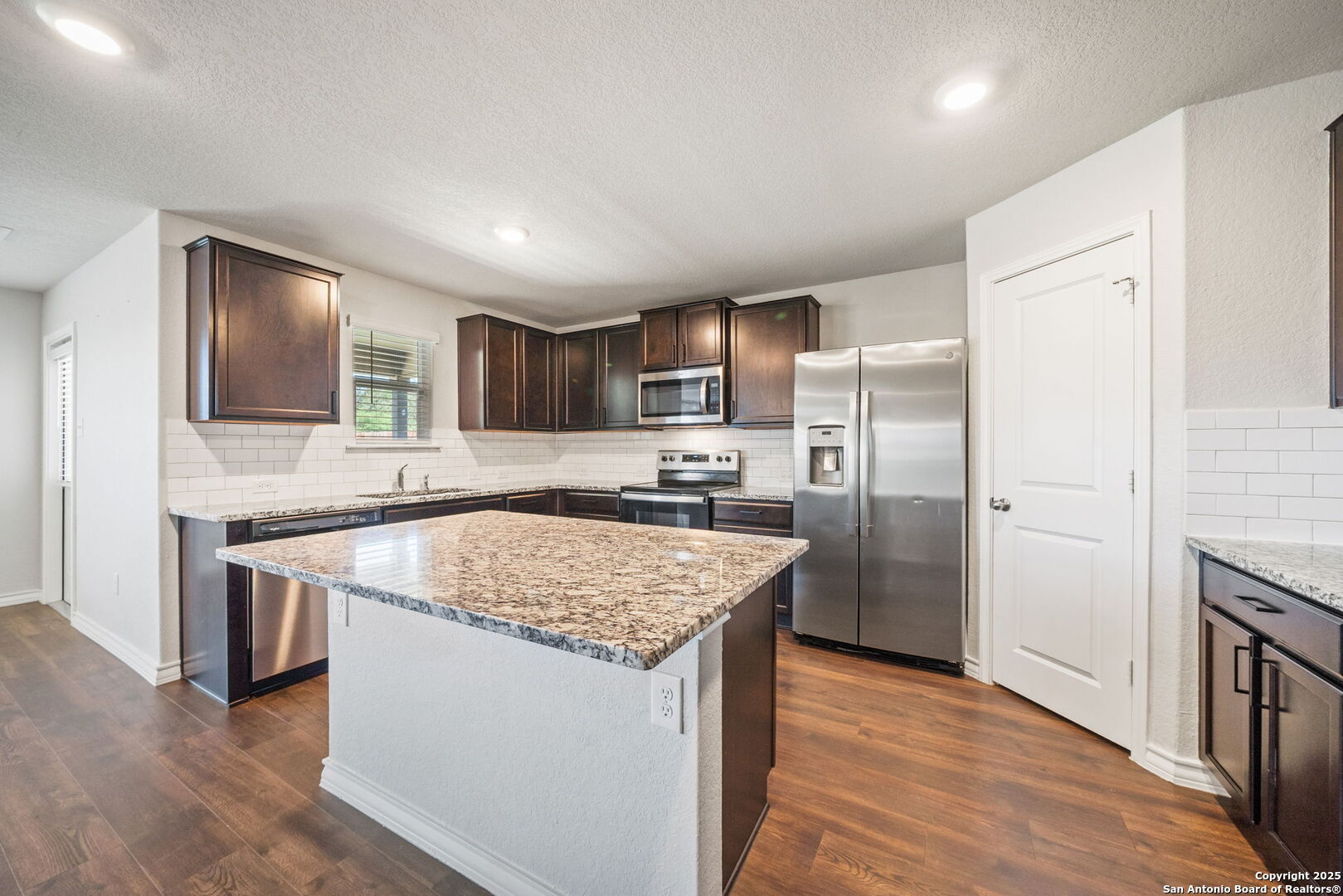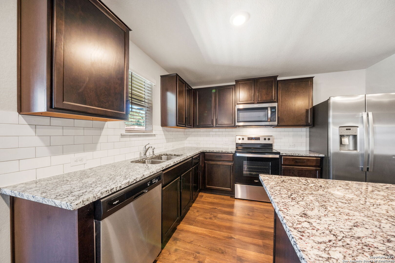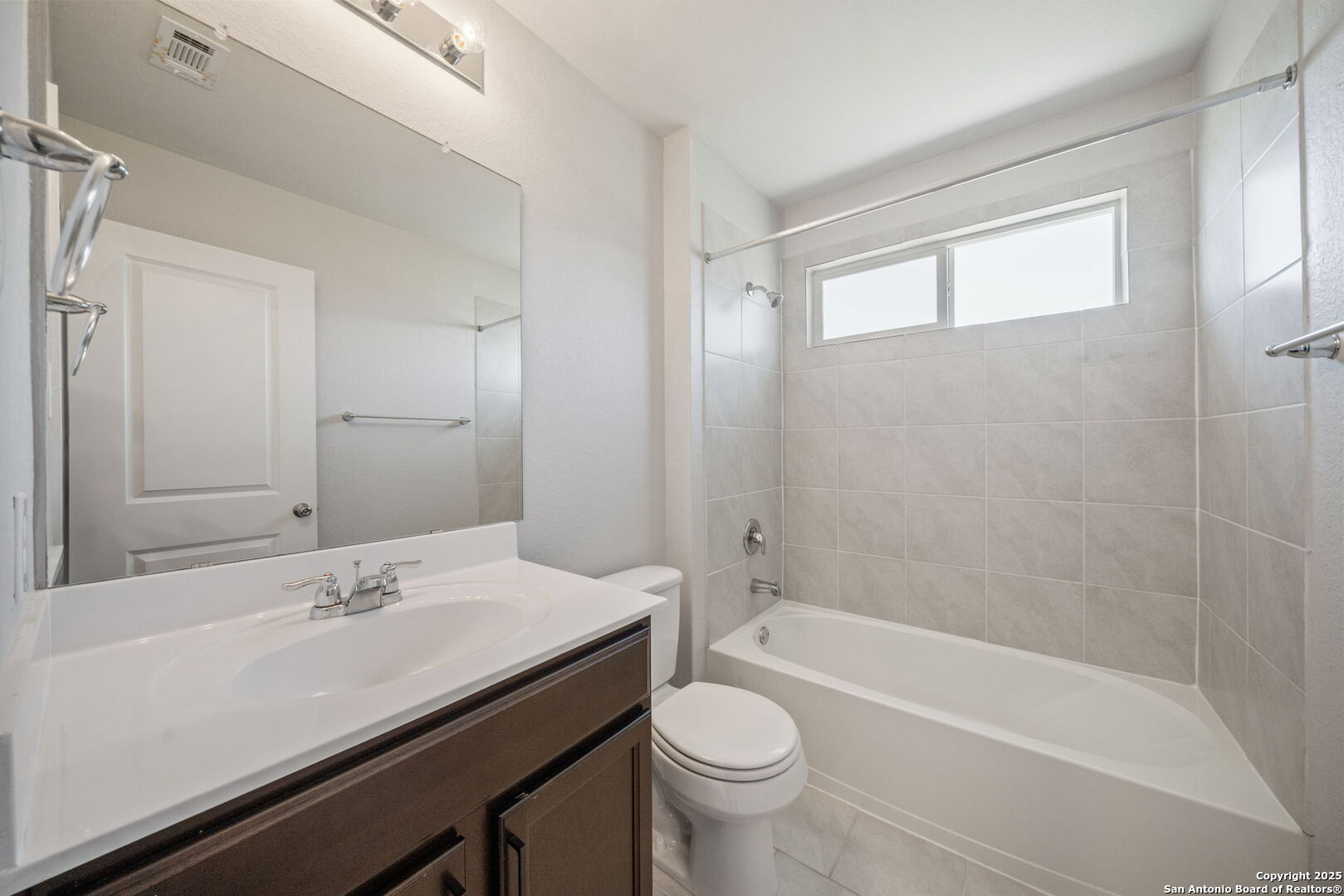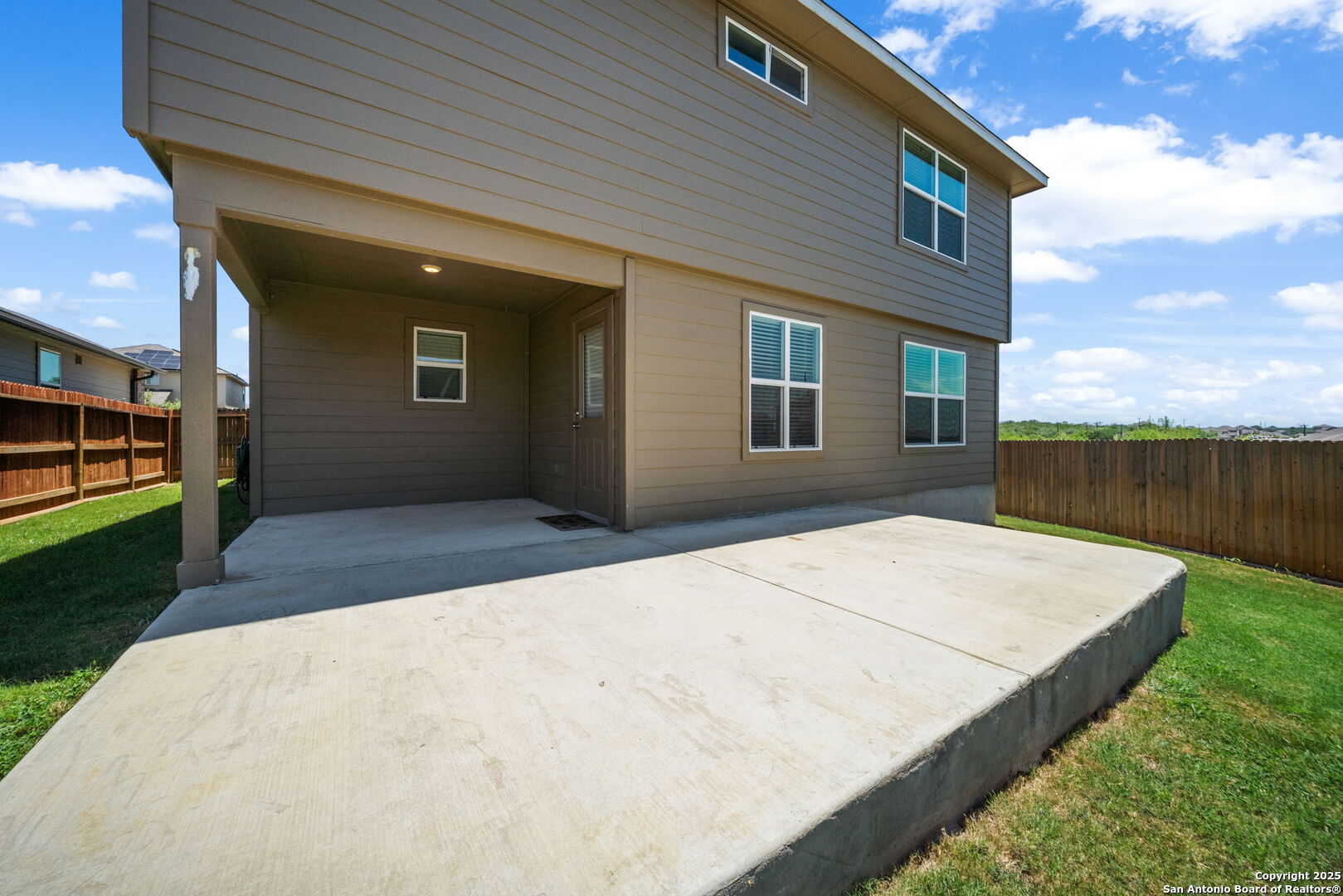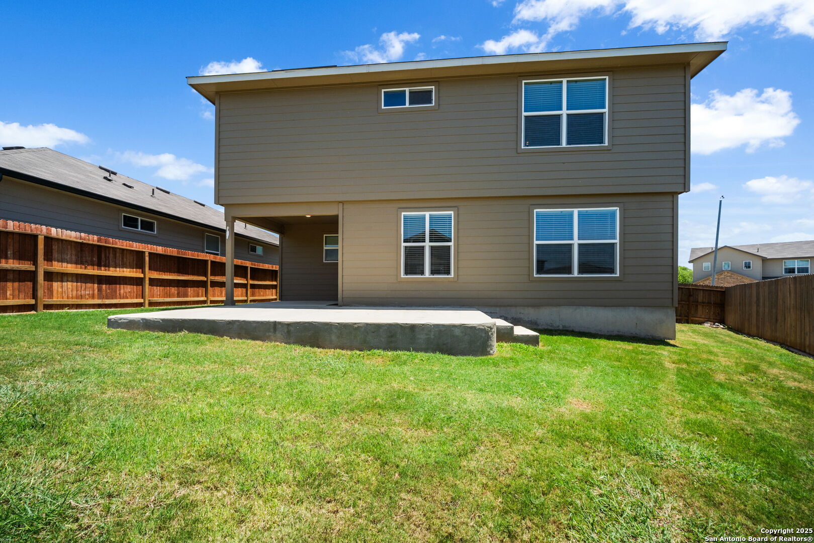 Move-in ready!!!Lovely 3 bedroom, 2.5 bathroom home, perfectly poised and ready for a new family. This move-in ready and well-maintained residence features an open and inviting floor plan that seamlessly blends style and functionality. The gourmet island kitchen is fully equipped with granite countertops, an abundance of cabinetry, a stylish backsplash, and stainless steel appliances, including a refrigerator-along with a spacious walk-in pantry, making it ideal for cooking and entertaining. The generous family room is perfect for enjoying quality family time. Retreat to the primary suite, complete with an ensuite bathroom that includes a separate tub and shower, dual vanities, and an expansive walk-in closet. Two additional bedrooms and a sizable game room provide ample space for a growing family. Step outside to discover a serene backyard featuring a large covered patio, perfect for outdoor fun. In addition, this home comes fully equipped with a water softener, epoxy flooring and a utility sink in the garage for effortless cleanup. Additional storage is conveniently available with a 12x10 storage shed in the backyard. Ideally located with easy access to Loop 1604, US-90 W, shopping, dining, Lackland AFB, Capital Group, Sea World and many other major employers. Come experience quiet and comfortable living in this vibrant and growing community.