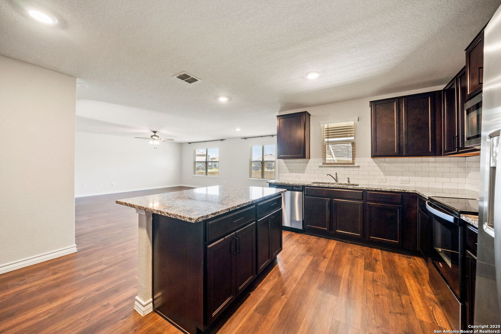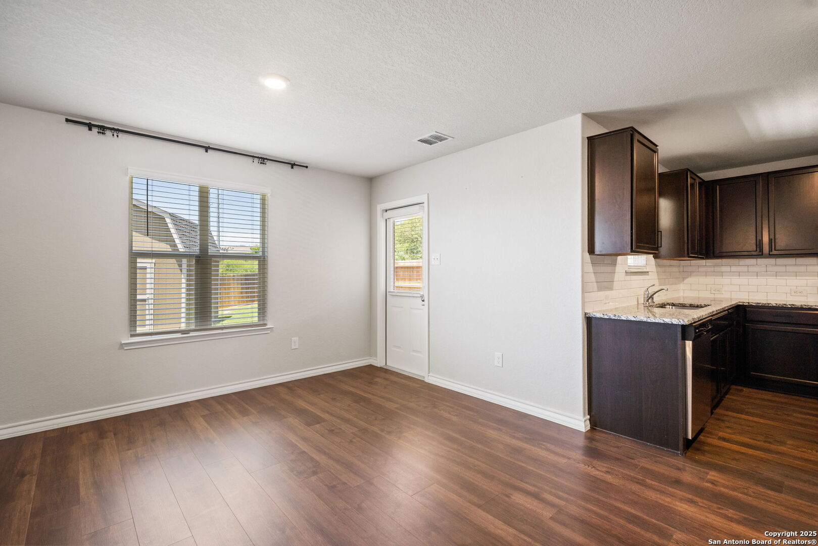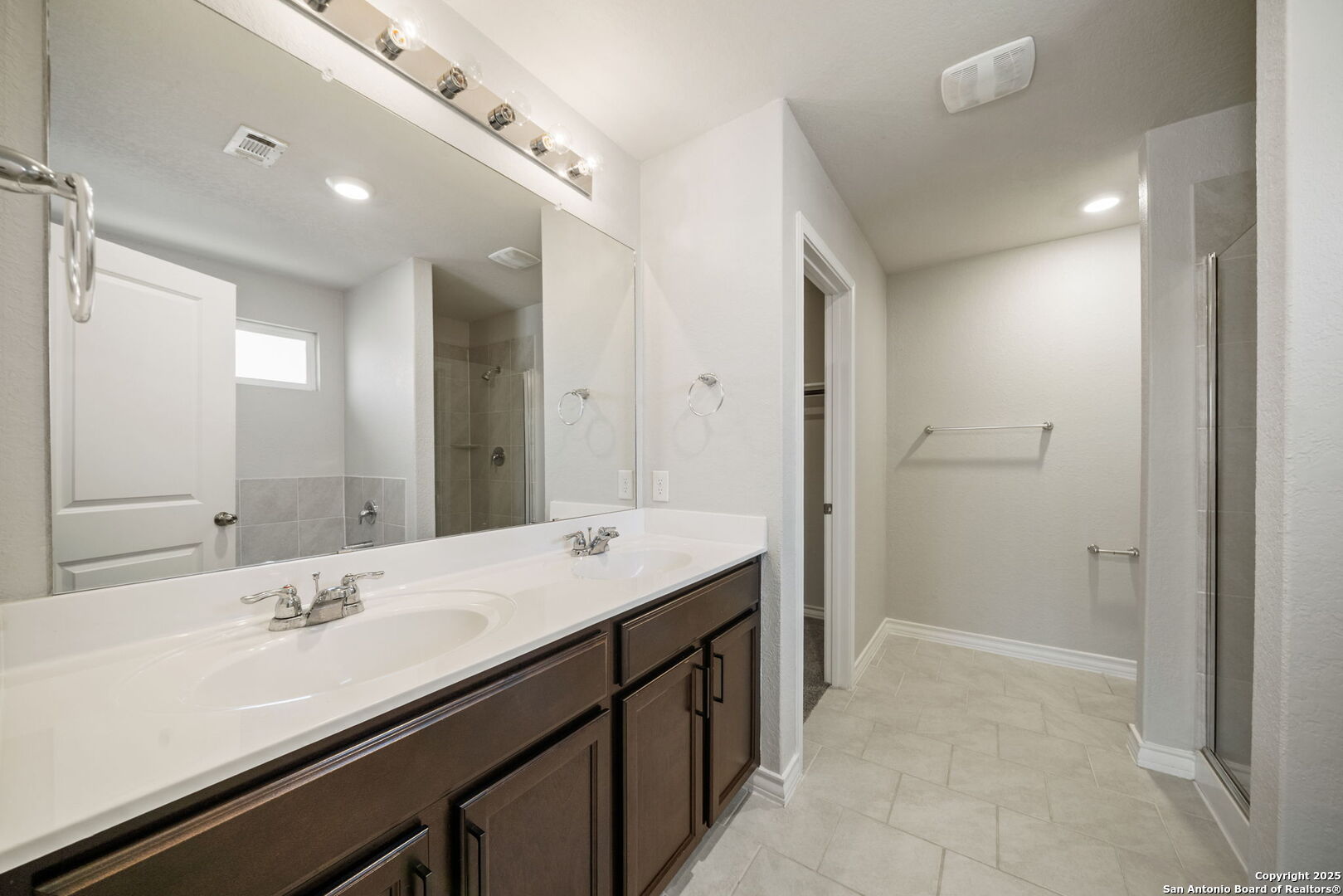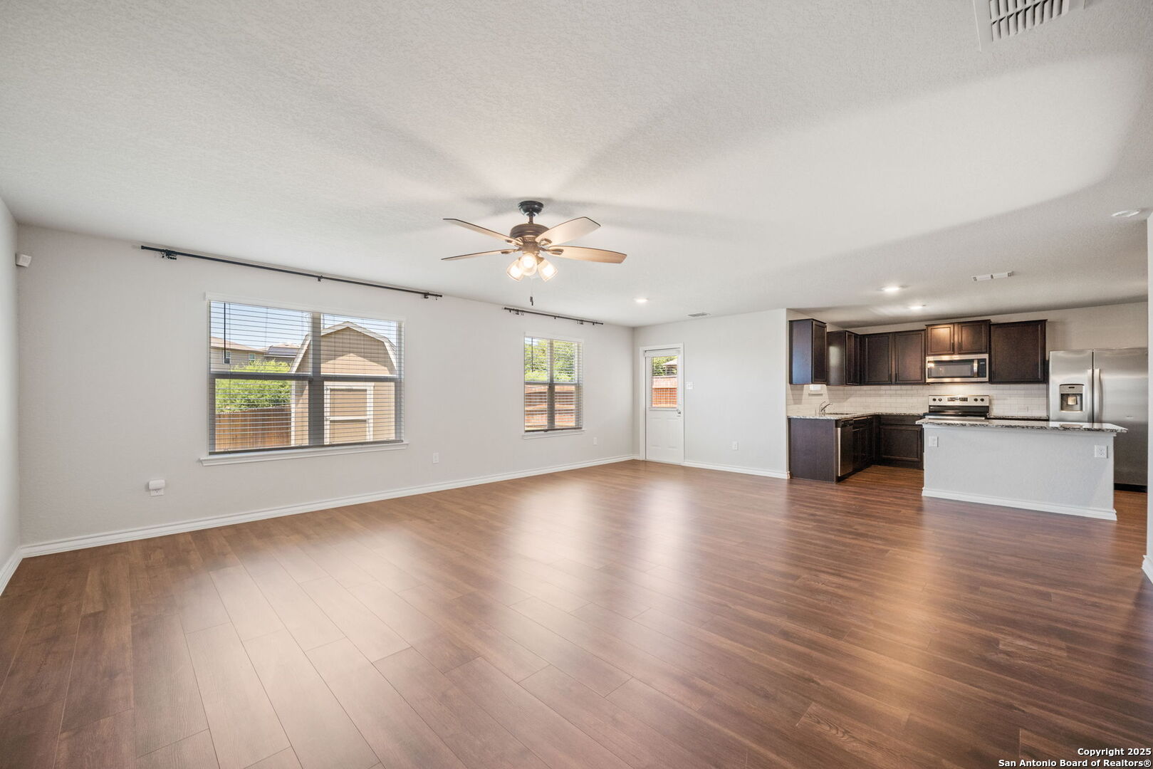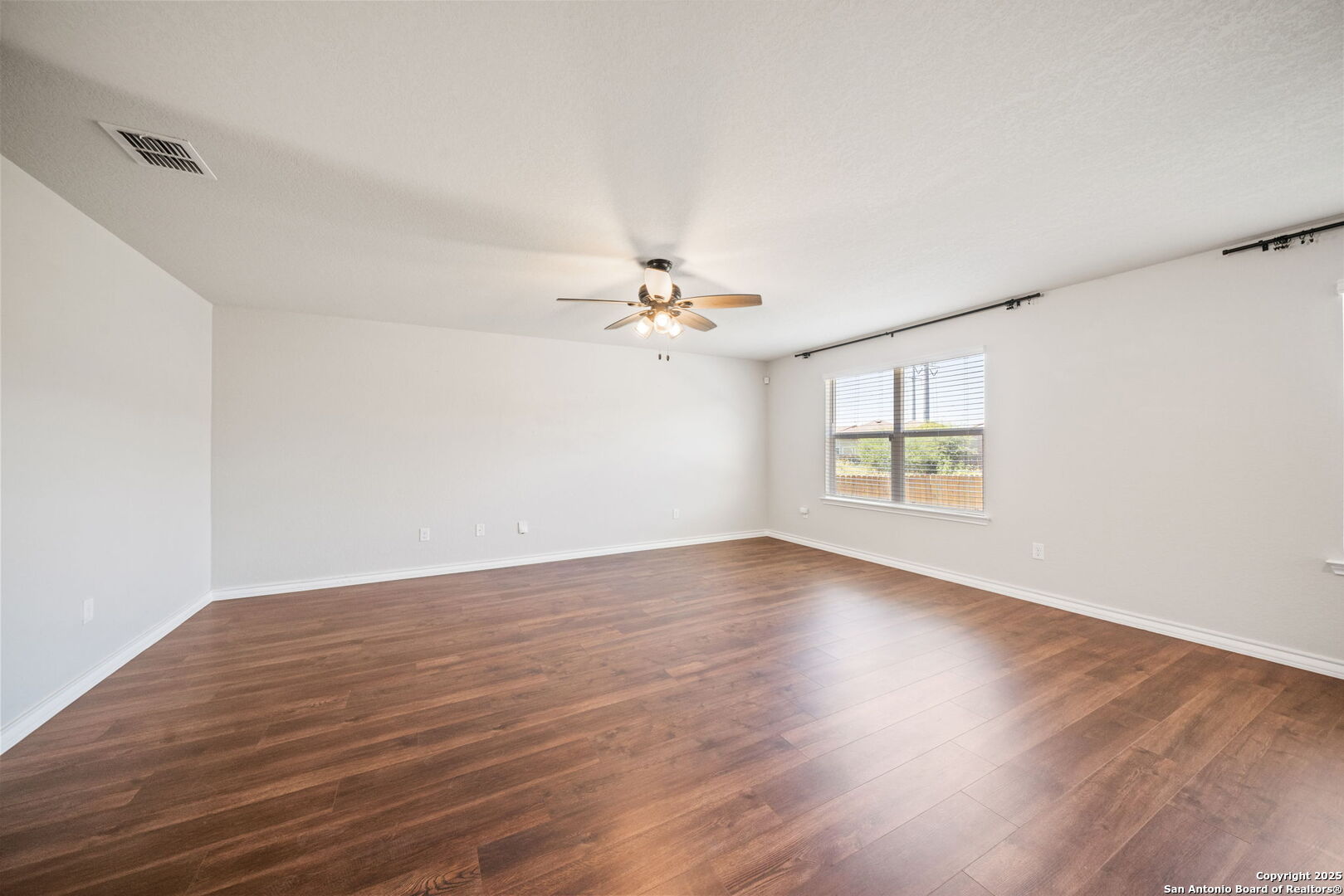 Move-in ready!!!Lovely 3 bedroom, 2.5 bathroom home, perfectly poised and ready for a new family. This move-in ready and well-maintained residence features an open and inviting floor plan that seamlessly blends style and functionality. The gourmet island kitchen is fully equipped with granite countertops, an abundance of cabinetry, a stylish backsplash, and stainless steel appliances, including a refrigerator-along with a spacious walk-in pantry, making it ideal for cooking and entertaining. The generous family room is perfect for enjoying quality family time. Retreat to the primary suite, complete with an ensuite bathroom that includes a separate tub and shower, dual vanities, and an expansive walk-in closet. Two additional bedrooms and a sizable game room provide ample space for a growing family. Step outside to discover a serene backyard featuring a large covered patio, perfect for outdoor fun. In addition, this home comes fully equipped with a water softener, epoxy flooring and a utility sink in the garage for effortless cleanup. Additional storage is conveniently available with a 12x10 storage shed in the backyard. Ideally located with easy access to Loop 1604, US-90 W, shopping, dining, Lackland AFB, Capital Group, Sea World and many other major employers. Come experience quiet and comfortable living in this vibrant and growing community.