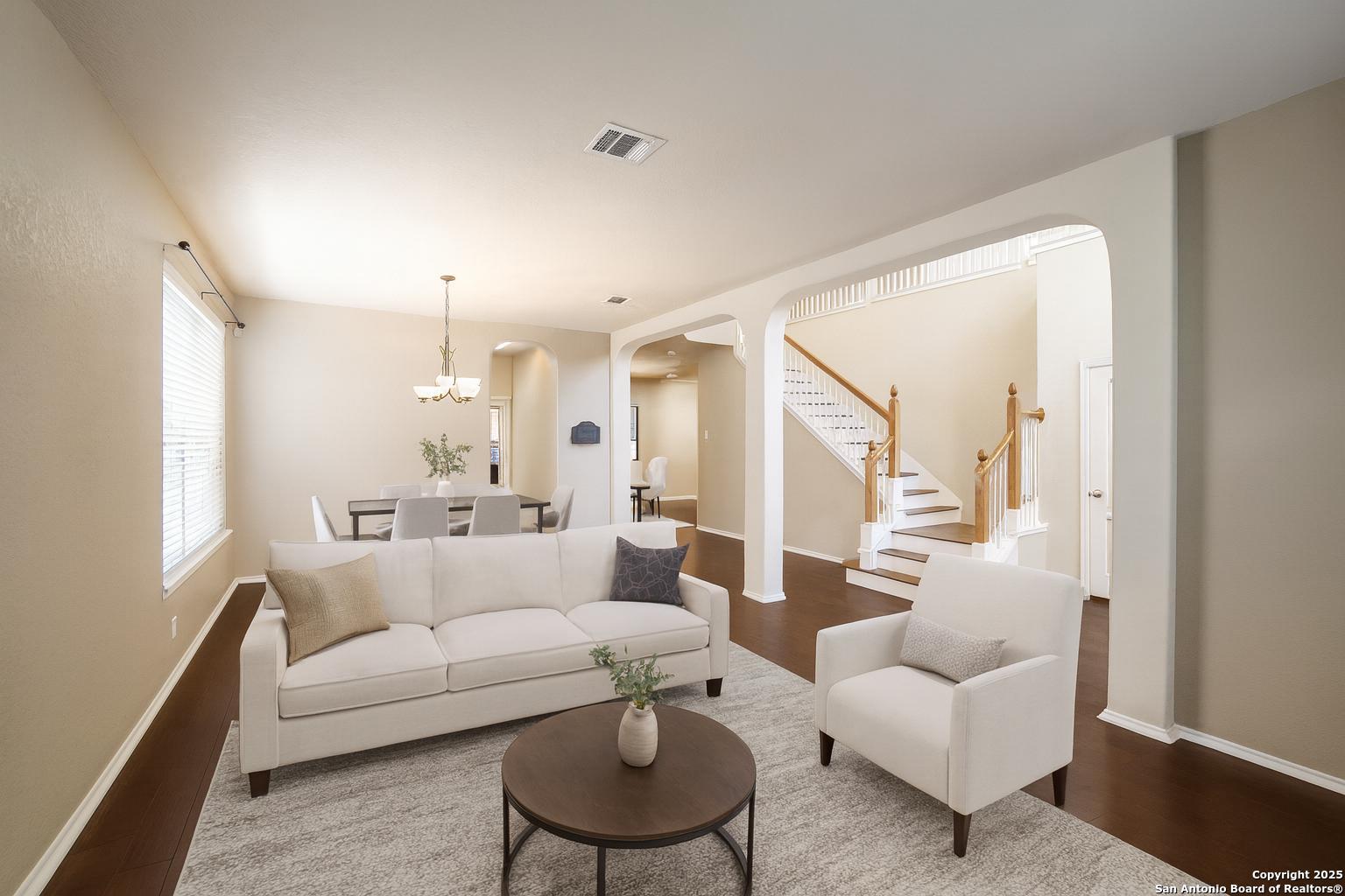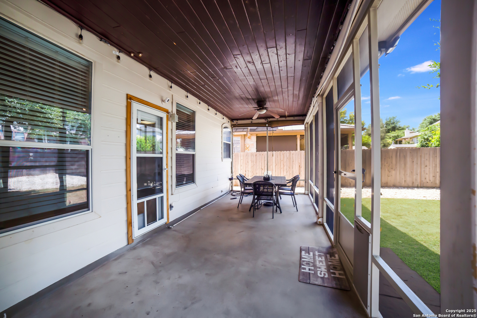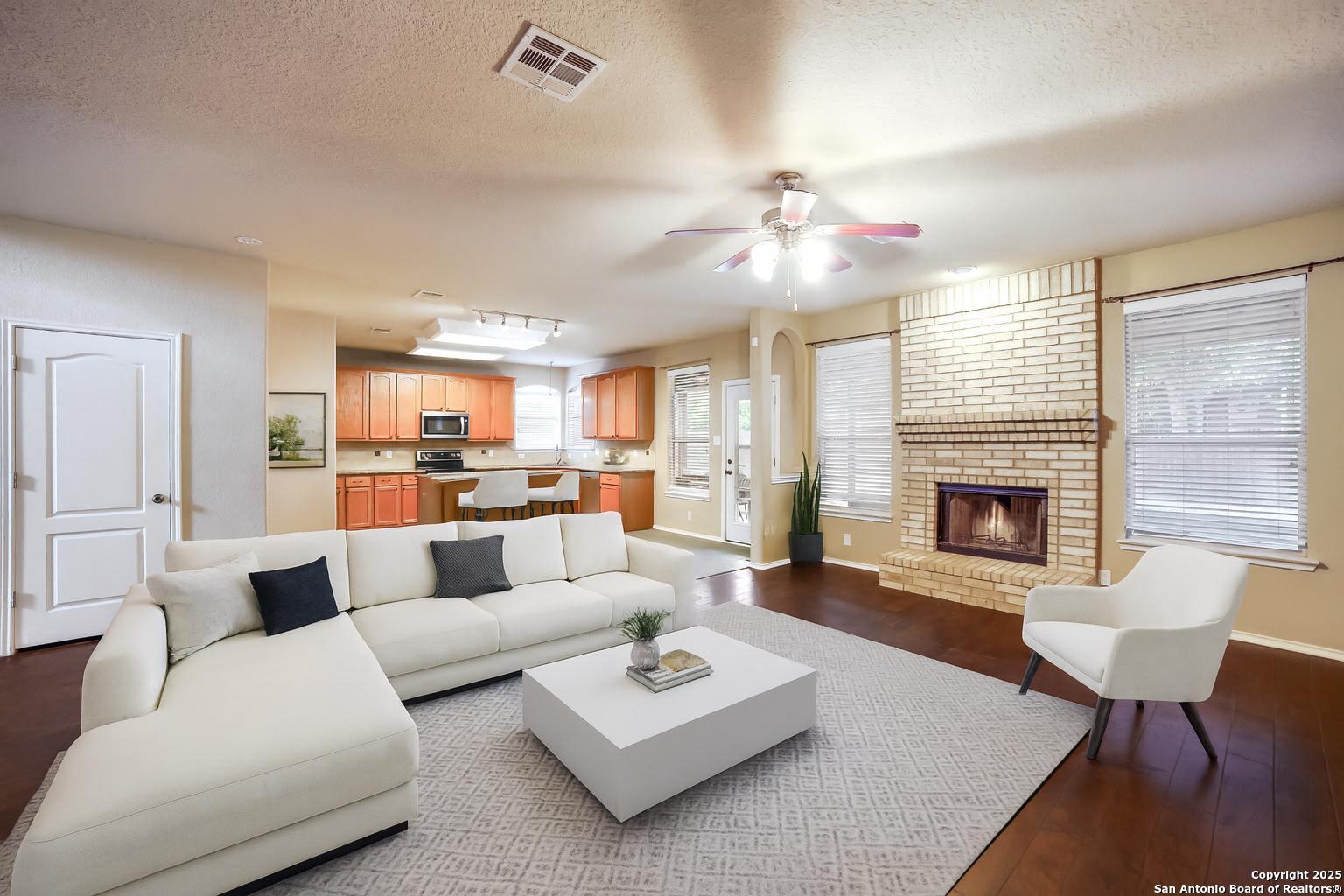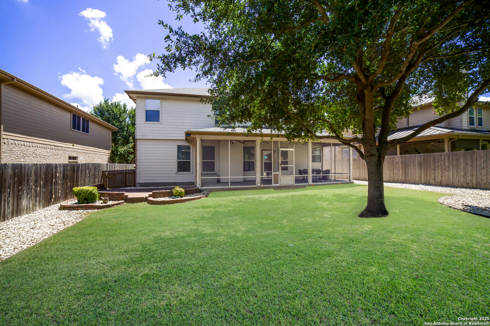 This sought-after five-bedroom, three-bath home in Schertz offers over 3,200 square feet of living space with an open floor plan and three separate living areas, providing room for everyone. The kitchen is designed for everyday living and entertaining with an enormous walk-in pantry and a seamless flow into the dining and family spaces. Enjoy wood and tile and luxury vinyl floors run throughout the home-no carpet anywhere-making it as practical as it is beautiful. Upstairs and downstairs living spaces give flexibility for work, play, or relaxation, while the backyard features a large screened-in patio perfect for year-round enjoyment. A brand new roof adds peace of mind, and the home is filled with thoughtful upgrades and details that make it move-in ready. Awesome community center for neighbors to meet at the pool and playground! Conveniently located less than 10 miles from Randolph Air Force Base, and just minutes from The Forum Shopping Center, H-E-B, EVO Entertainment, and Santikos, this home combines comfort, style, and convenience in one complete package.