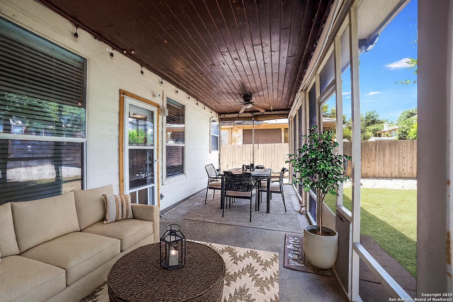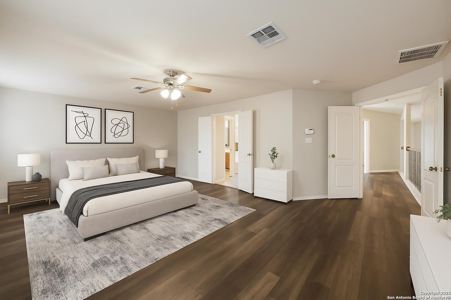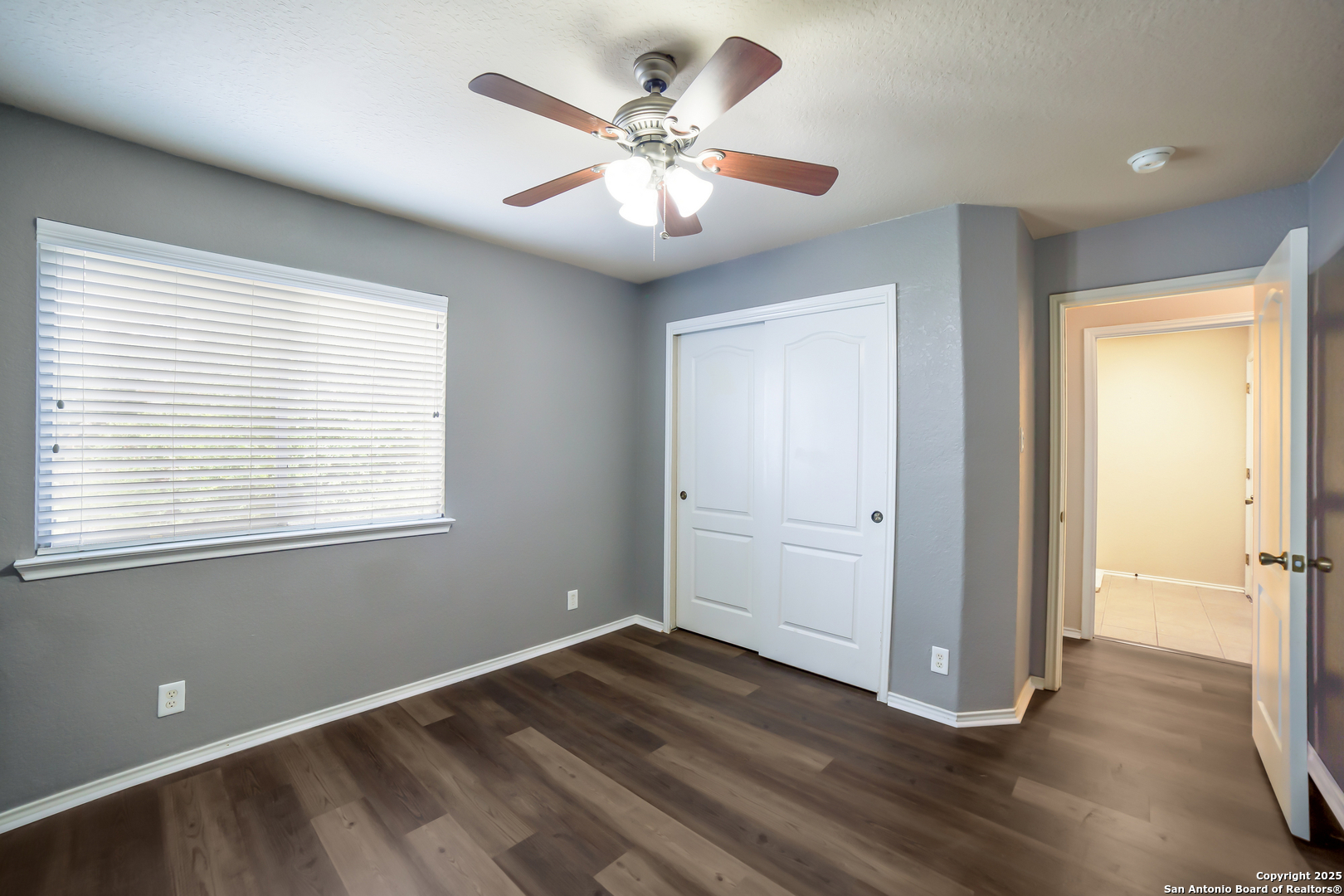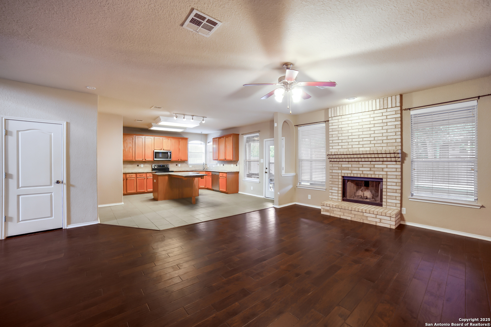 This sought-after five-bedroom, three-bath home in Schertz offers over 3,200 square feet of living space with an open floor plan and three separate living areas, providing room for everyone. The kitchen is designed for everyday living and entertaining with an enormous walk-in pantry and a seamless flow into the dining and family spaces. Enjoy wood and tile and luxury vinyl floors run throughout the home-no carpet anywhere-making it as practical as it is beautiful. Upstairs and downstairs living spaces give flexibility for work, play, or relaxation, while the backyard features a large screened-in patio perfect for year-round enjoyment. A brand new roof adds peace of mind, and the home is filled with thoughtful upgrades and details that make it move-in ready. Awesome community center for neighbors to meet at the pool and playground! Conveniently located less than 10 miles from Randolph Air Force Base, and just minutes from The Forum Shopping Center, H-E-B, EVO Entertainment, and Santikos, this home combines comfort, style, and convenience in one complete package.