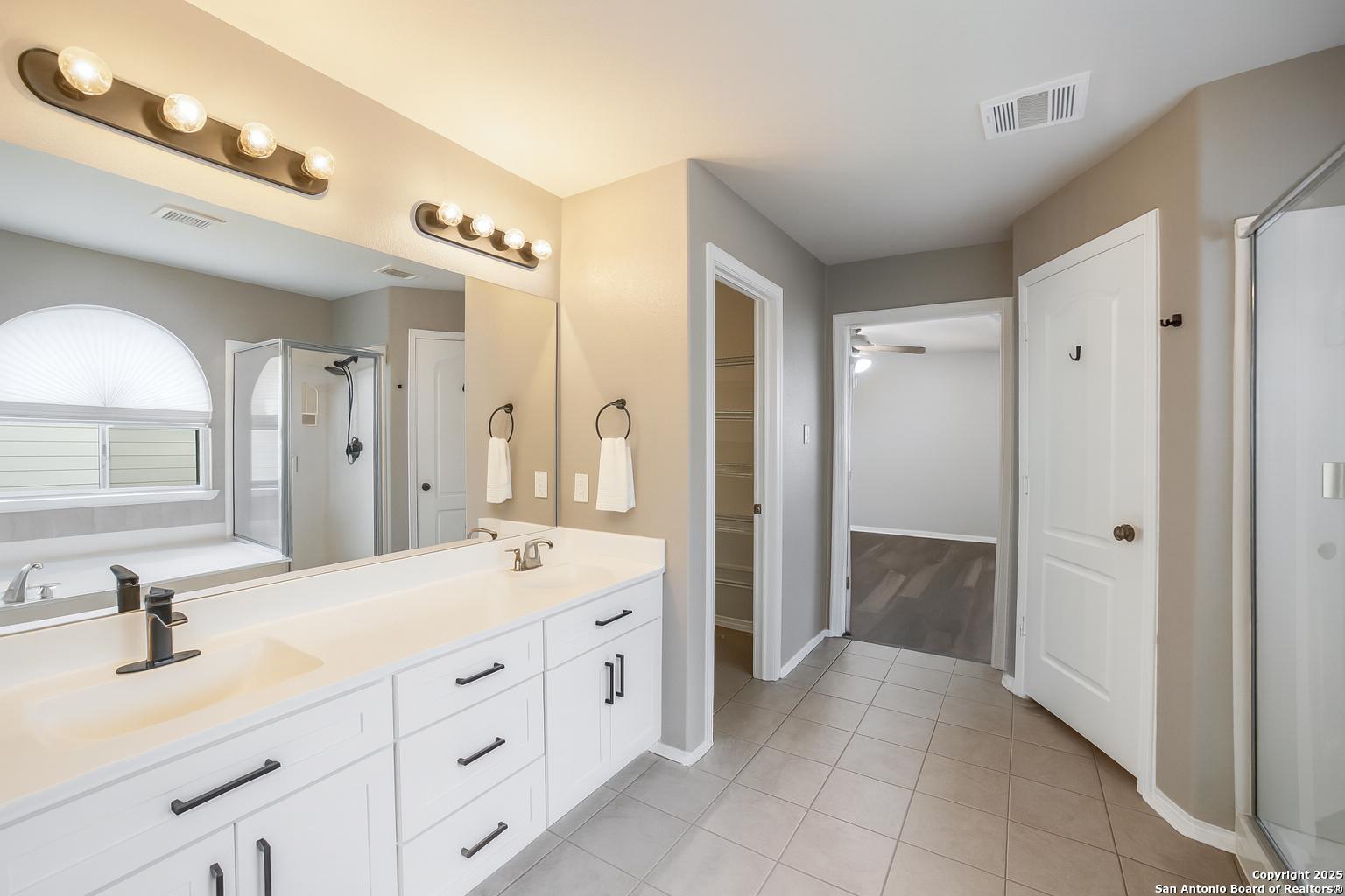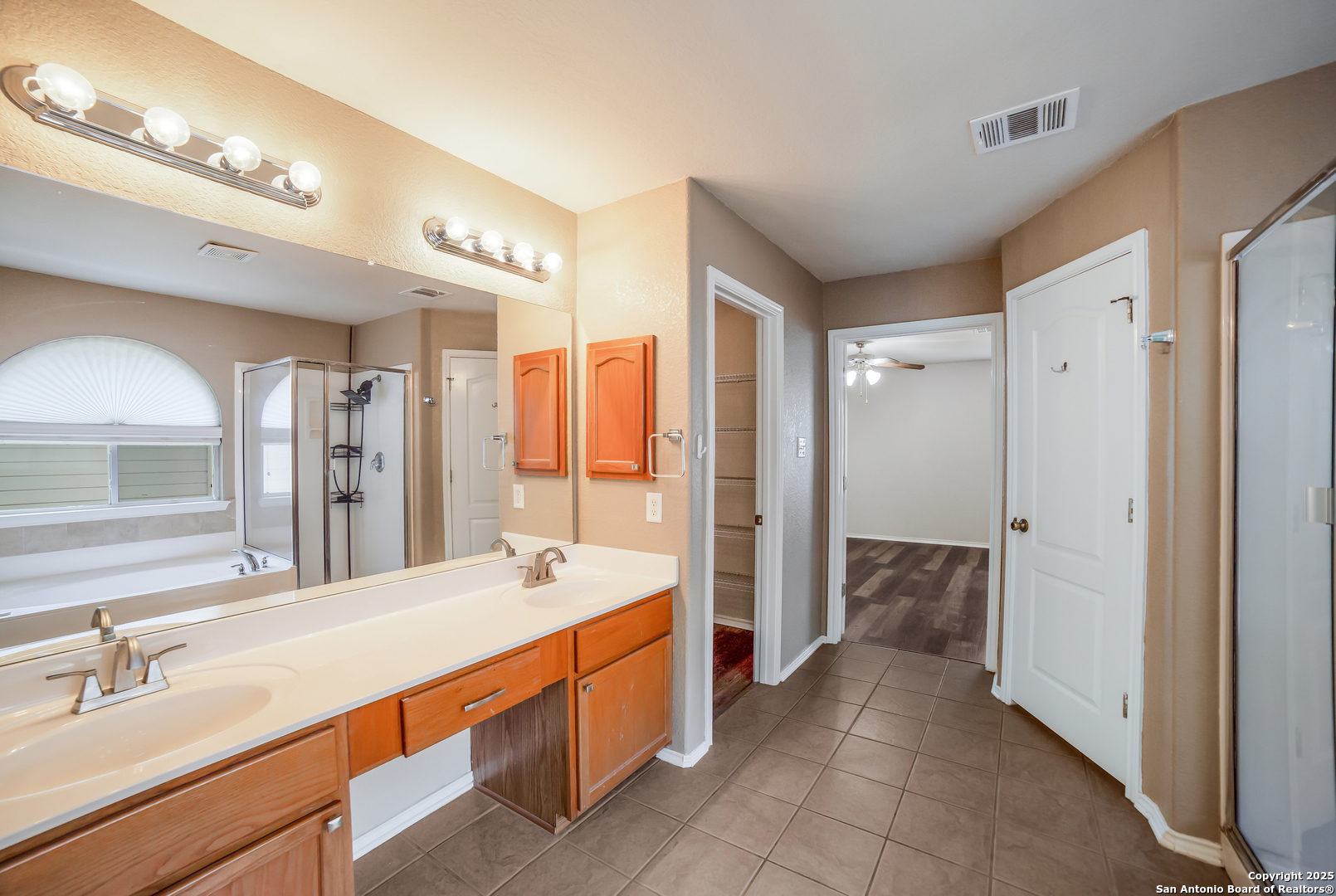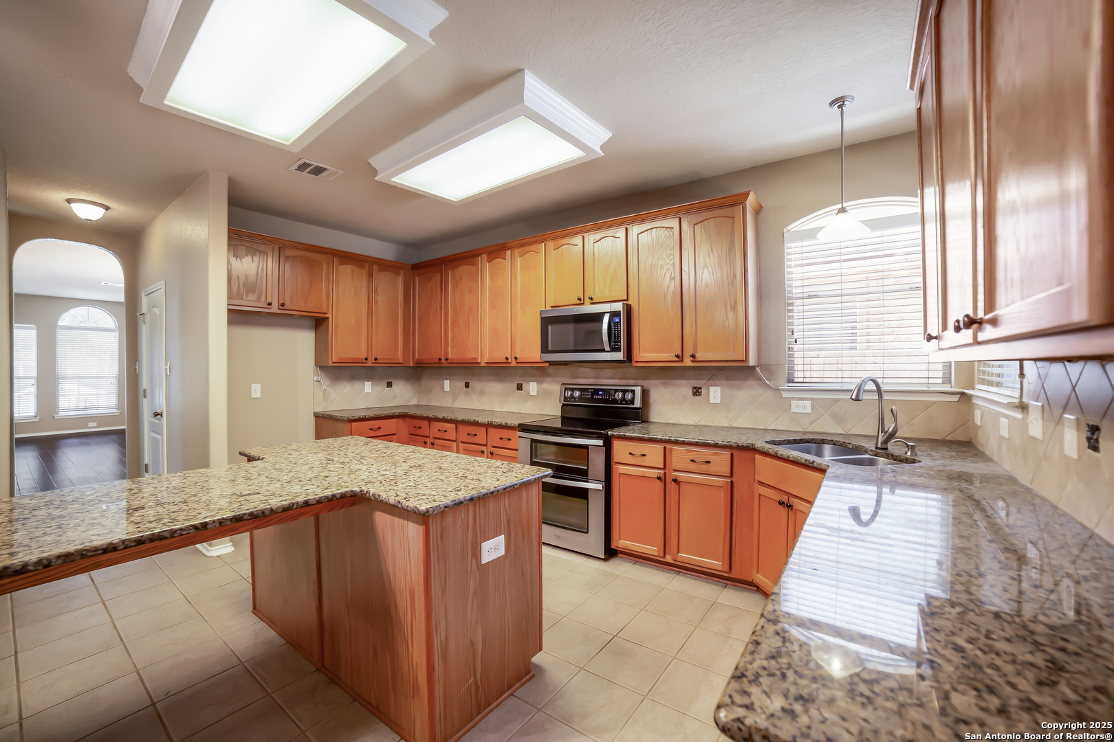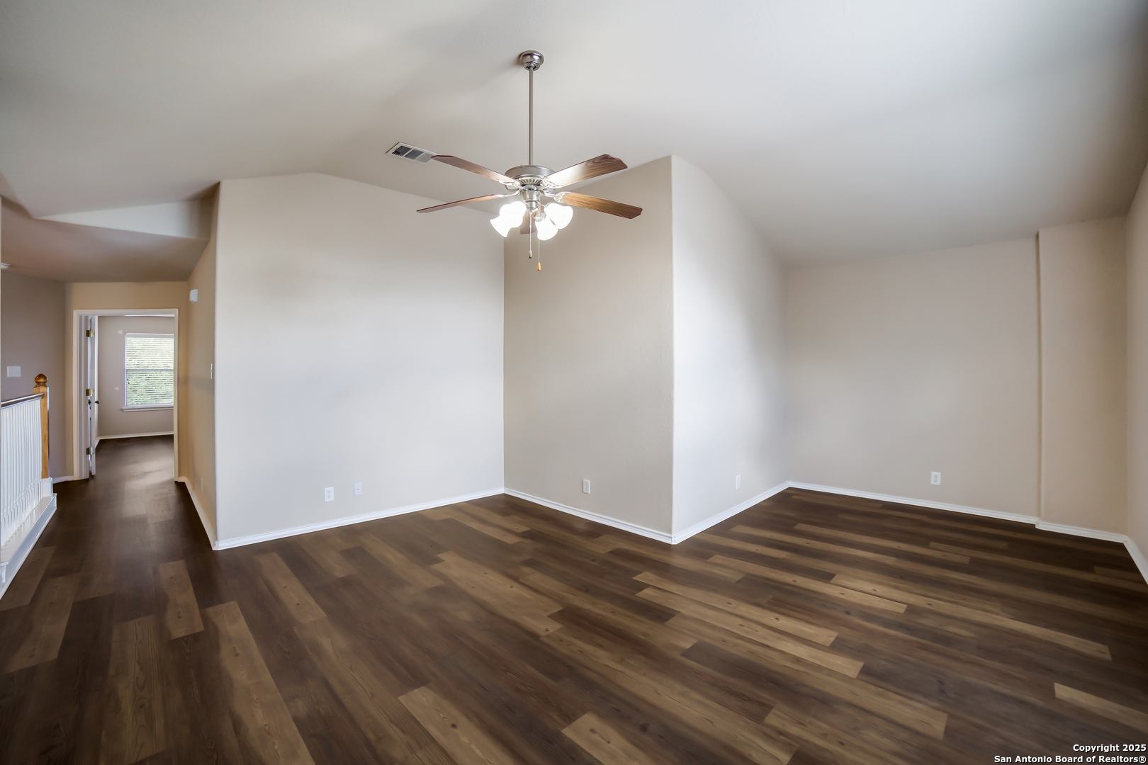 This sought-after five-bedroom, three-bath home in Schertz offers over 3,200 square feet of living space with an open floor plan and three separate living areas, providing room for everyone. The kitchen is designed for everyday living and entertaining with an enormous walk-in pantry and a seamless flow into the dining and family spaces. Enjoy wood and tile and luxury vinyl floors run throughout the home-no carpet anywhere-making it as practical as it is beautiful. Upstairs and downstairs living spaces give flexibility for work, play, or relaxation, while the backyard features a large screened-in patio perfect for year-round enjoyment. A brand new roof adds peace of mind, and the home is filled with thoughtful upgrades and details that make it move-in ready. Awesome community center for neighbors to meet at the pool and playground! Conveniently located less than 10 miles from Randolph Air Force Base, and just minutes from The Forum Shopping Center, H-E-B, EVO Entertainment, and Santikos, this home combines comfort, style, and convenience in one complete package.