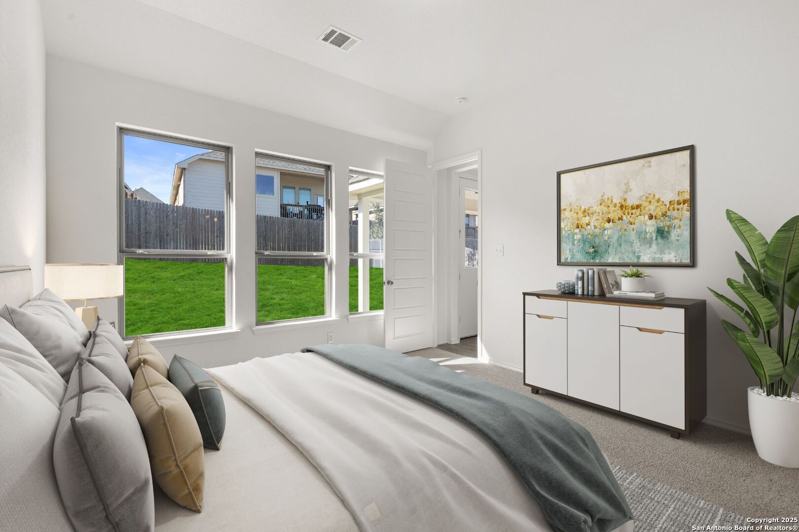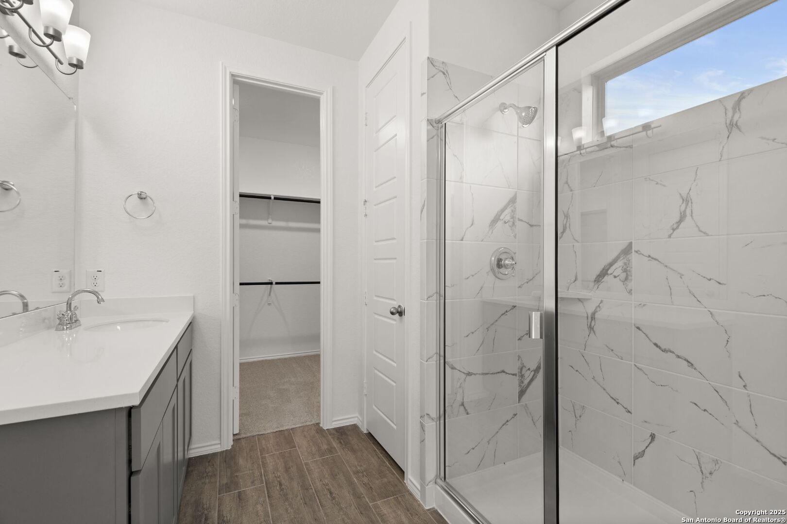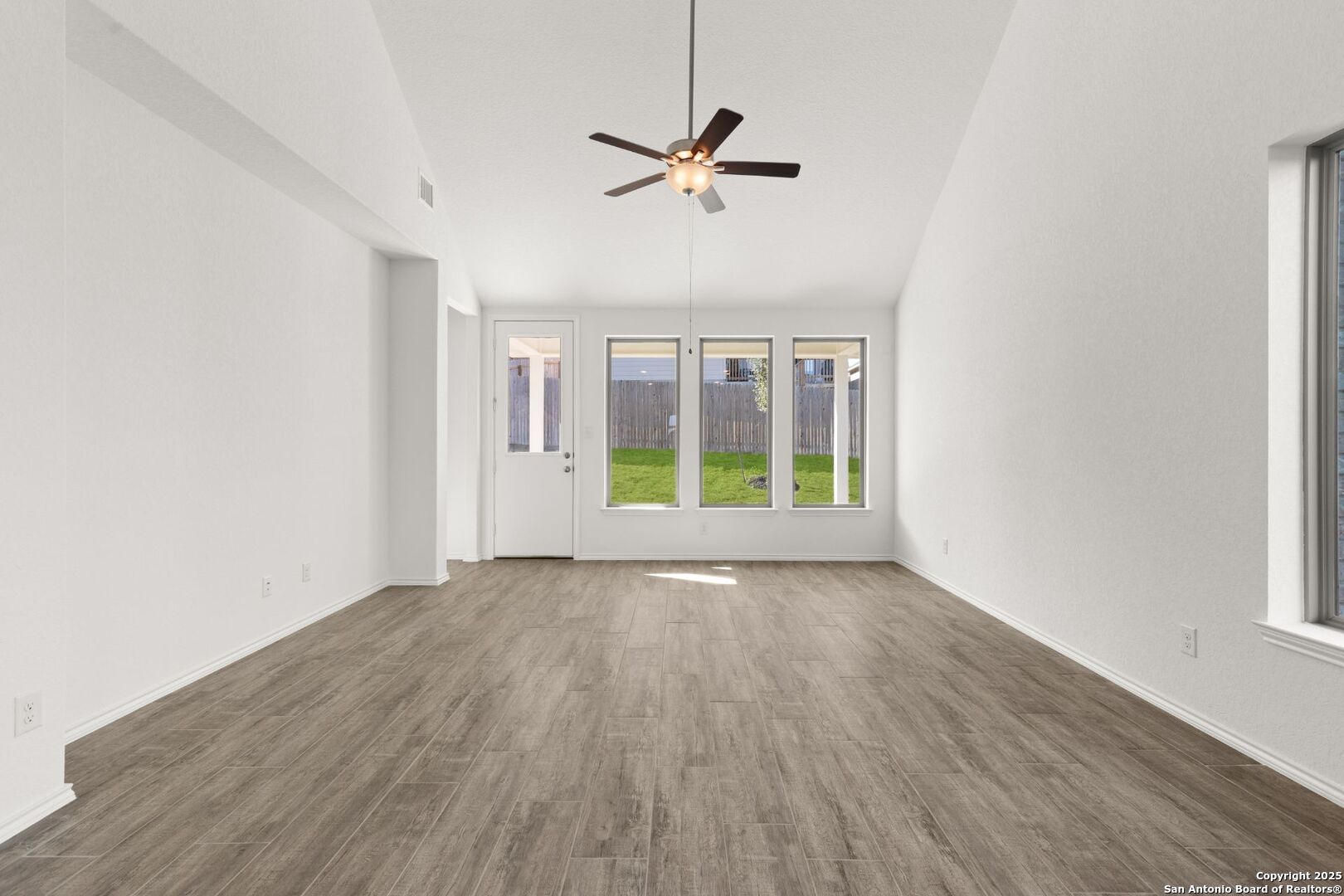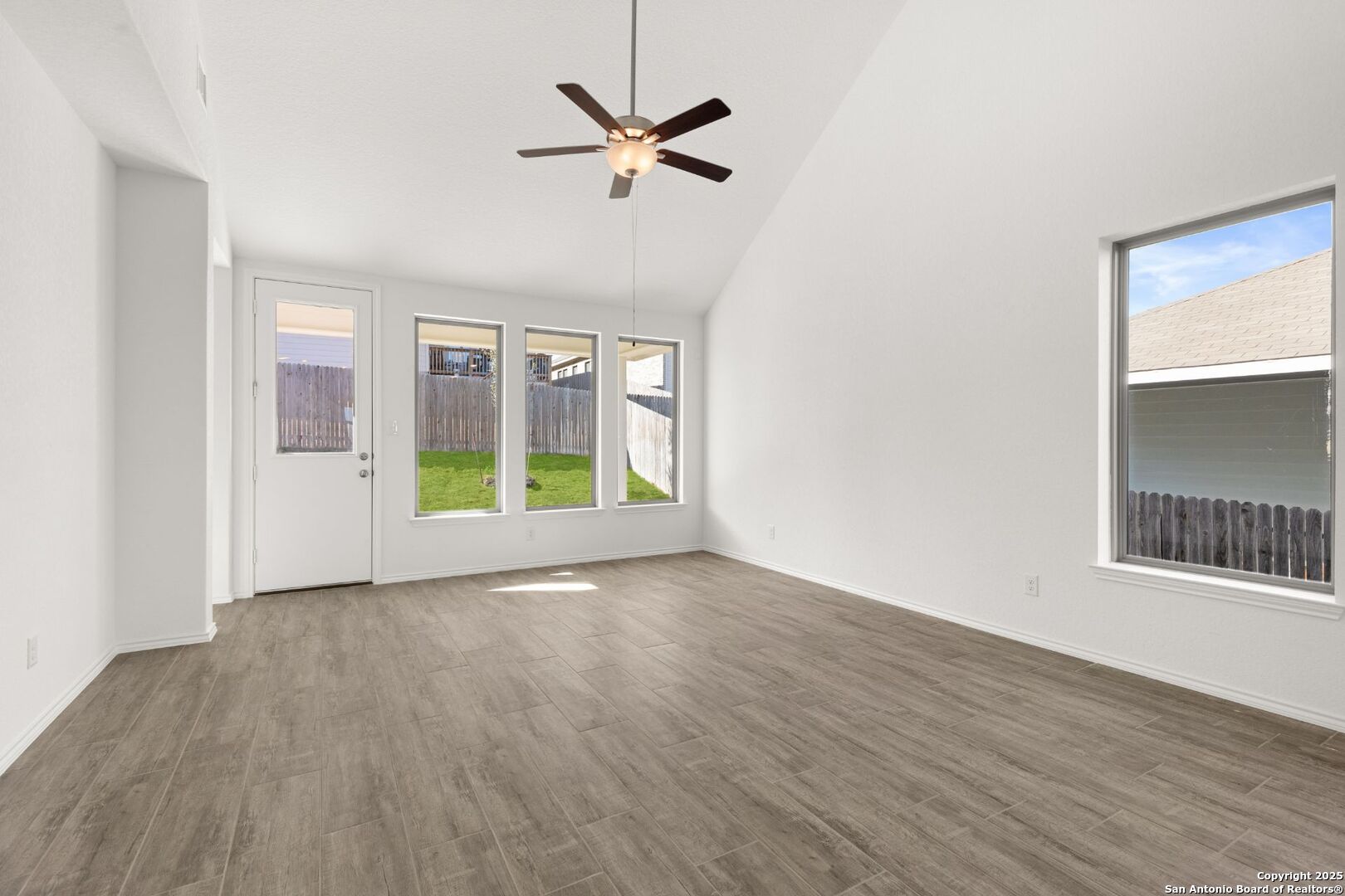 Welcome to this stunning two-story home, where a grand foyer greets you with soaring ceilings and exquisite wood tile flooring. The gourmet kitchen is a chef's dream, featuring upgraded cabinetry, sleek solid surface countertops, and a spacious island that enhances the open-concept design. The primary bedroom offers a serene retreat, complete with a private bath that includes a separate shower and soaking tub. An additional bedroom with a full bath on the main floor provides added convenience for guests. Upstairs, the expansive game room overlooks the great room, creating an ideal space for entertaining or relaxing with family and friends. Step outside to your backyard oasis, perfect for hosting BBQs or enjoying quality time with loved ones. Don't miss the opportunity to own this highly sought-after floor plan-schedule your tour today!