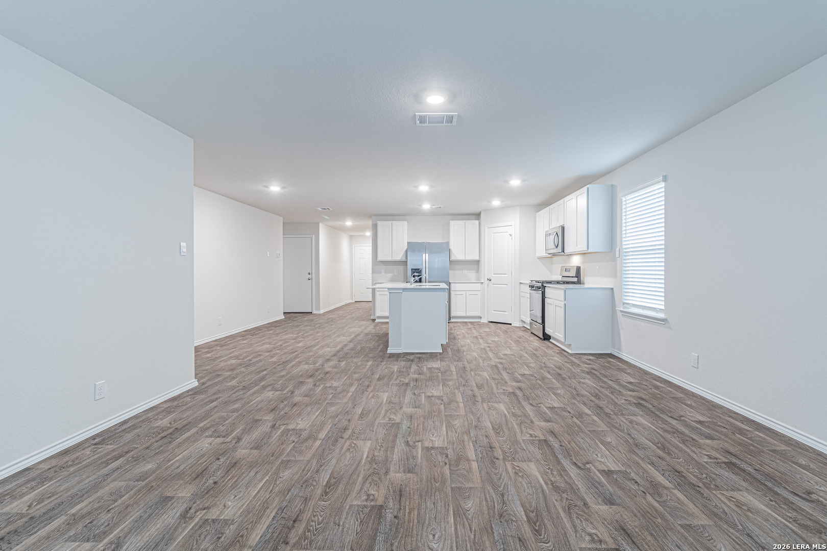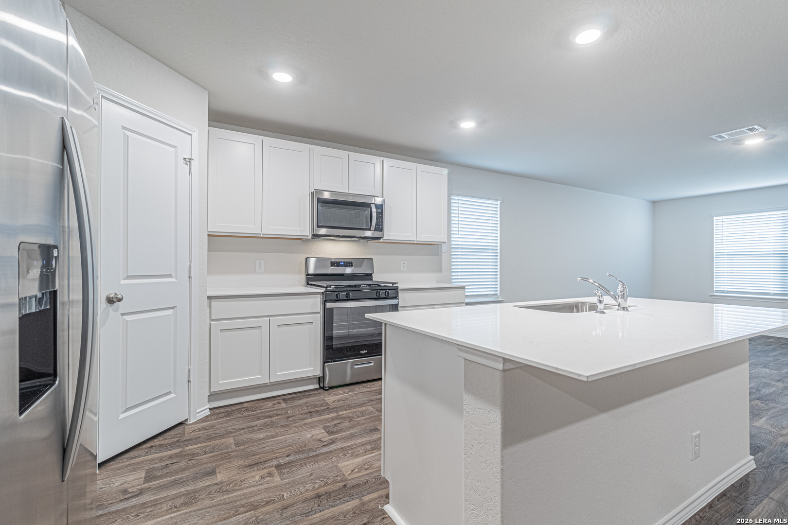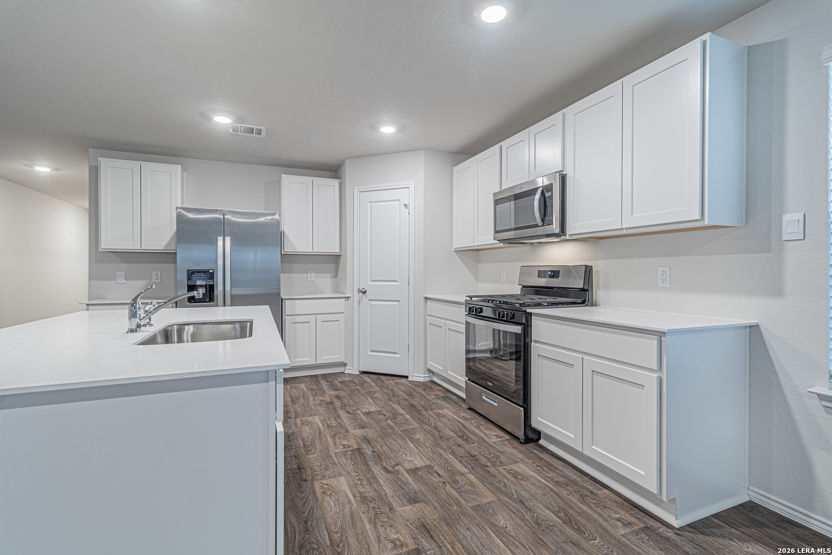 Be the first to live in this beautifully built, brand-new home, offering modern finishes and smart-home convenience throughout. The open-concept kitchen features quartz countertops, gleaming stainless-steel appliances, classic shaker-style cabinetry, and an eat-in bar overlooking the dining area, making it ideal for everyday living and entertaining. The primary bedroom suite is privately located off the living area toward the back of the home and includes a walk-in closet and a relaxing ensuite bathroom with a single vanity, a spacious quartz countertop, shaker-style cabinets, and a combined shower and bathtub. Secondary bedrooms are situated off the front foyer and feature quality carpeting and generous closet space, ideal for bedrooms, home offices, playrooms, or bonus rooms. Step outside through the back door off the living room to enjoy a fully landscaped backyard with a state-of-the-art irrigation system. Additional features include sheet vinyl flooring in the entry, living room, and all wet areas, quartz countertops in all bathrooms, and the Home Is Connected base package, which allows you to control the lights, thermostat, and door locks from your cellular device via a single central hub.