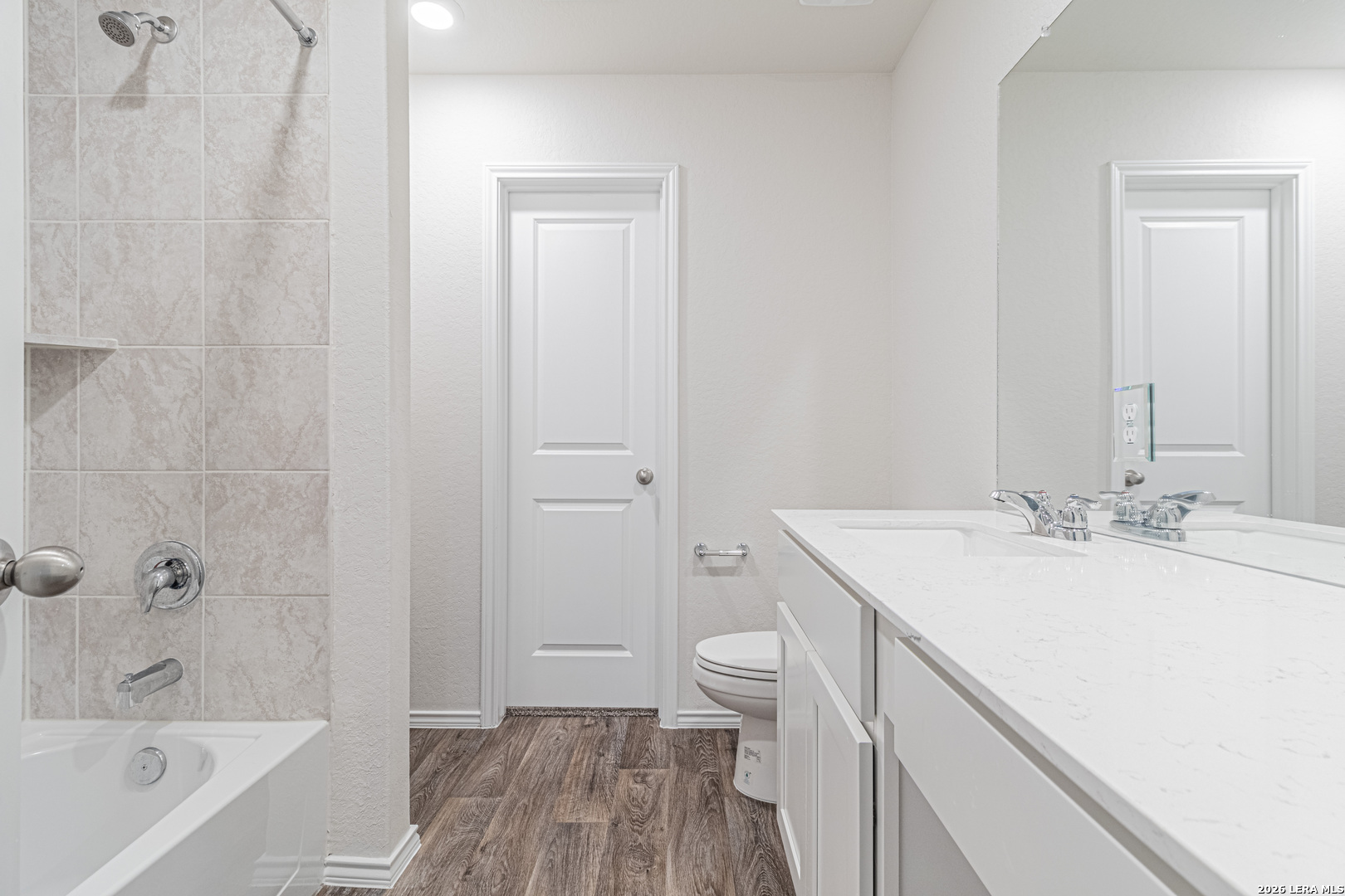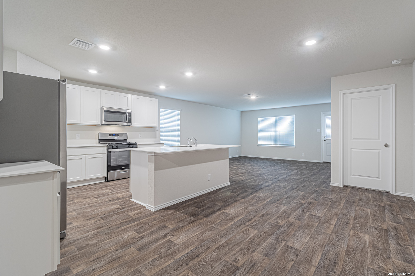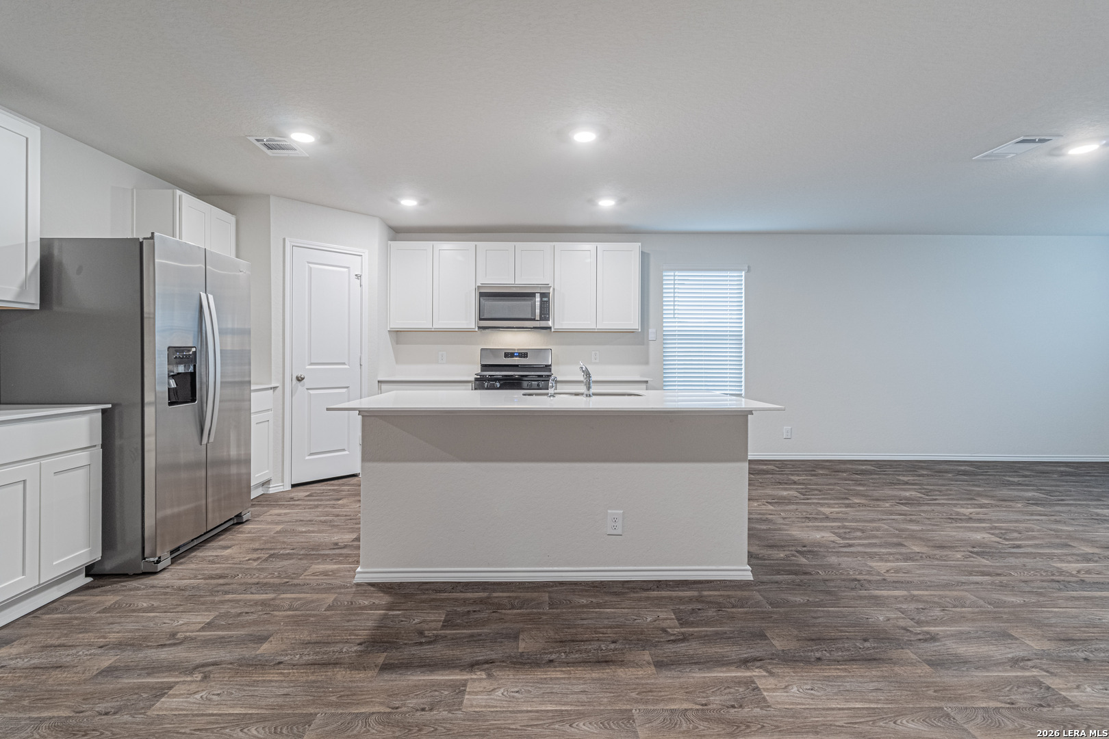 Be the first to live in this beautifully built, brand-new home, offering modern finishes and smart-home convenience throughout. The open-concept kitchen features quartz countertops, gleaming stainless-steel appliances, classic shaker-style cabinetry, and an eat-in bar overlooking the dining area, making it ideal for everyday living and entertaining. The primary bedroom suite is privately located off the living area toward the back of the home and includes a walk-in closet and a relaxing ensuite bathroom with a single vanity, a spacious quartz countertop, shaker-style cabinets, and a combined shower and bathtub. Secondary bedrooms are situated off the front foyer and feature quality carpeting and generous closet space, ideal for bedrooms, home offices, playrooms, or bonus rooms. Step outside through the back door off the living room to enjoy a fully landscaped backyard with a state-of-the-art irrigation system. Additional features include sheet vinyl flooring in the entry, living room, and all wet areas, quartz countertops in all bathrooms, and the Home Is Connected base package, which allows you to control the lights, thermostat, and door locks from your cellular device via a single central hub.