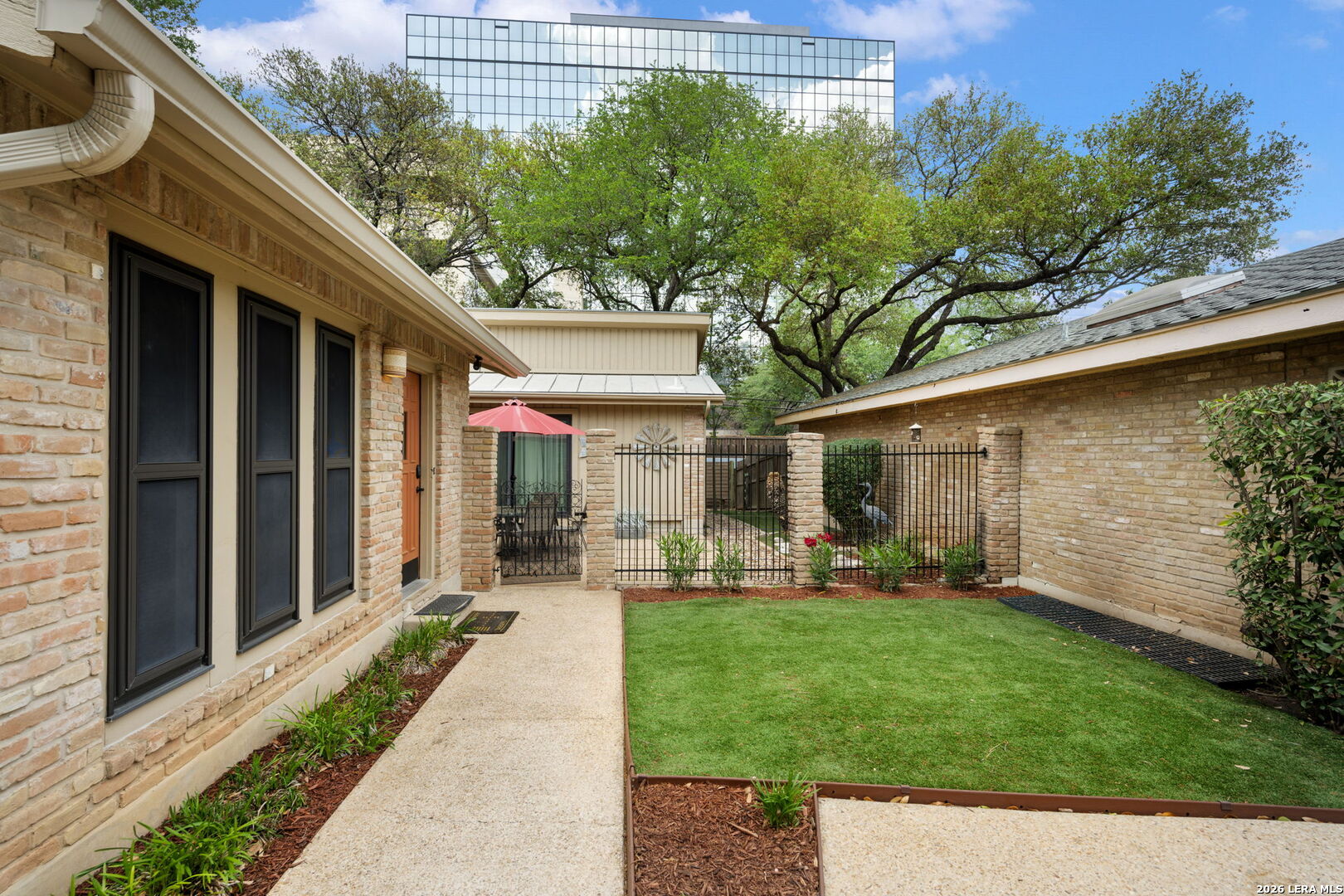 Great Alamo Heights location with "lock-and-leave" convenience this home was designed for easy, low-maintenance living without sacrificing style or function. The contemporary floor plan offers a seamless flow between living, dining, and kitchen spaces-ideal for both everyday living and entertaining. Clean lines and open-concept design give the home a modern, airy feel. Well maintained, the home features replacement noise abatement windows that enhance both comfort and energy efficiency. Step outside to enjoy courtyard living, mature trees and shade, turf landscaping that provides year-round greenery with minimal maintenance-perfect for those seeking a simplified lifestyle. Privacy cement fence, metal roof, recently updated HVAC system (2020). Spacious utility room with great storage, the garage features a well-appointed workbench, and modification for large SUV parking (20'10"). Alamo Heights ISD schools. Whether you're traveling frequently, downsizing, or simply looking for a home that lives easy, this property offers the perfect blend of convenience, quality, and modern design in the heart of San Antonio with quick access to freeways, shopping, hospitals and the airport.
