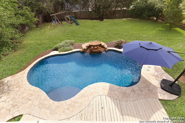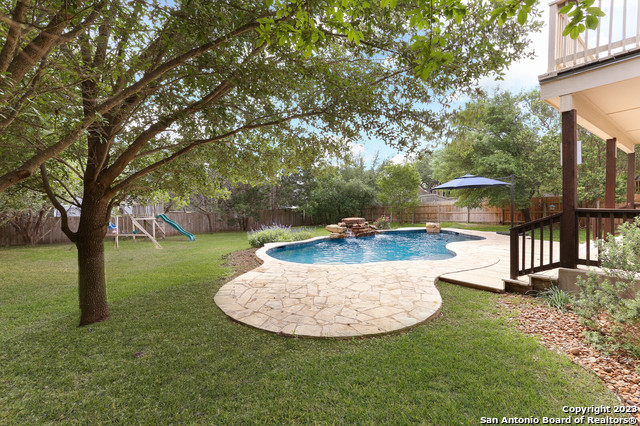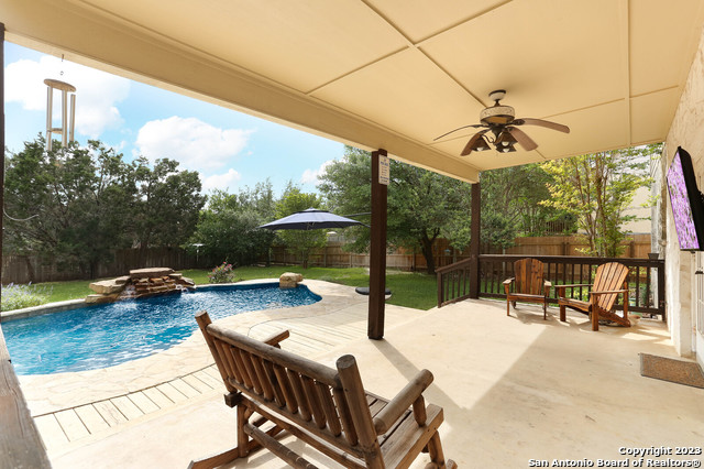 Welcome to your dream home in the highly desired Timberwood Park neighborhood of San Antonio! This beautiful two-story home sits on a spacious half-acre lot, offering plenty of room for outdoor activities and relaxation. The home features 3 bedrooms and 2.5 baths and an open floor plan that is great for hosting gatherings with friends and family, while the granite countertops in the kitchen provide a sleek and modern touch. The living room is anchored by a beautiful fireplace, perfect for cozying up during the cooler months. Step outside and indulge in the ultimate outdoor oasis, complete with a large patio and Keith Zars pool. Whether you're hosting a BBQ with friends or basking in the sun with a good book, this outdoor haven is perfect for any occasion. One of the highlights of this property is the breathtaking second-story deck off the master bedroom. The panoramic views are simply stunning, providing an idyllic setting for sipping your morning coffee or enjoying a glass of wine as the sun sets on the horizon. And when you're ready to unwind after a long day, slip into your luxurious whirlpool tub in the primary bathroom suite, where you can enjoy the views while soaking in ultimate relaxation. Located in the Comal Independent School District, this home is ideal for those who want access to great schools. Don't miss your chance to own this stunning home in one of San Antonio's most sought-after neighborhoods!
