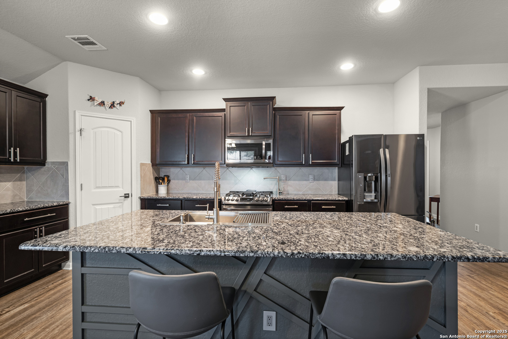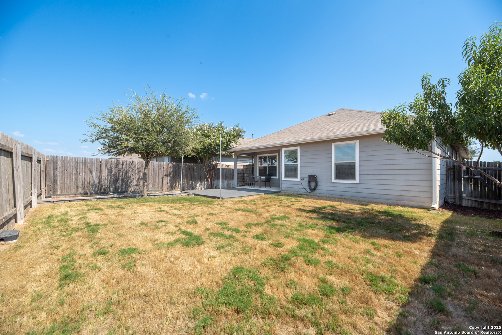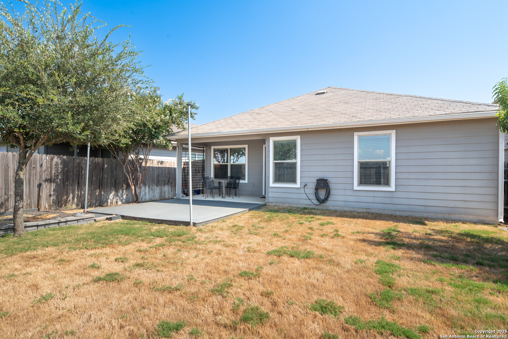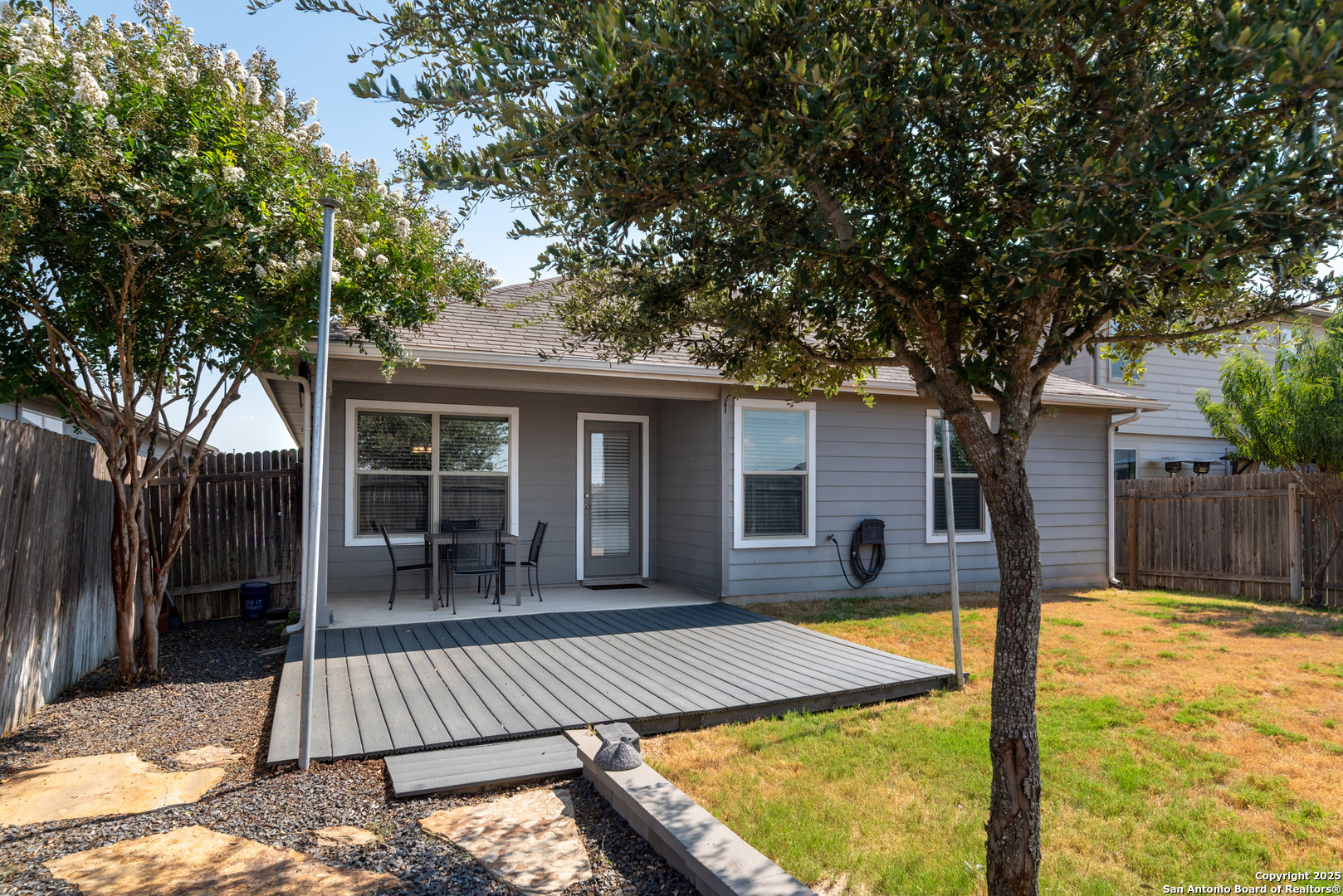 Welcome to a very well cared for and gently lived in home, that was recently refreshed with new carpet and a freshly repainted interior, on 08/23/25. This beautiful single story 4/2/2, with 1,692 sq. ft, offers an open floor concept with numerous upgrades. The kitchen features granite counter tops, a gas cook top with a very convenient pot-filler, next to the cook top, a spacious granite top island that overlooks the dining area and living area, as well as a seating area on the granite top island. This beautiful home has many upgrades such as upgraded appliances, to include a steam dishwasher, range with gas cook top with a center griddle, dual beverage refrigerators in the serving niche, located in the kitchen area, In addition, the entire house is smart wired and has surround sound wired into the ceiling in the living room for amazing sound that enhances your entertainment experience. The ceiling fans have been upgraded in the bedrooms and living room. Two of the bedrooms have walk in closets and the two bathrooms have tile surround in the shower and bathtubs, as well as built in night lights. The healthy landscape and trees offer a beautiful ambiance for you to enjoy your home, while sitting out on the covered back porch or deck. This home offers many more features than any home on the market today, in this area, for an unbelievable price point. Do not miss out on this home that is conveniently located near schools and just a short five-minute commute to IH 35 or fifteen minutes from IH 10.