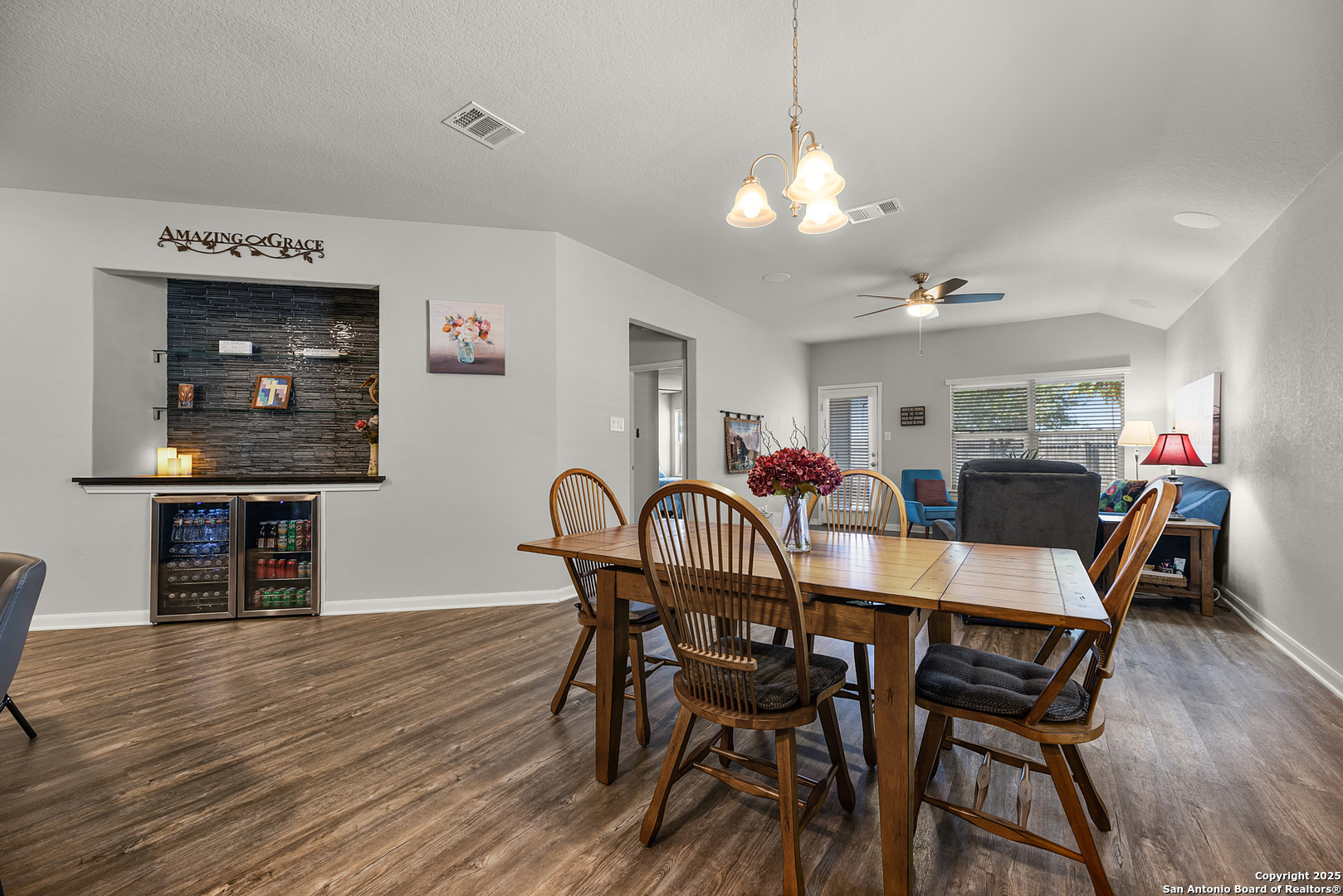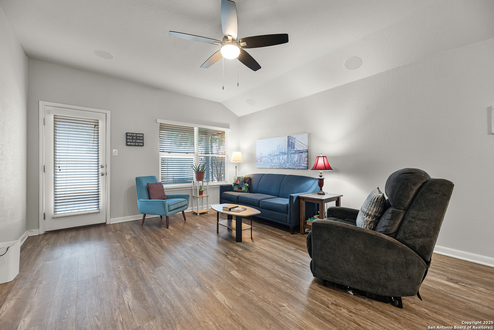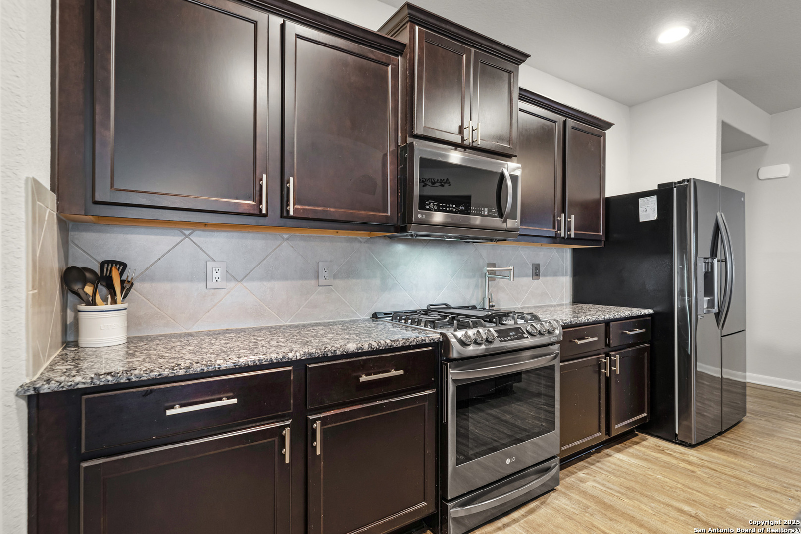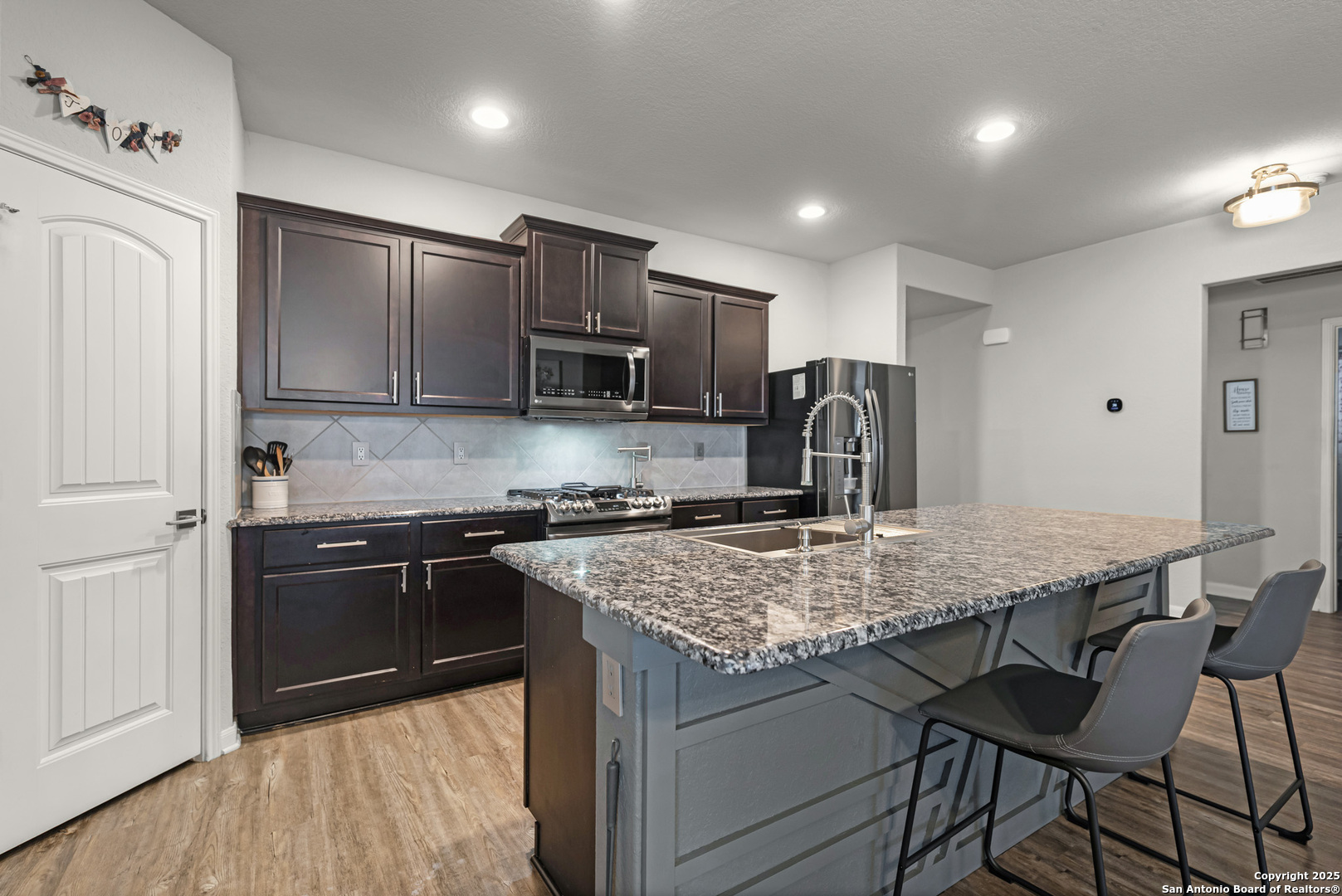 Welcome to a very well cared for and gently lived in home, that was recently refreshed with new carpet and a freshly repainted interior, on 08/23/25. This beautiful single story 4/2/2, with 1,692 sq. ft, offers an open floor concept with numerous upgrades. The kitchen features granite counter tops, a gas cook top with a very convenient pot-filler, next to the cook top, a spacious granite top island that overlooks the dining area and living area, as well as a seating area on the granite top island. This beautiful home has many upgrades such as upgraded appliances, to include a steam dishwasher, range with gas cook top with a center griddle, dual beverage refrigerators in the serving niche, located in the kitchen area, In addition, the entire house is smart wired and has surround sound wired into the ceiling in the living room for amazing sound that enhances your entertainment experience. The ceiling fans have been upgraded in the bedrooms and living room. Two of the bedrooms have walk in closets and the two bathrooms have tile surround in the shower and bathtubs, as well as built in night lights. The healthy landscape and trees offer a beautiful ambiance for you to enjoy your home, while sitting out on the covered back porch or deck. This home offers many more features than any home on the market today, in this area, for an unbelievable price point. Do not miss out on this home that is conveniently located near schools and just a short five-minute commute to IH 35 or fifteen minutes from IH 10.