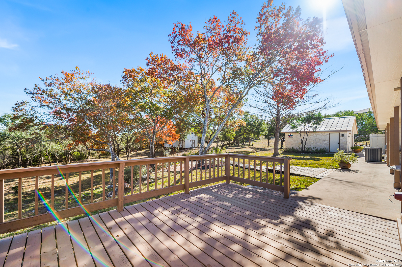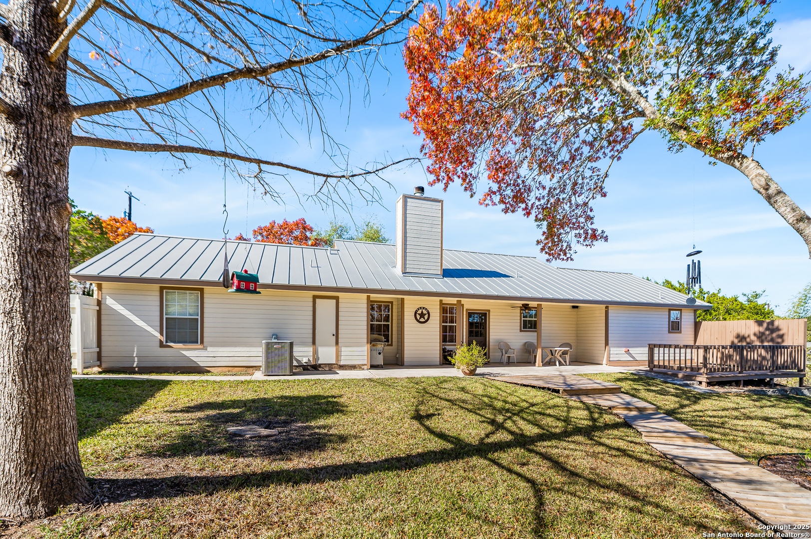 ENJOY THE QUIET PEACEFUL COUNTRY LIVING BUT CLOSE TO THE CITY. OVER ONE ACRE PARADISE JUST WAITING FOR YOU TO ENJOY. BEAUTIFUL ONE STORY HOME WITH LOTS OF OTHER BUILDINGS TO USE AS YOU SEE FIT.YOU CAN EASILY ADD A CIRCULAR DRIVE WAY IN THE FRONT OF THE HOME!THE MAIN HOME IS ONE STORY FEATURING A LARGE LIVING AREA WITH TILE FLOOR AND BEAUTIFUL STONE WOOD BURNING FIREPLACE. THE CHEF'S KITCHEN FEATURES A LARGE ISLAND AS THE CENTER OF YOUR COOKING EXPERIENCE, COOKTOP AND OVEN AND LOTS AND LOTS OF CABINET SPACE ADJOINING THE LIVING AREA. THE LARGE BREAKFAST/DINING AREA OVERLOOKS THE PARKLIKE BACKYARD AND WILL MAKE ANY DINING EXPERIENCE THE ULTIMATE IN RELAXATION. THE BIG MASTER FEATURES A LARGE BATHROOM WITH DOUBLE VANITY, MULTIPLE CLOSETS, AND TUB/SHOWER COMBO. THE TWO OTHER BEDROOMS ARE GOOD SIZE WITH AMPLE CLOSET SPACE. OUTSIDE IS A PARADISE MADE FOR OUTDOOR LIVING STARTING WITH THE HUGE RAISED DECK (WIRED FOR A HOTTUB) OVERLOOKING YOUR VERY OWN PARK. THE IS A CONVERTED DETACHED GARAGE CURRENTLY USED AS A CAVE FOR HE/SHE OR TEEN HANG OUT, MUSIC OR ART STUDIO OR ADD A BATHROOM FOR GUEST OR IN-LAW QUARTERS. IN BACK OF THE PROPERTY YOU WILL FIND A HUGE TWO STORY WORKSHOP WITH THE TOP UNFINISHED AND COULD BE AN APARTMENT(16x32x2) which is 1024 sq ft. LOTS OF TREES AND LANDSCAPING, A 3/4 YARD SPRINKLER SYSTEM AND YOU'RE ALL SET TO GO.ADDITIONALLY HVAC SYSTEM HAS BEEN REPLACED IN THE LAST YEAR AND ALSO THE EXTERIOR WAS PAINTED AT THE SAME TIME. LOCATED ONLY 10 MINUTES TO SIX FLAGS, 25 MINUTES TO DOWNTOWN SAN ANTONIO, 20 MINUTES TO BOERNE AND MUCH MORE. ALL THIS GEM IS MISSING IS YOU SO HURRY NOW TO GET THE BEAUTIFUL ONE OF A KIND PARADISE.