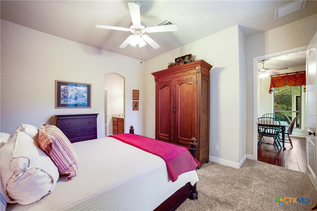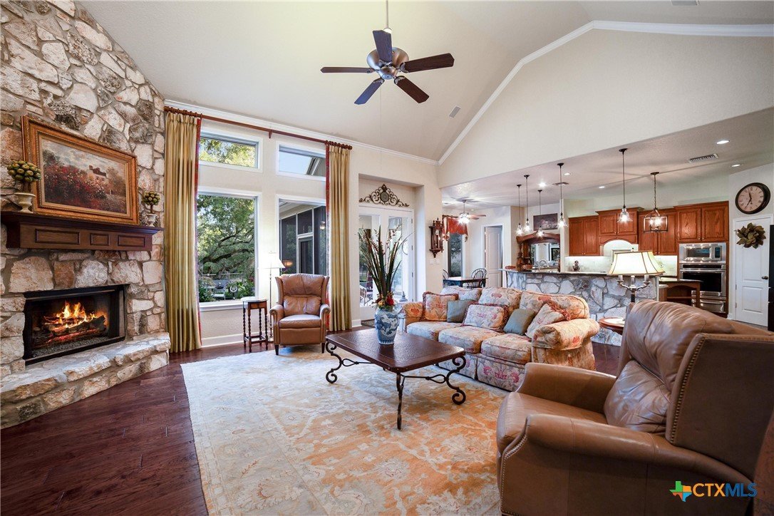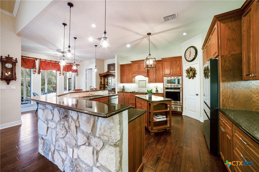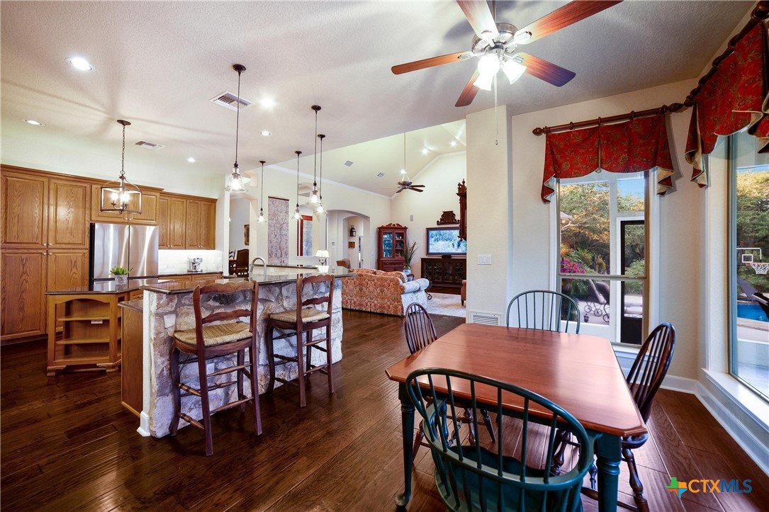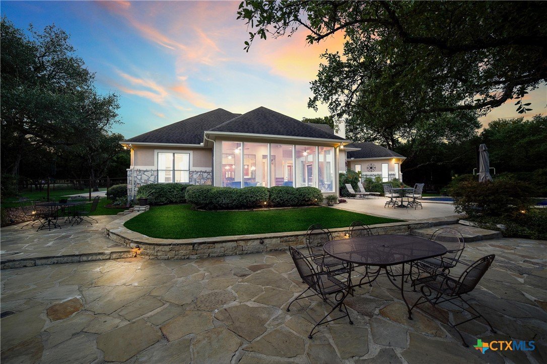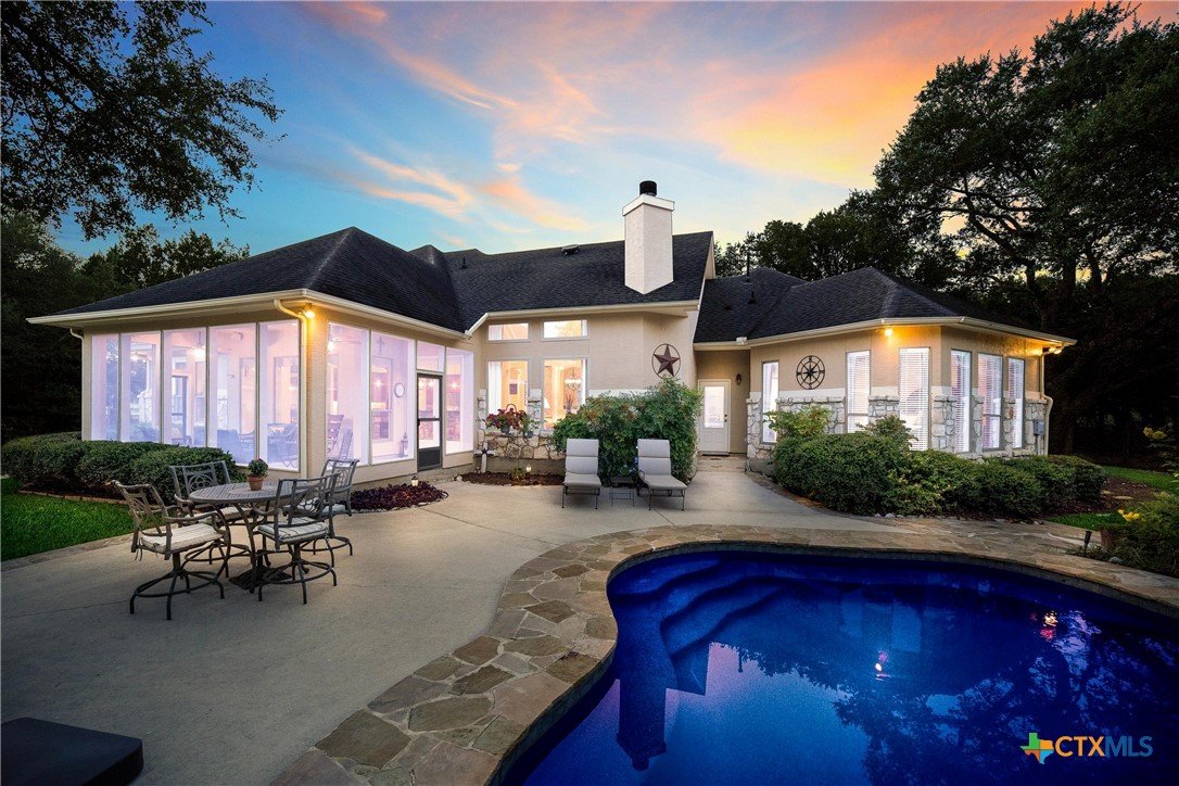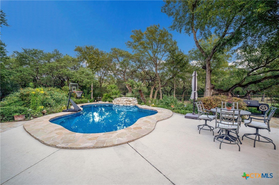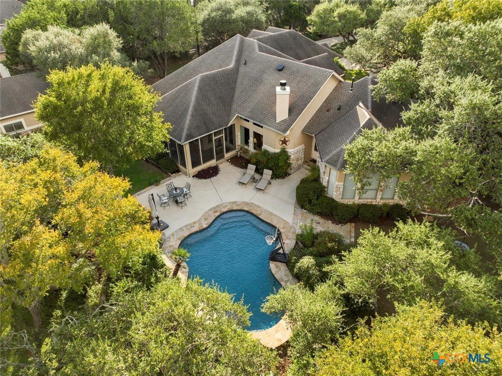 We got you covered with a new roof installed! Now, let’s talk about your nearly 5-acre slice of paradise! Picture this: mornings on your screened-in porch as you gaze at your resort-style pool. Ready for some sun? Dive right in! When the sun dips, it's s’mores and stargazing time by the stone firepit on your flagstone patio—perfectly shaded by majestic trees. And don’t forget the pickleball court out front! Your place will be the go-to hangout for poolside parties, game nights, and dinners under the stars. Hosting has never been this effortless. Inside, the excitement continues. The kitchen is a chef’s paradise, featuring custom oak cabinets, granite countertops, and a breakfast nook bathed in sunlight. Whipping up game-day snacks or prepping for a feast? The space flows smoothly into the living room, where vaulted ceilings and oversized windows show off your poolside views. Cozy up by the gas fireplace and relax—it’s the perfect end to a Texas day. The owner’s suite, where you can sneak outside for a midnight swim or unwind in the spa-like en suite with a soaking tub, dual marble vanities, and an epic walk-in closet. Upstairs, the fun never stops—a flex space is ready for game nights, movie marathons, or even extra guests! With a matching workshop, seasonal creek, and plenty of room to explore, this is a nature lover’s dream. Imagine the kids making lifelong memories in their own backyard playground! Ready to make every day feel like a vacation?