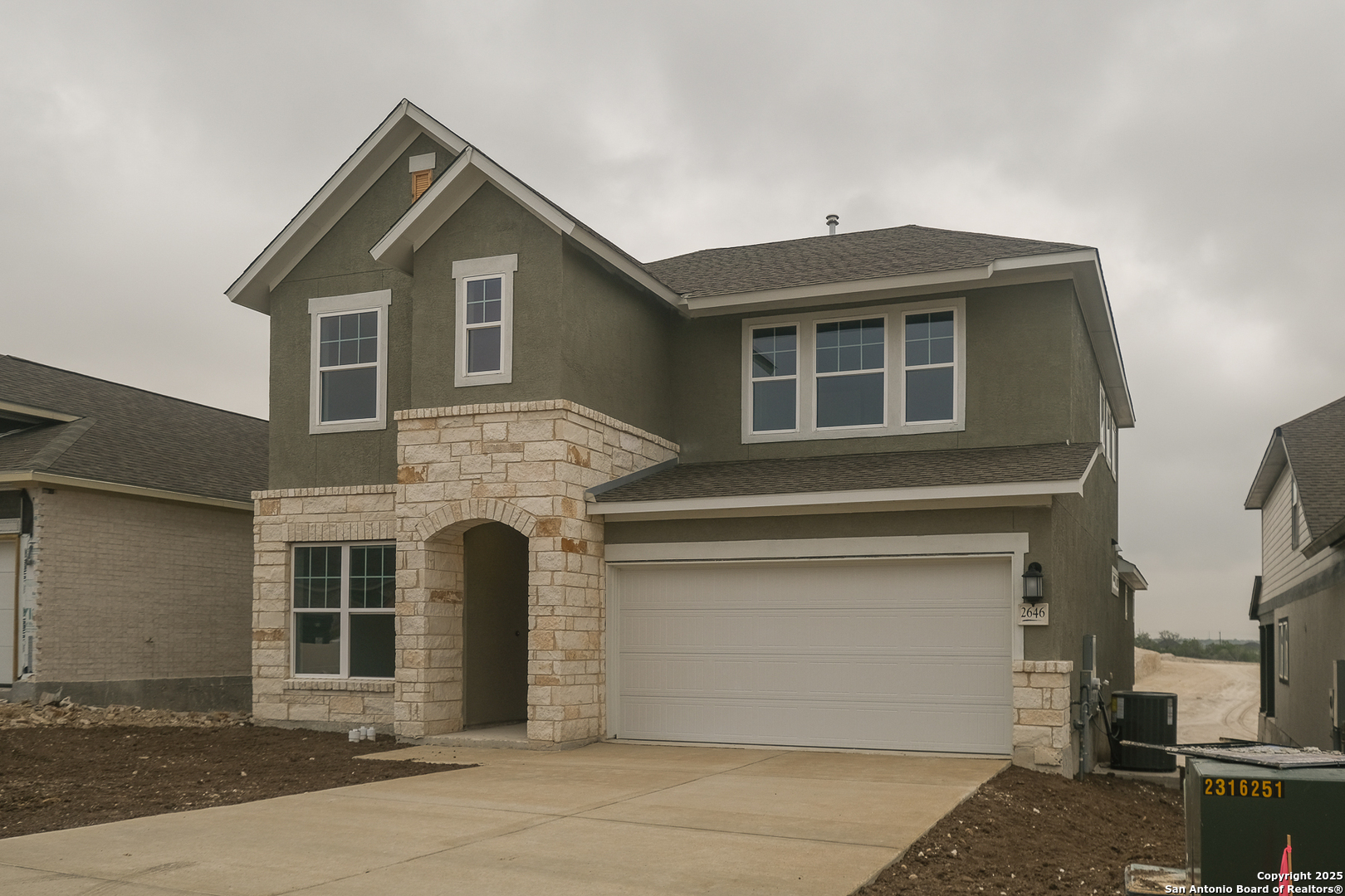 Build your family's future with the Crockett floor plan by David Weekley Homes in Ladera. The modern kitchen island overlooks spacious living and dining areas. Enjoy a study, upstairs retreat, and private secondary bedrooms. The Owner's Retreat features an en suite and walk-in closet. Relax on the covered porch for leisure time. Added convenience of no back neighbors as this home has a retaining wall and mature trees behind.