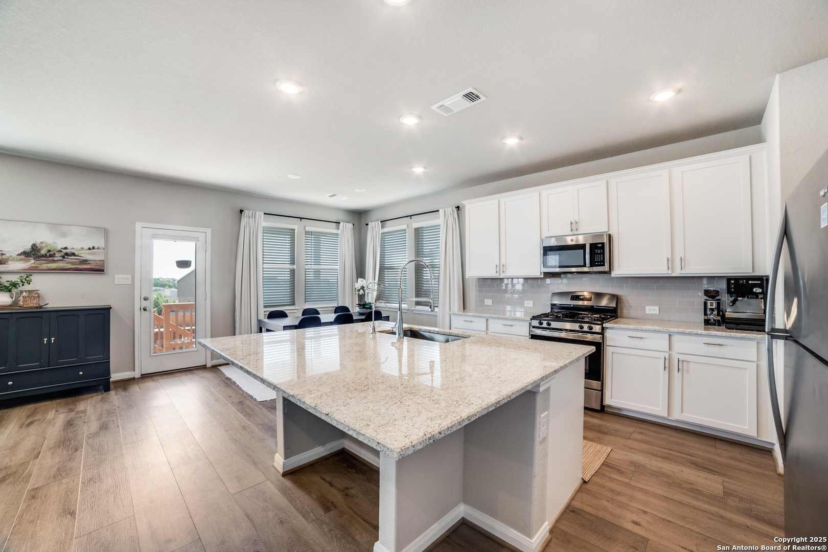 Beautiful, Wonderfully-Maintained 4-Bedroom, 2.5-Bathroom Newer Construction Home in Popular Ladera Subdivision by Liberty Home Builders. Convenient Location Near Hwy-211 & Hwy-90, Walking Distance to Ladera Elementary, Minutes to JBSA Lackland Air Force Base, Local Entertainment & Restaurants. Fantastic Community Amenities to Enjoy Including Sparkling Pool, Pickleball & Sports Court, Park/Playground, & Jogging Trails. Handsome Curb Appeal with Low-Maintenance Landscaping. Lot is located at the end of Cul de Sac Street which provides a Longer Driveway and Larger Backyard, Great Sense of Privacy, No Thru-Traffic. Enter to Foyer with Soaring Ceilings & High-End Luxury Wood-Vinyl Plank Flooring, Neutral Paint Colors, & Great Natural Light. First Level Features Open Floorplan from Living to Kitchen/Dining Areas, Half-Bathroom for Guests & Entertaining. Gourmet Island Kitchen with Granite Countertops, Gas Cooking, Stainless Steel Appliances, & Ample Cabinet Space. Second Level Features Small Landing Area, Perfect for Home Office Space, Laundry Closet in Hallway with Washer/Dryer Connections. Spacious Primary Bedroom Suite with Beautiful Bathroom Featuring Dual Vanities & Huge Walk-In Shower. 3 Nicely-Sized Secondary Bedrooms & Full Bathroom with Dual Vanities & Tub/Shower. 2-Car Attached Garage with Opener, Water Softener, & EV Charging Plug (Resident Supplies Cord/Station). Awesome Backyard with Covered Patio/Deck, Privacy Fence, Irrigation System, & No Neighbors Behind. Pets Case-by-Case. Medina Valley ISD.