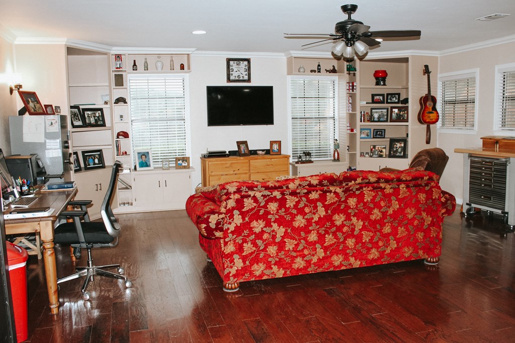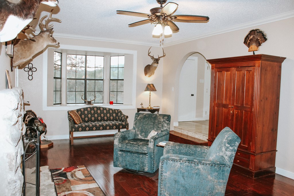 This beautiful 4400+/- sqft home offers beautiful Hill Country views from atop the 2.2 acres where it sits. This home features 2 fire places along with 3 very spacious sitting/living rooms on the first floor. The second floor is equipped with 3 bedrooms with an office space right off of the master that has a wide range of opportunities. It could easily be another bedroom or it would be perfect if you have little ones. The current owner has taken care of and has turned this house into a truly beautiful home. There is a long list of upgrades that have been added to this house. New spray foam insulation with batts in the attic, an entirely new electrical panel, new wall outlets and switches throughout the house, new ceiling fans, fresh paint throughout the entire house, 3 brand new doors installed, new upstairs air handler and heat pump, all new flooring on the stairs and second floor, new mini split in the large living area, fresh landscaping out front, security system, a few new windows, and an 11'3”x19'4” out building with power. The roof is brand new as well as the gutters. This house is also on the Aqua Vista aquifer, which means there is no well or pump to worry about.