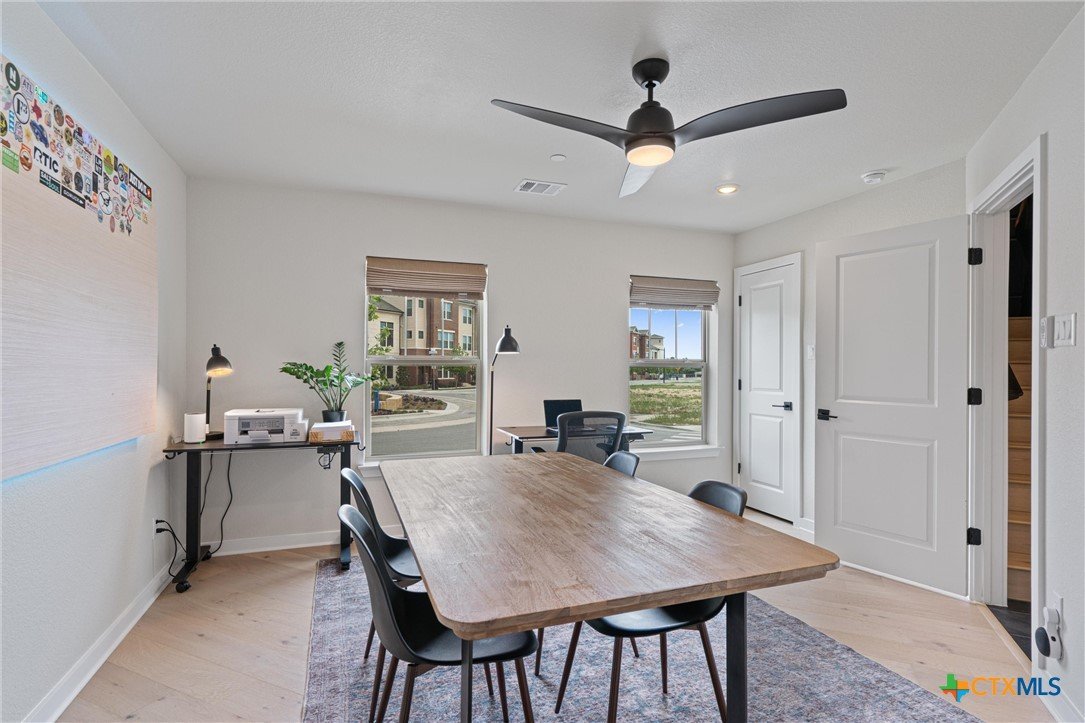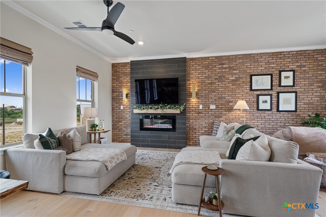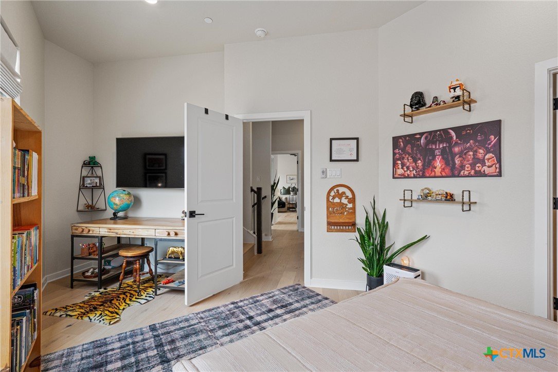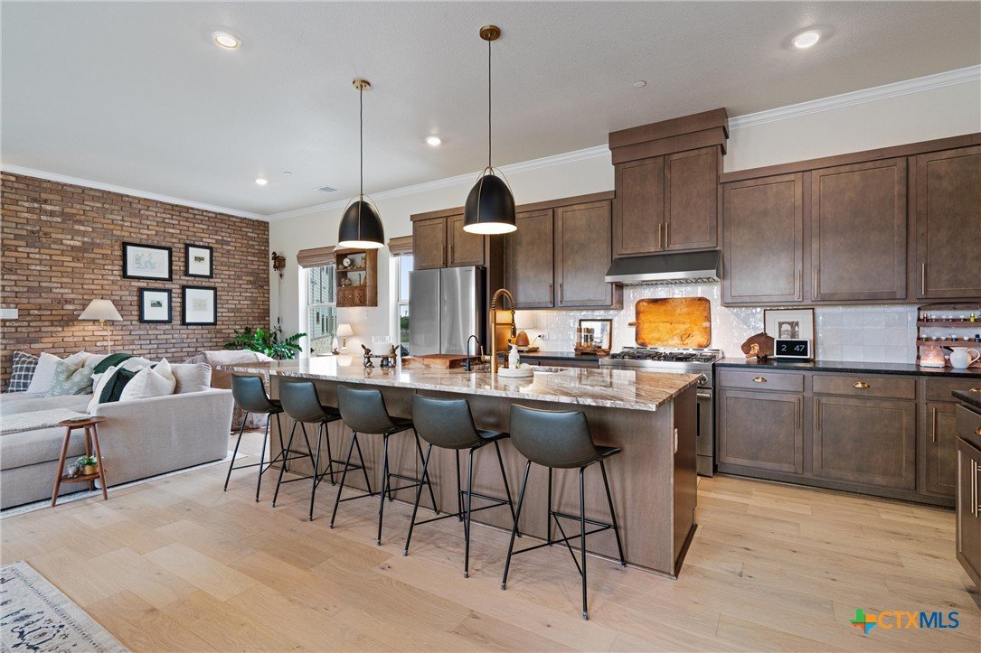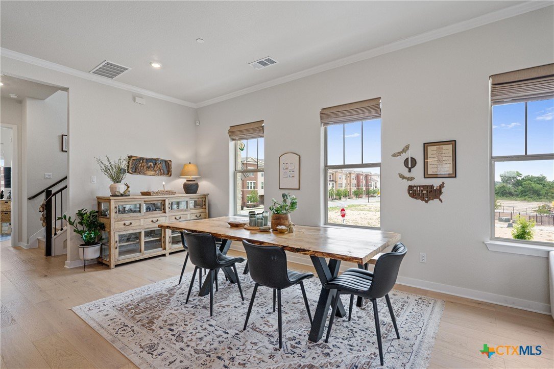 Charming and luxurious, this stunning 4-bedroom, 5-bathroom Brownstone-style townhome is located in the heart of Leander’s vibrant Northline community. Designed with timeless elegance, the home features a private elevator, beautiful hardwood floors throughout, a gourmet kitchen, and a spa-like primary suite with dual closets. Enjoy the rooftop terrace, complete with a gas connection and Wi-Fi-enabled motorized louvered pergola—perfect for outdoor entertaining. The home is upgraded throughout with custom finishes, spacious ensuite bedrooms, and an epoxy-finished 3-car garage. Ideally located near retail, dining, and the CapMetro Rail Station, this "lock and leave" townhome blends the classic charm of New York and Chicago brownstones with warm Texas hospitality.