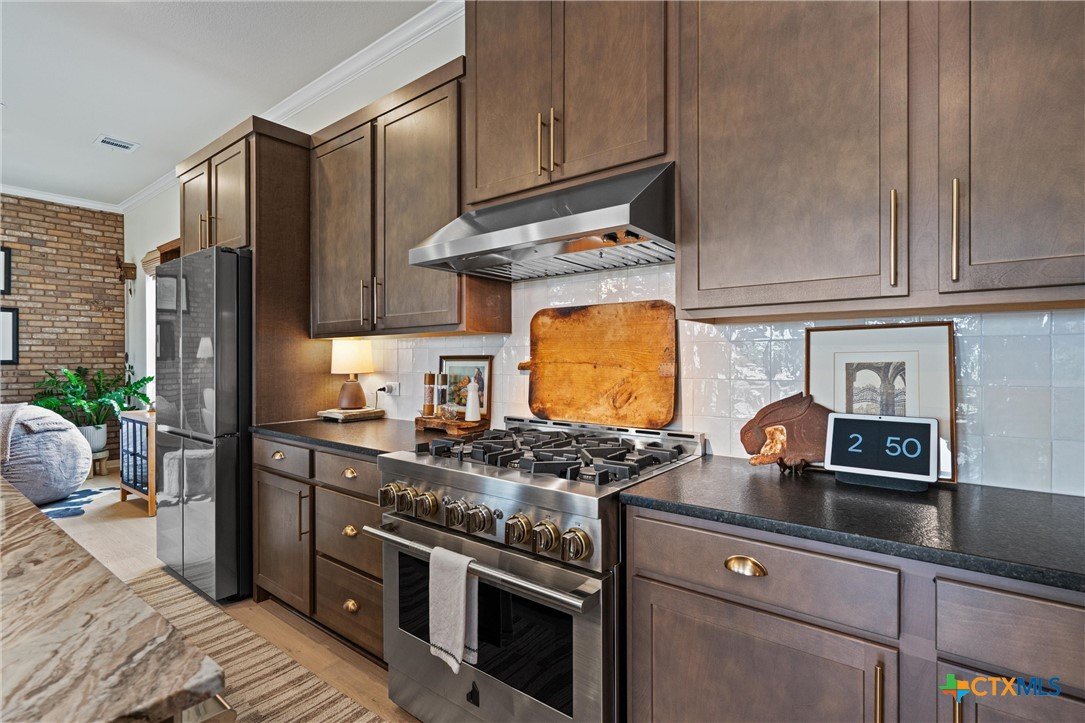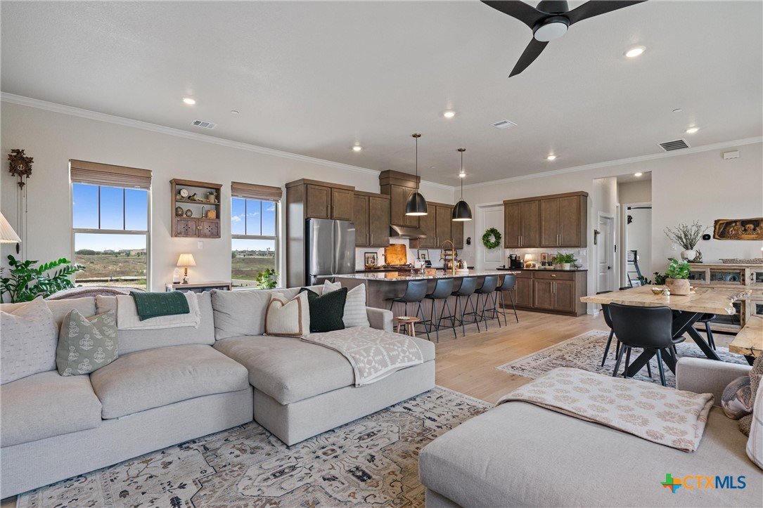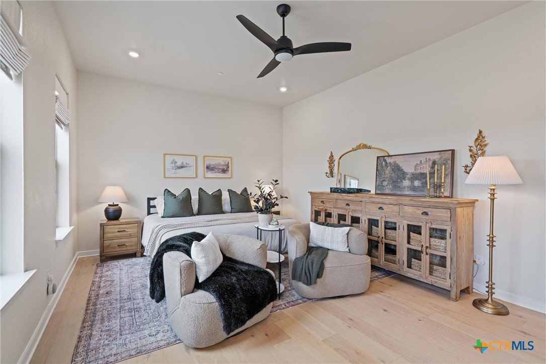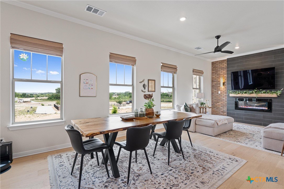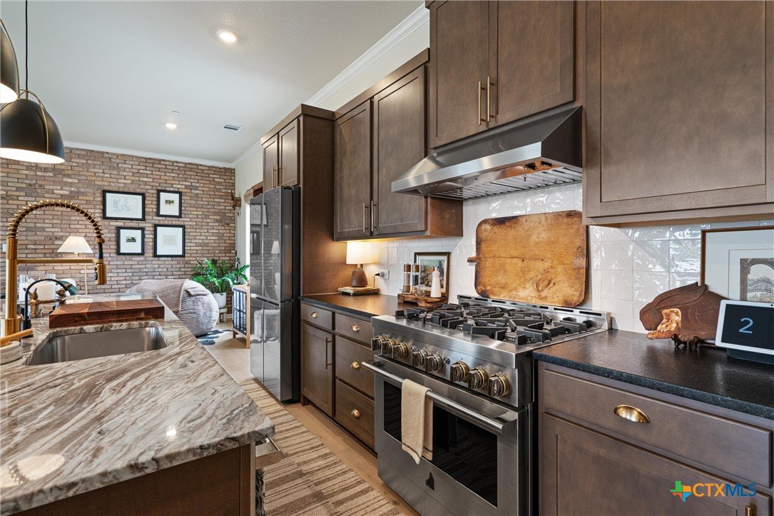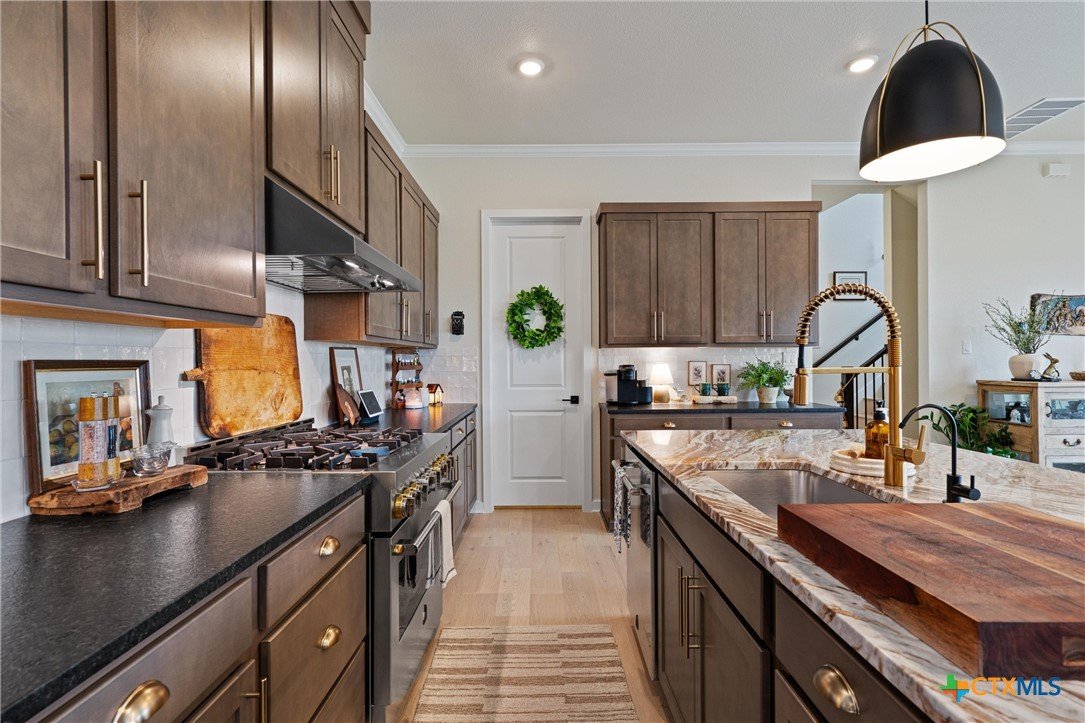 Charming and luxurious, this stunning 4-bedroom, 5-bathroom Brownstone-style townhome is located in the heart of Leander’s vibrant Northline community. Designed with timeless elegance, the home features a private elevator, beautiful hardwood floors throughout, a gourmet kitchen, and a spa-like primary suite with dual closets. Enjoy the rooftop terrace, complete with a gas connection and Wi-Fi-enabled motorized louvered pergola—perfect for outdoor entertaining. The home is upgraded throughout with custom finishes, spacious ensuite bedrooms, and an epoxy-finished 3-car garage. Ideally located near retail, dining, and the CapMetro Rail Station, this "lock and leave" townhome blends the classic charm of New York and Chicago brownstones with warm Texas hospitality.